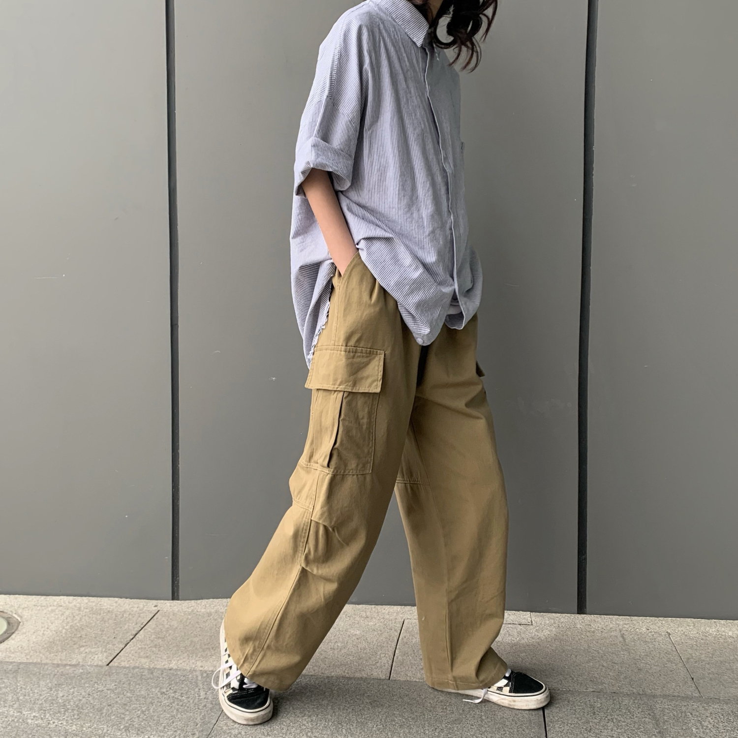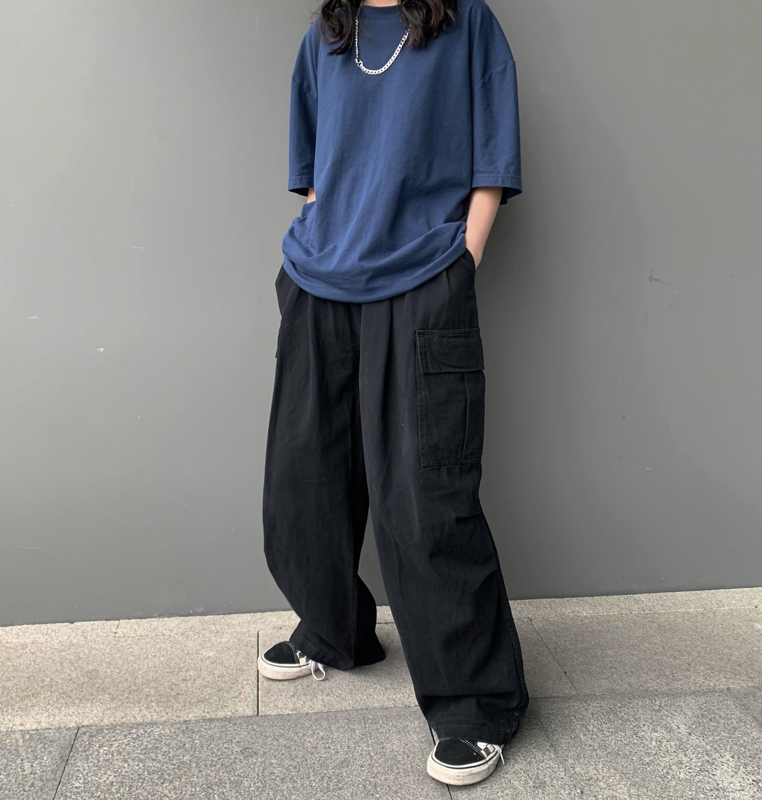 Amazing Happie Streetwear Baggy Wide Leg Pockets Cargo Trousers Y2K 2000s Coolest Style So Bling