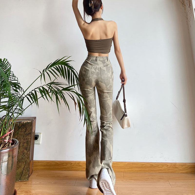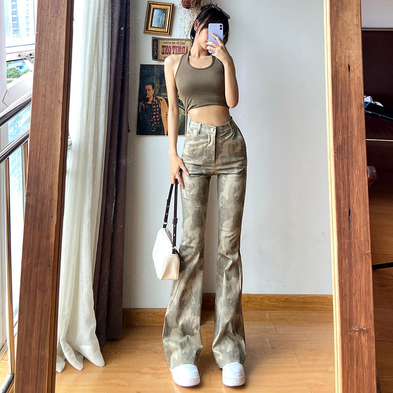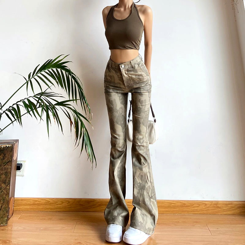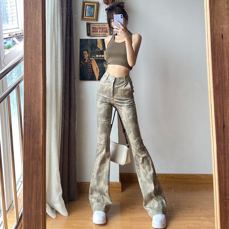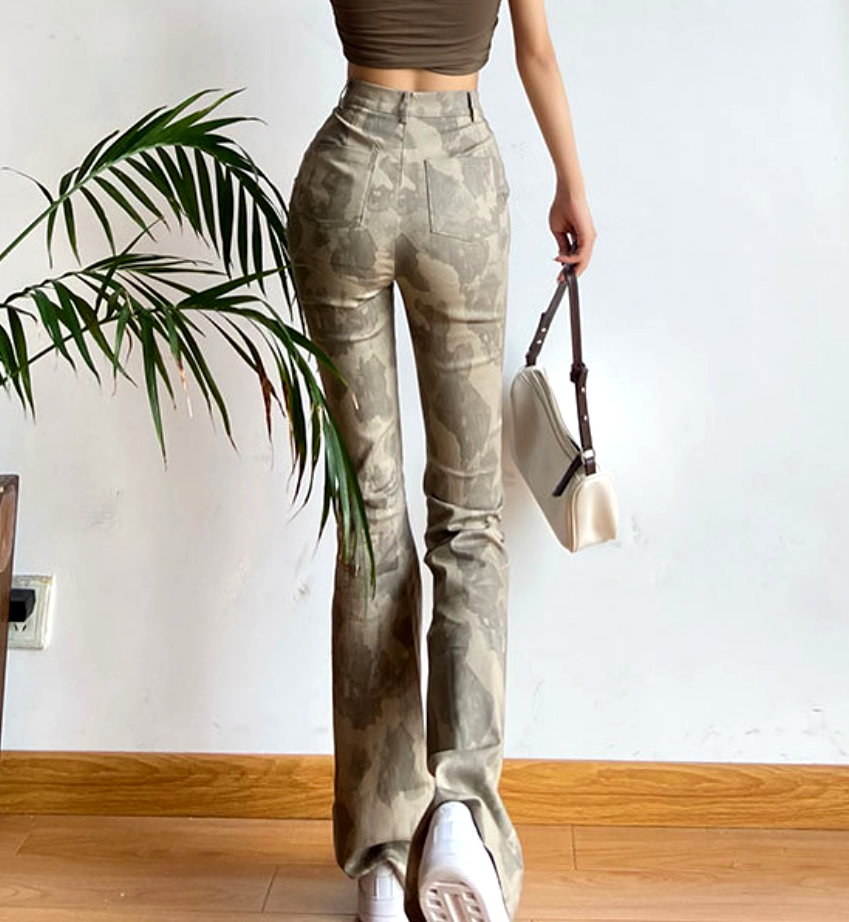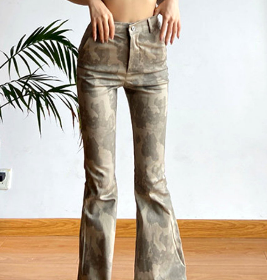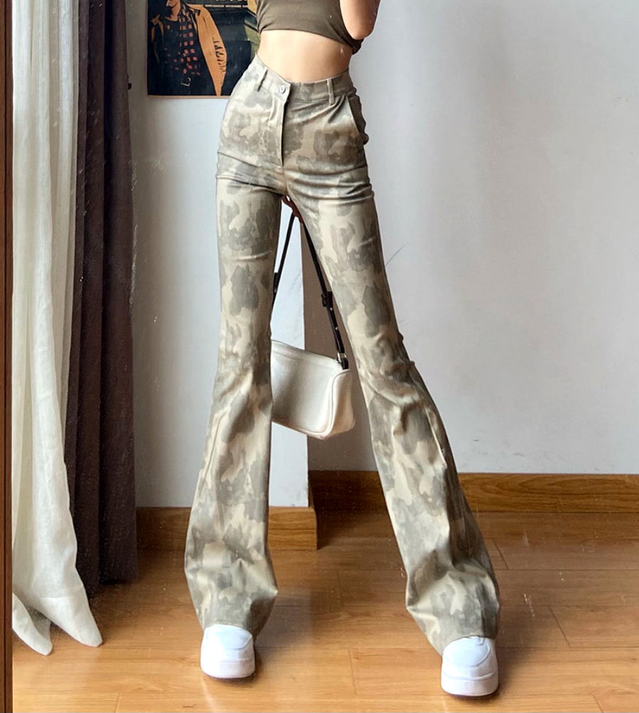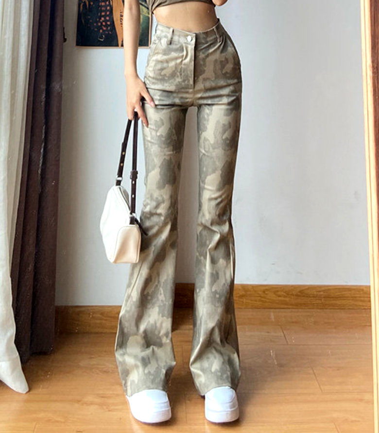 Vintage Punk Camouflage Pattern Flattering Flare Trousers Y2K 90s Streetwear Party Nightclub Dance Amazing