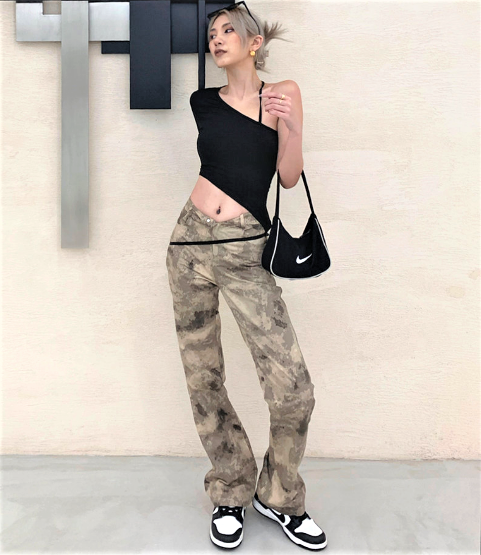 Vintage Punk Camouflage Flattering Flare Trousers Ootdwomen Amazing
