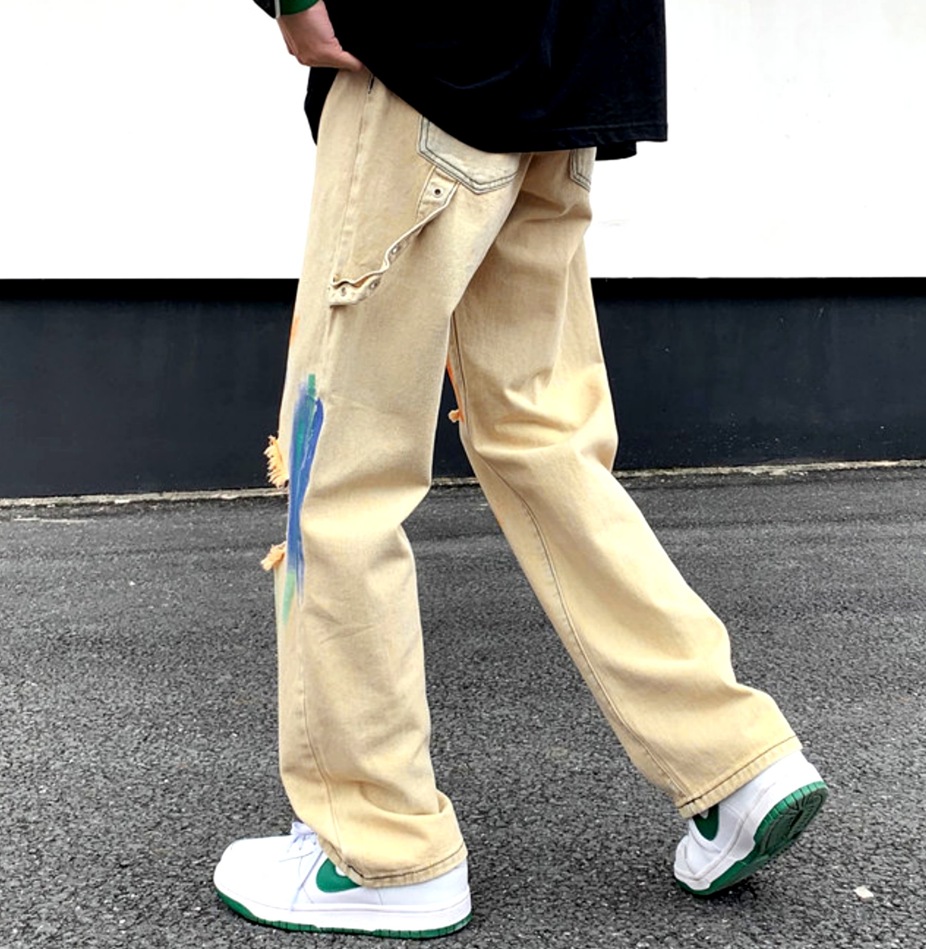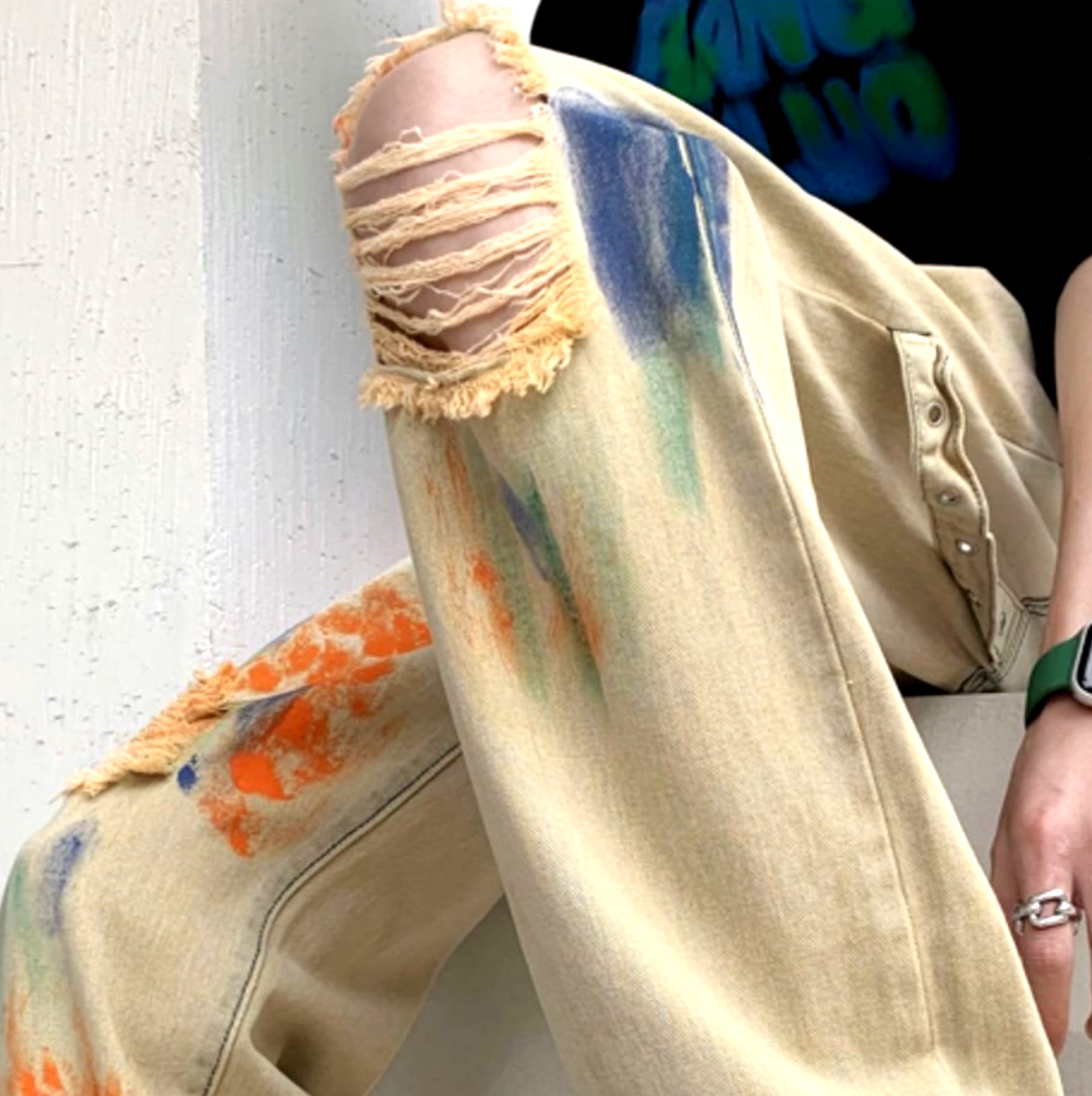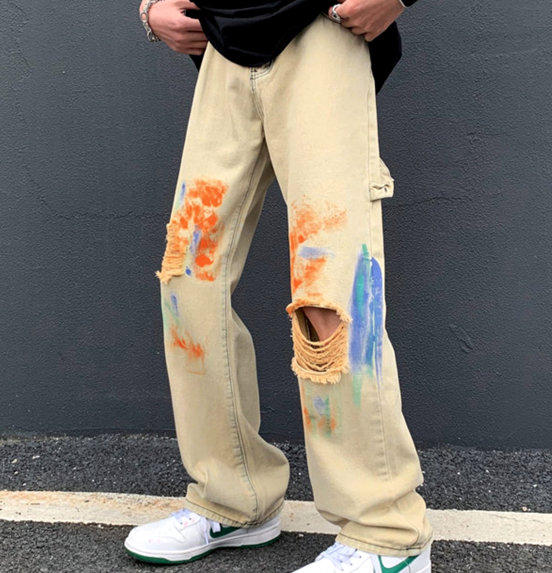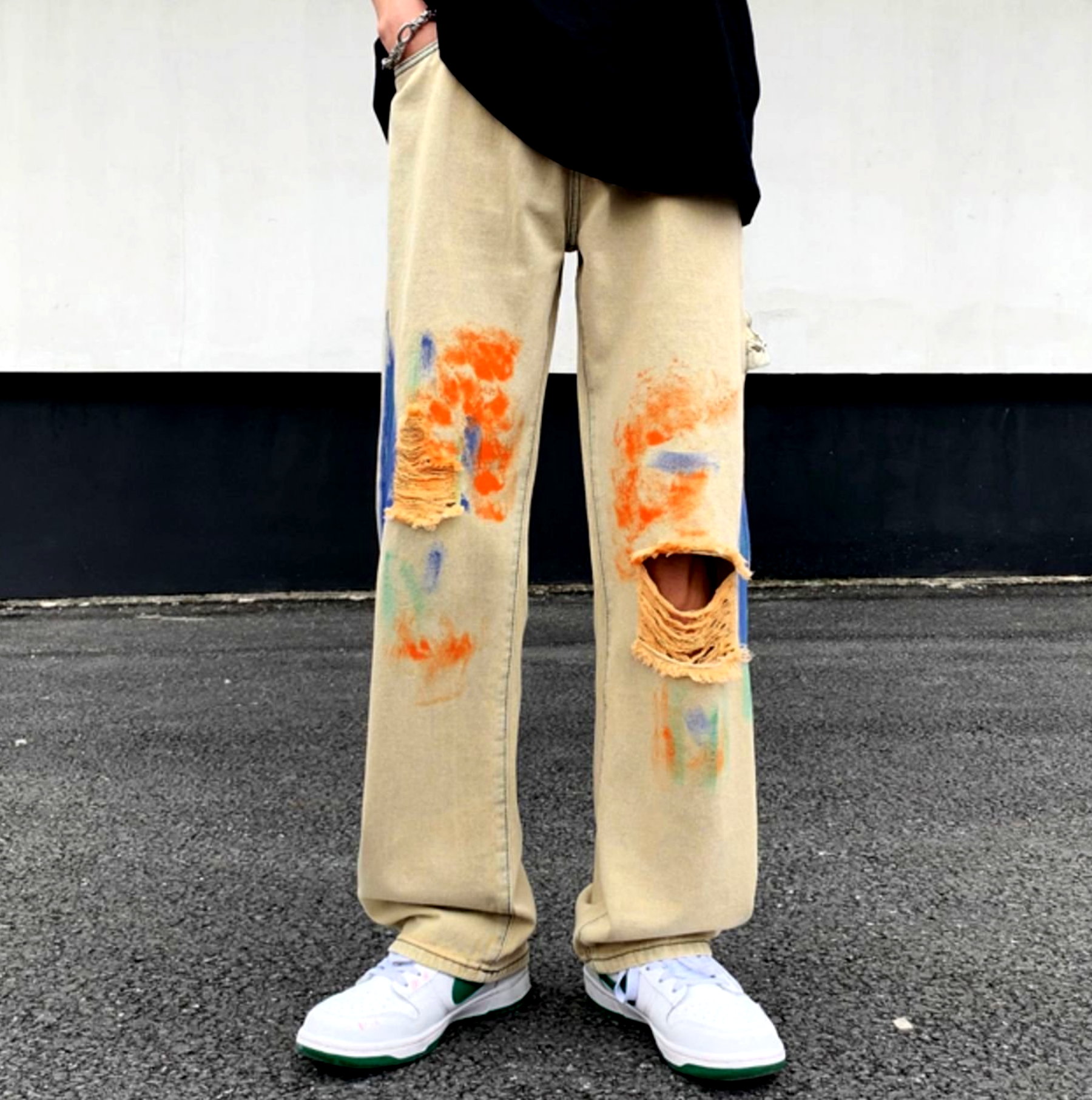 Stunning Punk Graffiti Abstract Prints Ripped Grunge Distressed Hiphop Straight Trousers Streetwear Rave Men Women Amazing