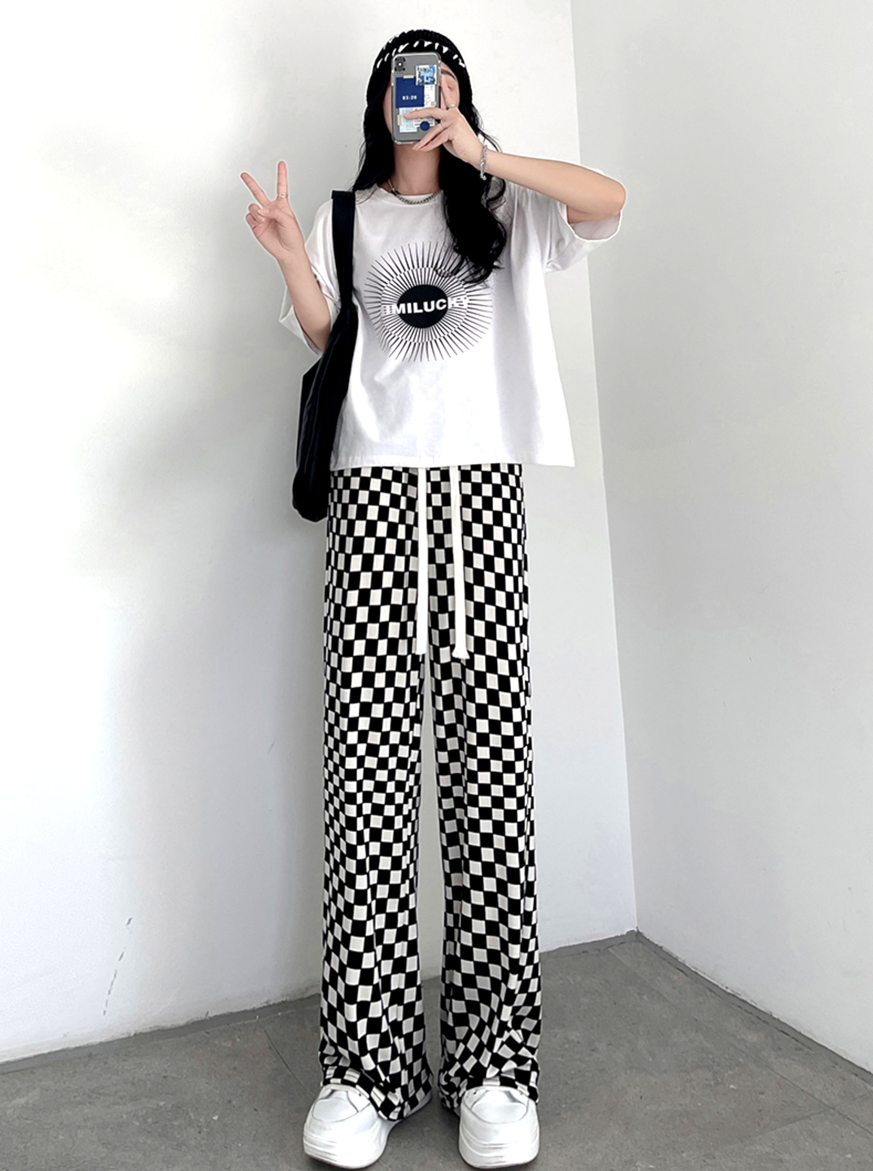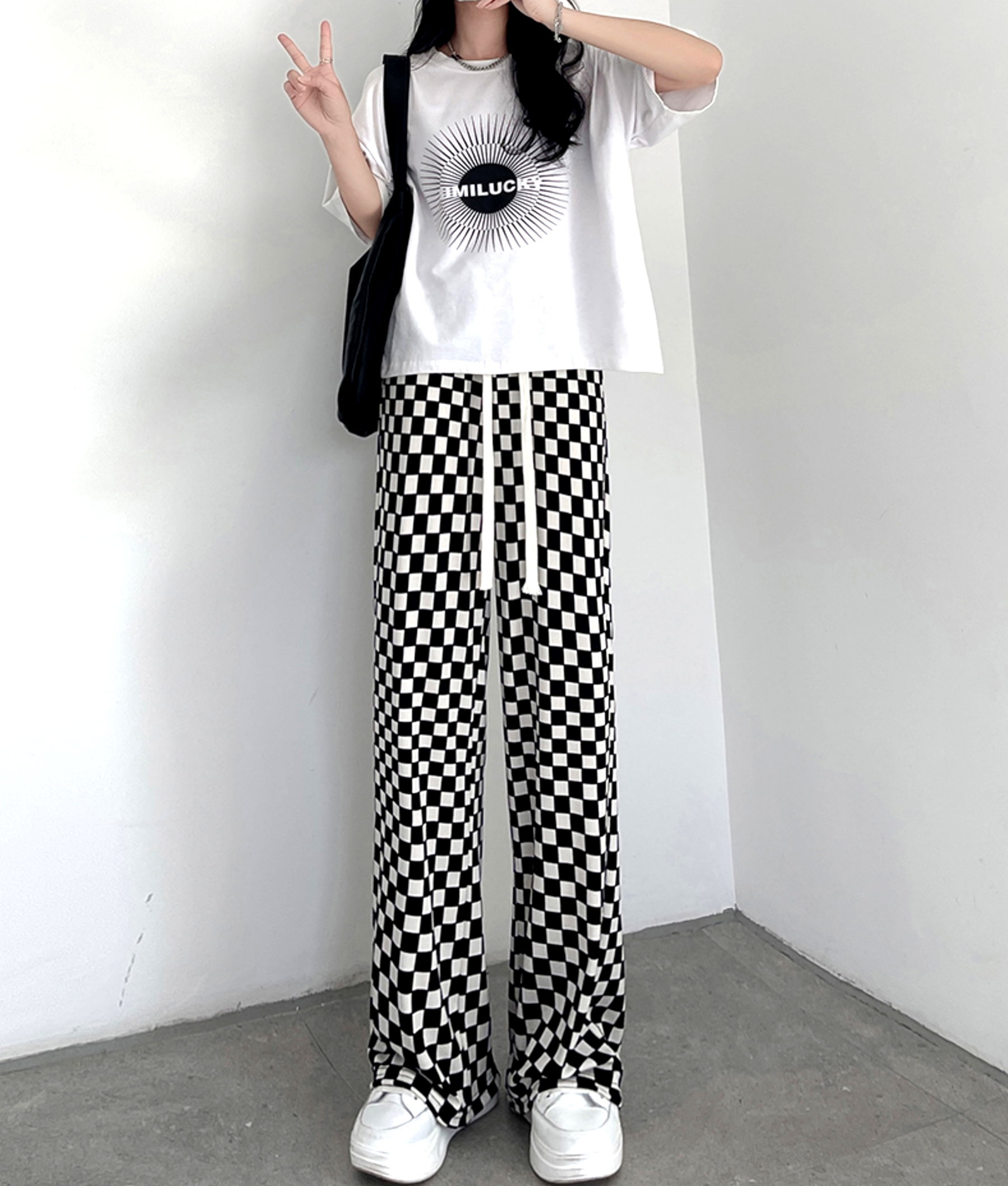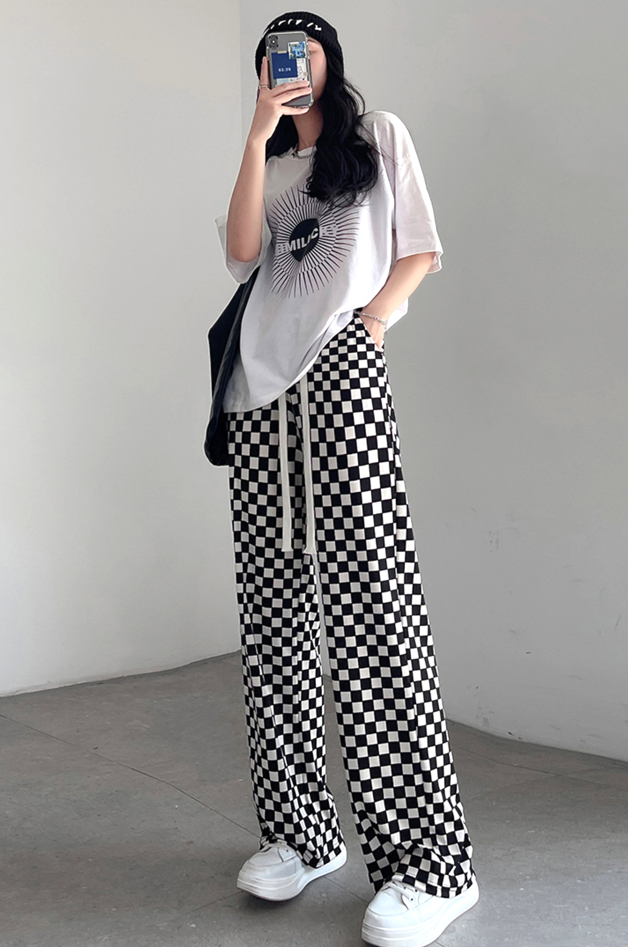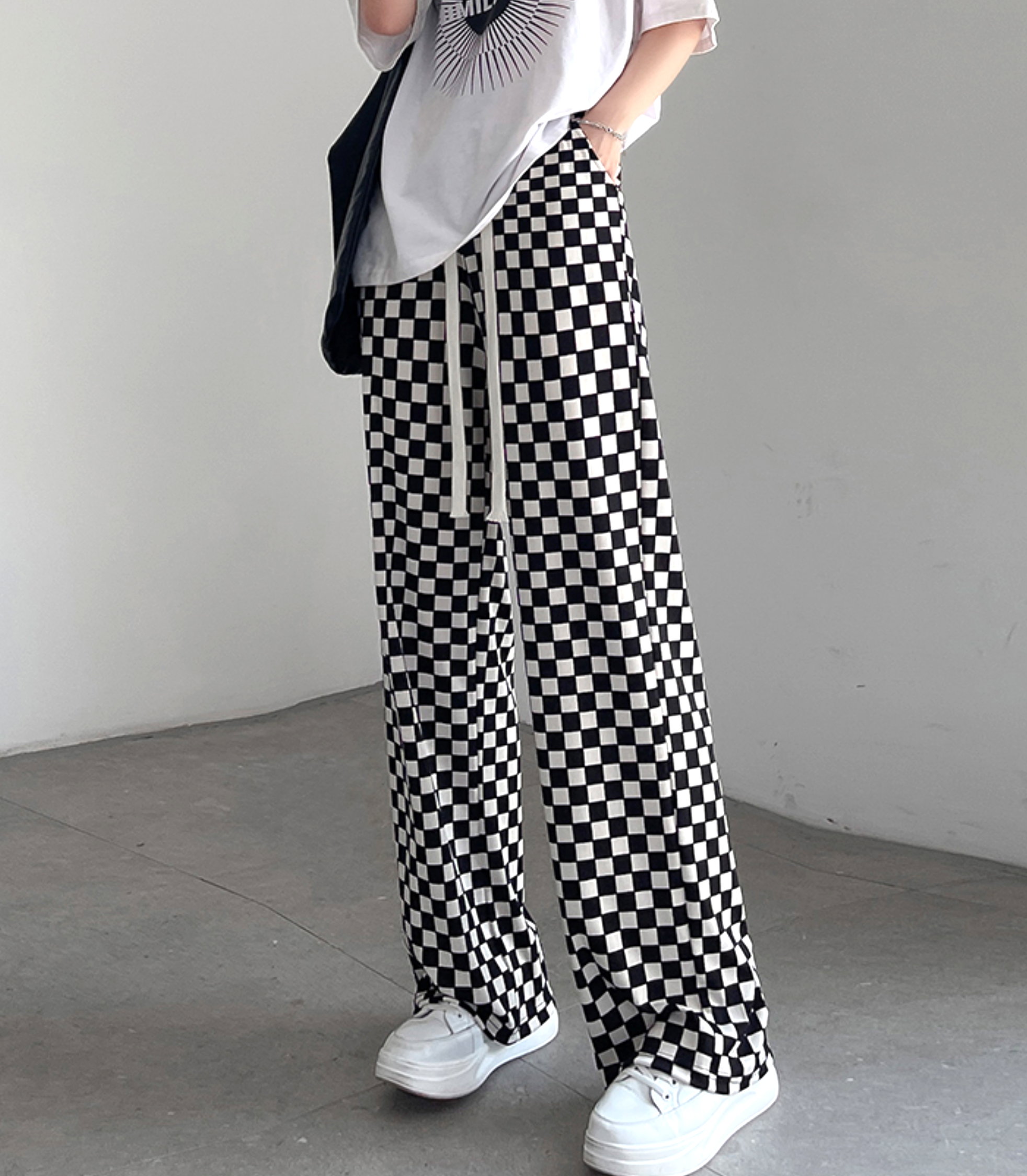 Stunning French Square Plaid Harajuku Hip Hop Oversize Wide Leg Trousers Streetwear Summer Rave