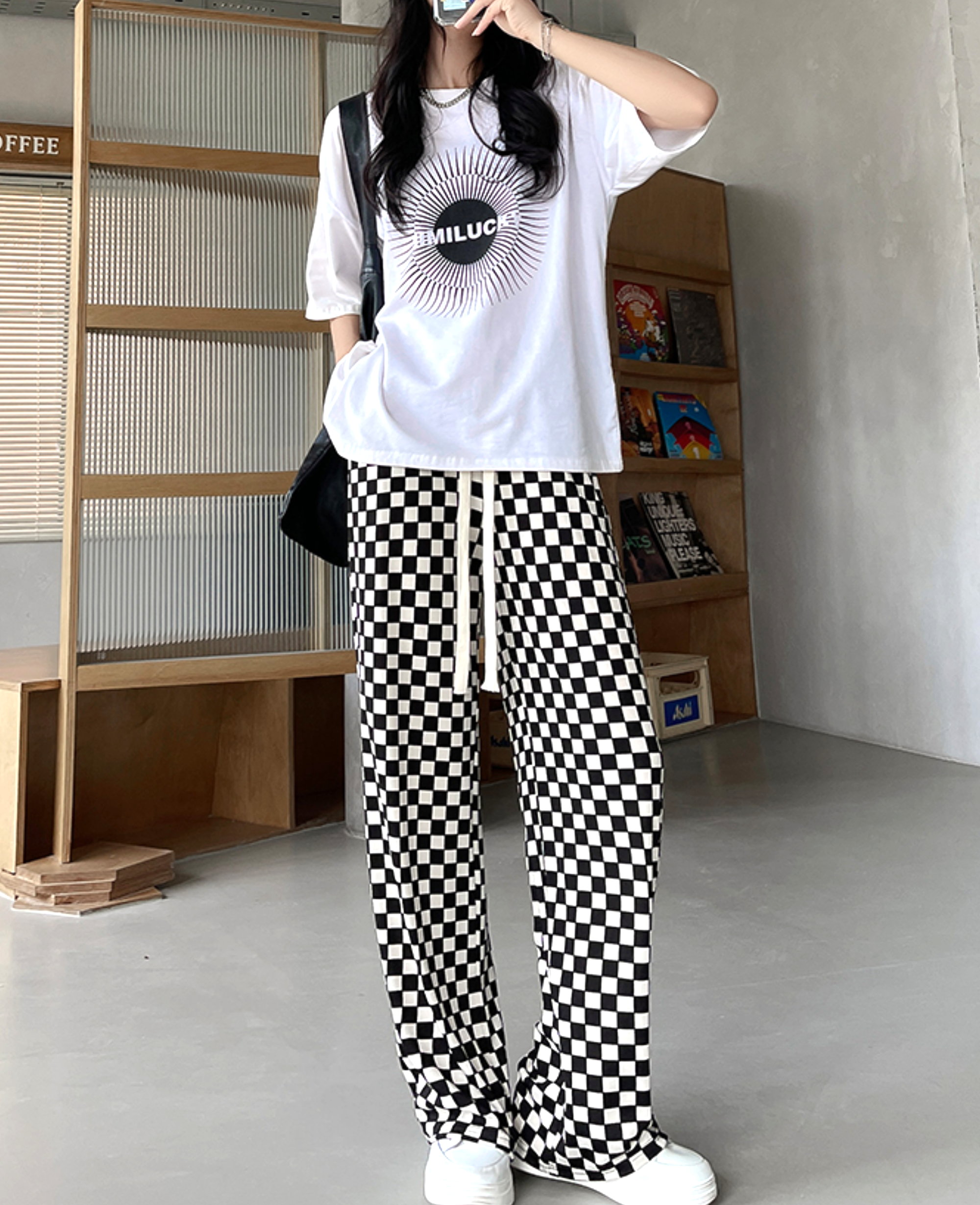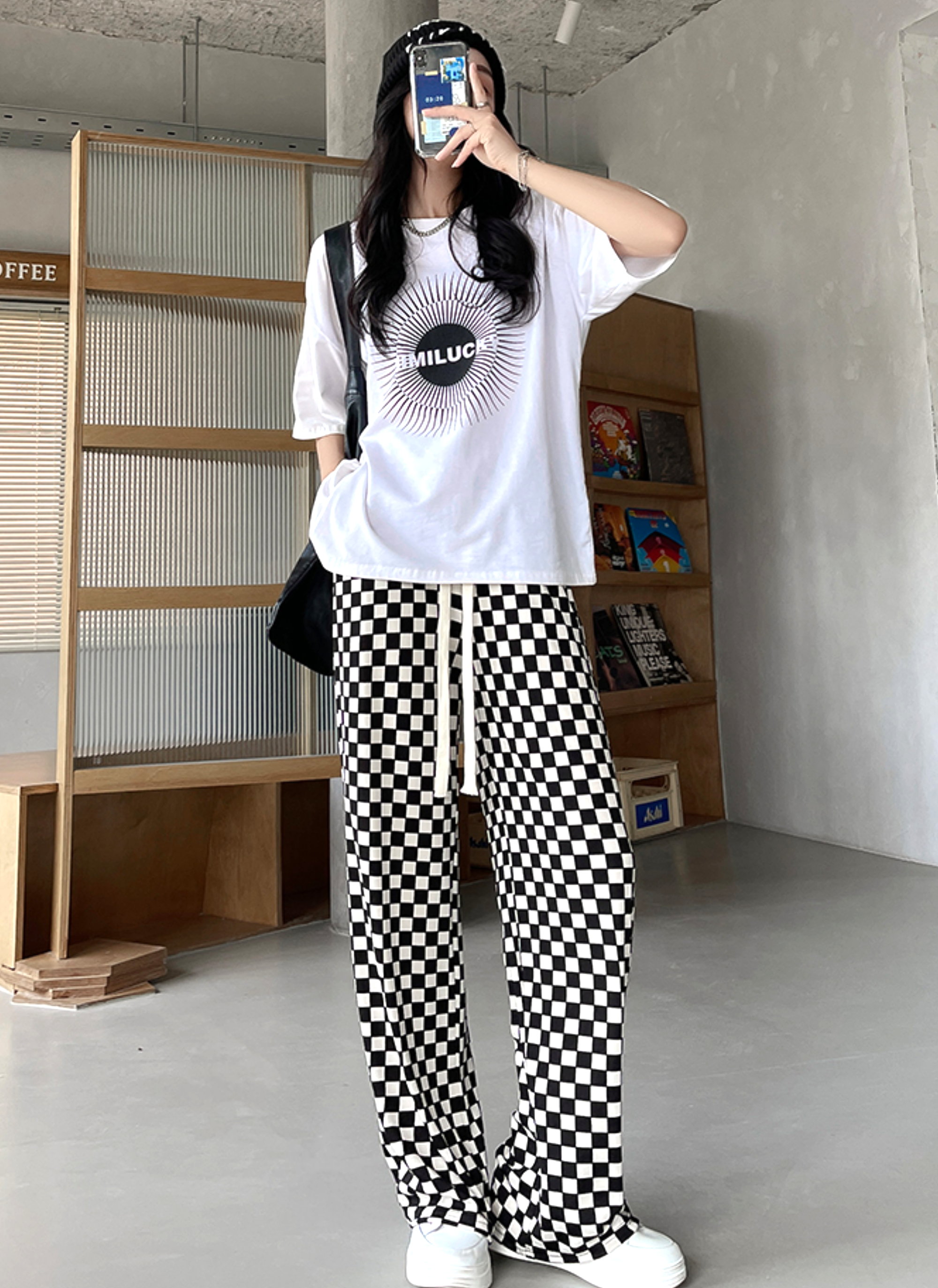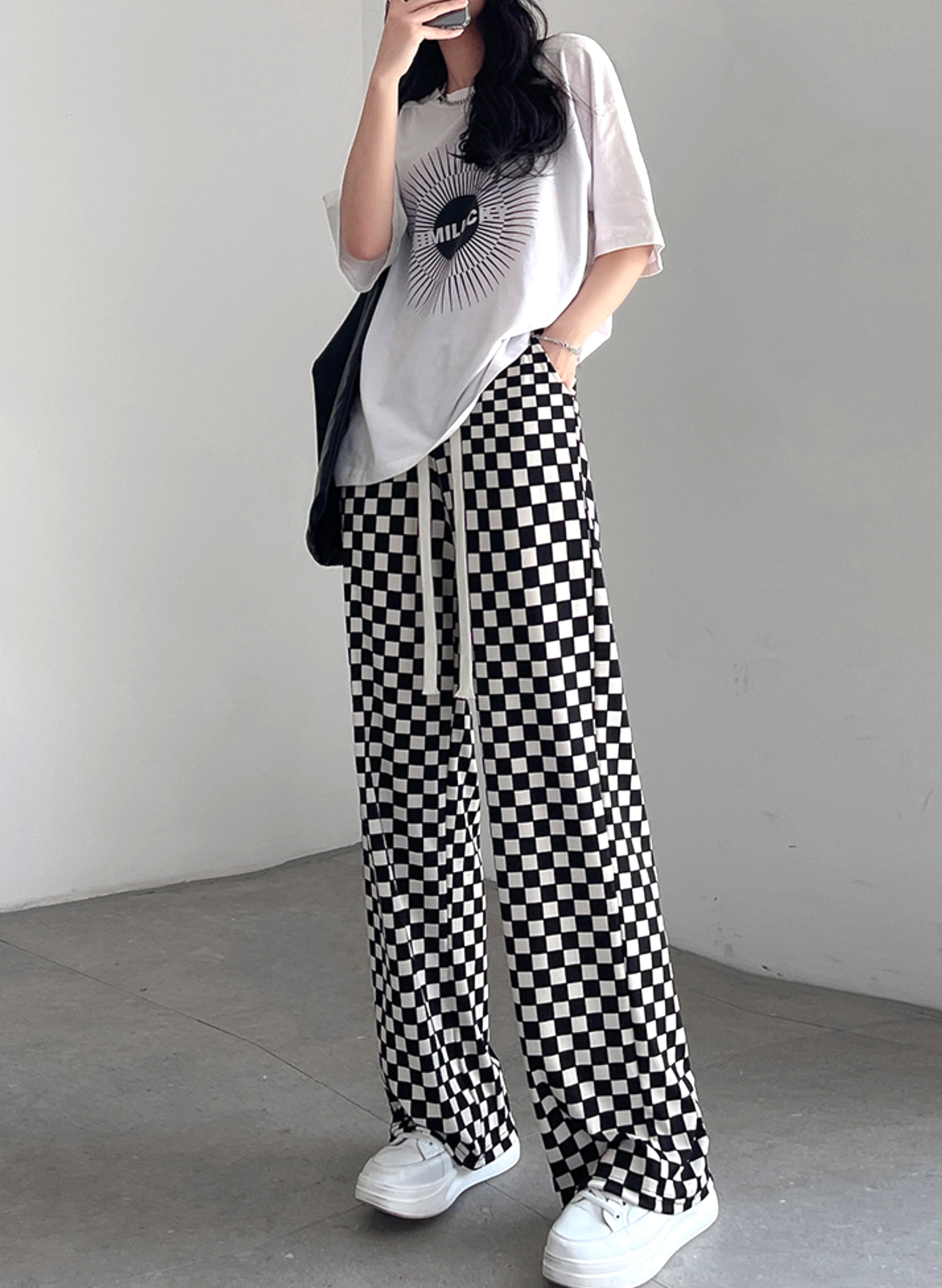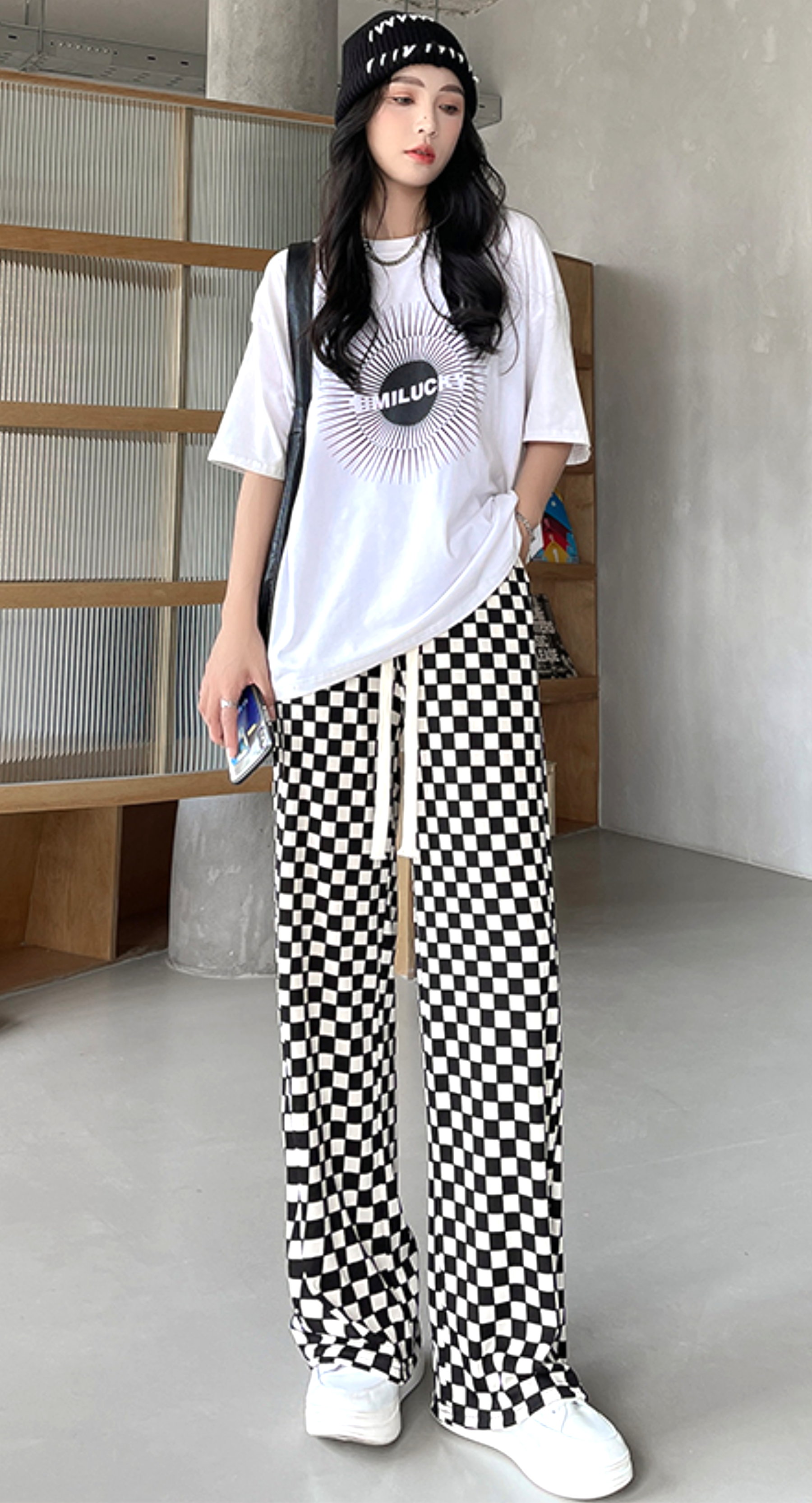 Stunning French Square Plaid Harajuku Hip Hop Oversize Wide Leg Trousers Streetwear Summer Rave