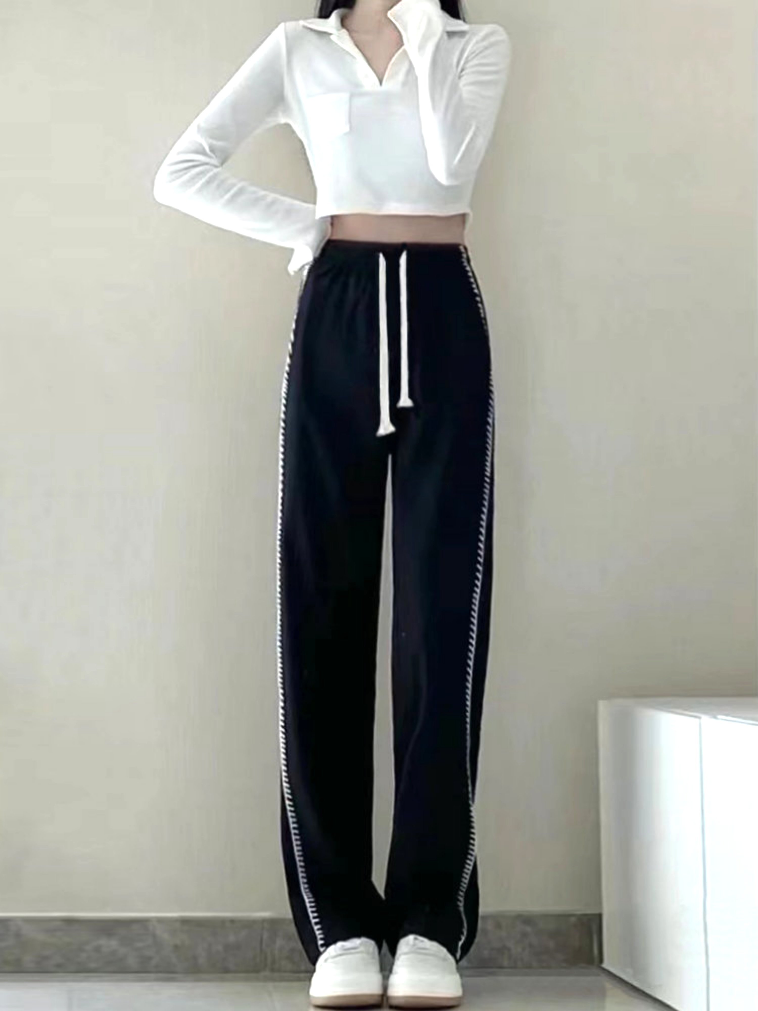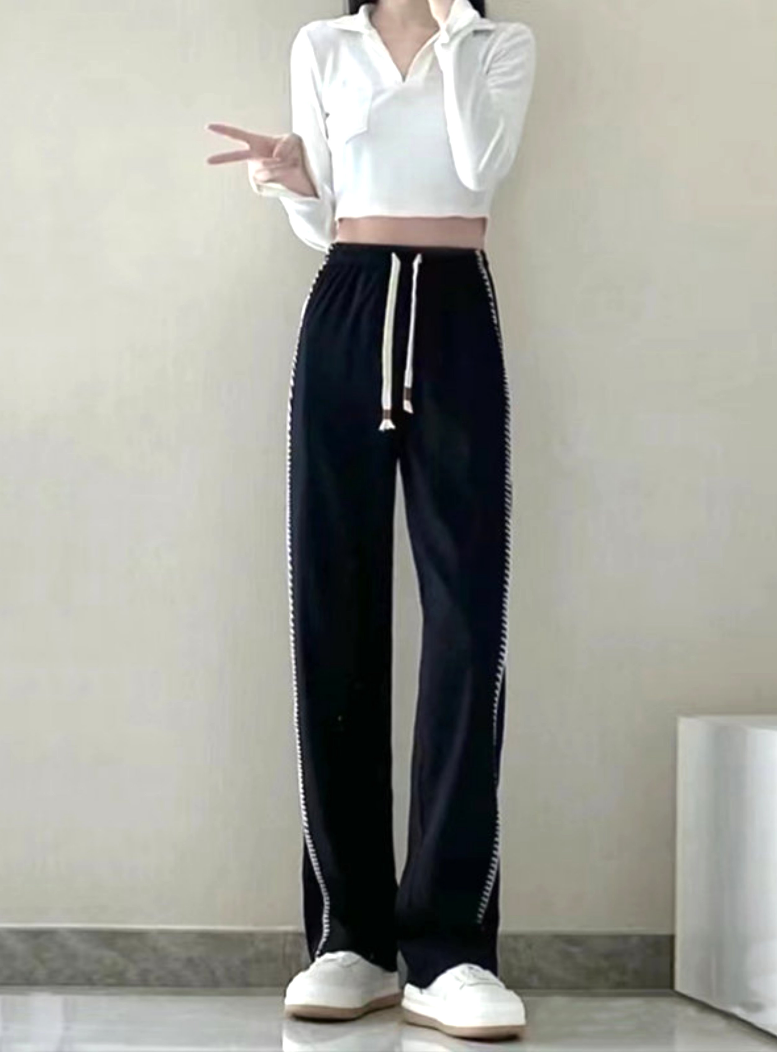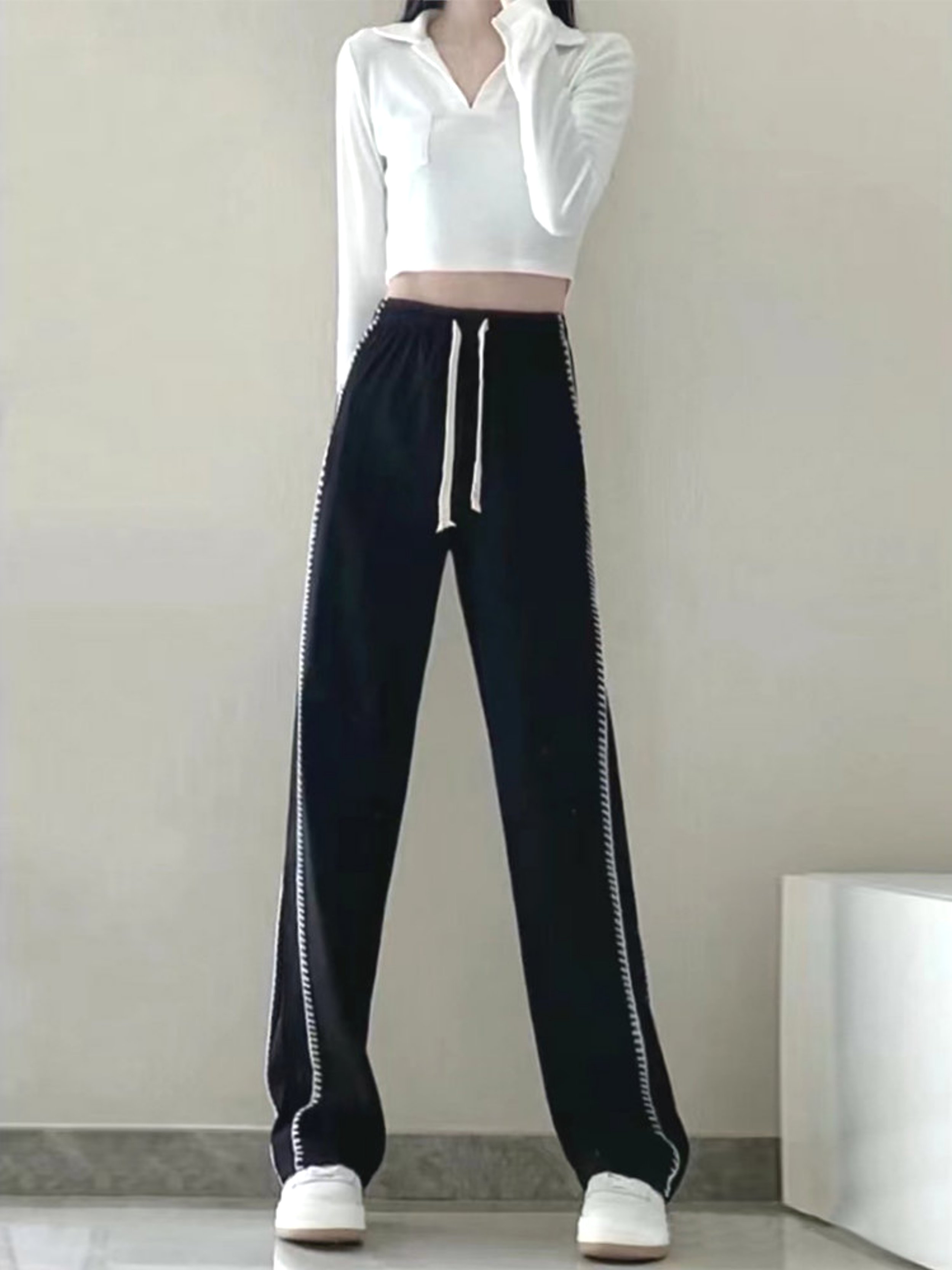 Unique Styleblogger Contrast Stitching Lines Punk Harajuku Hiphop Soft Thin Wide Leg Trousers Y2K 90s Streetwear Party Nightclub Dance Amazing