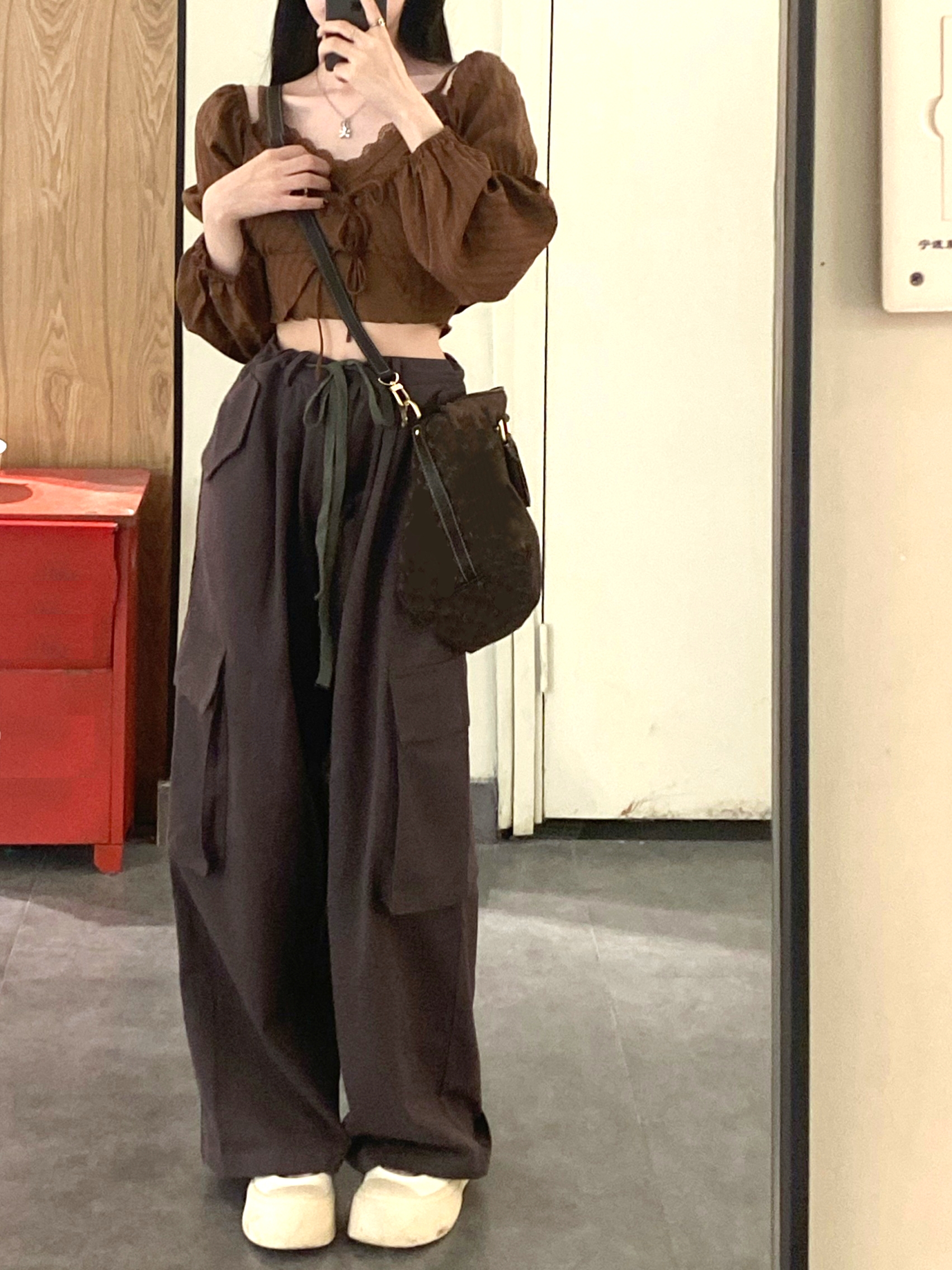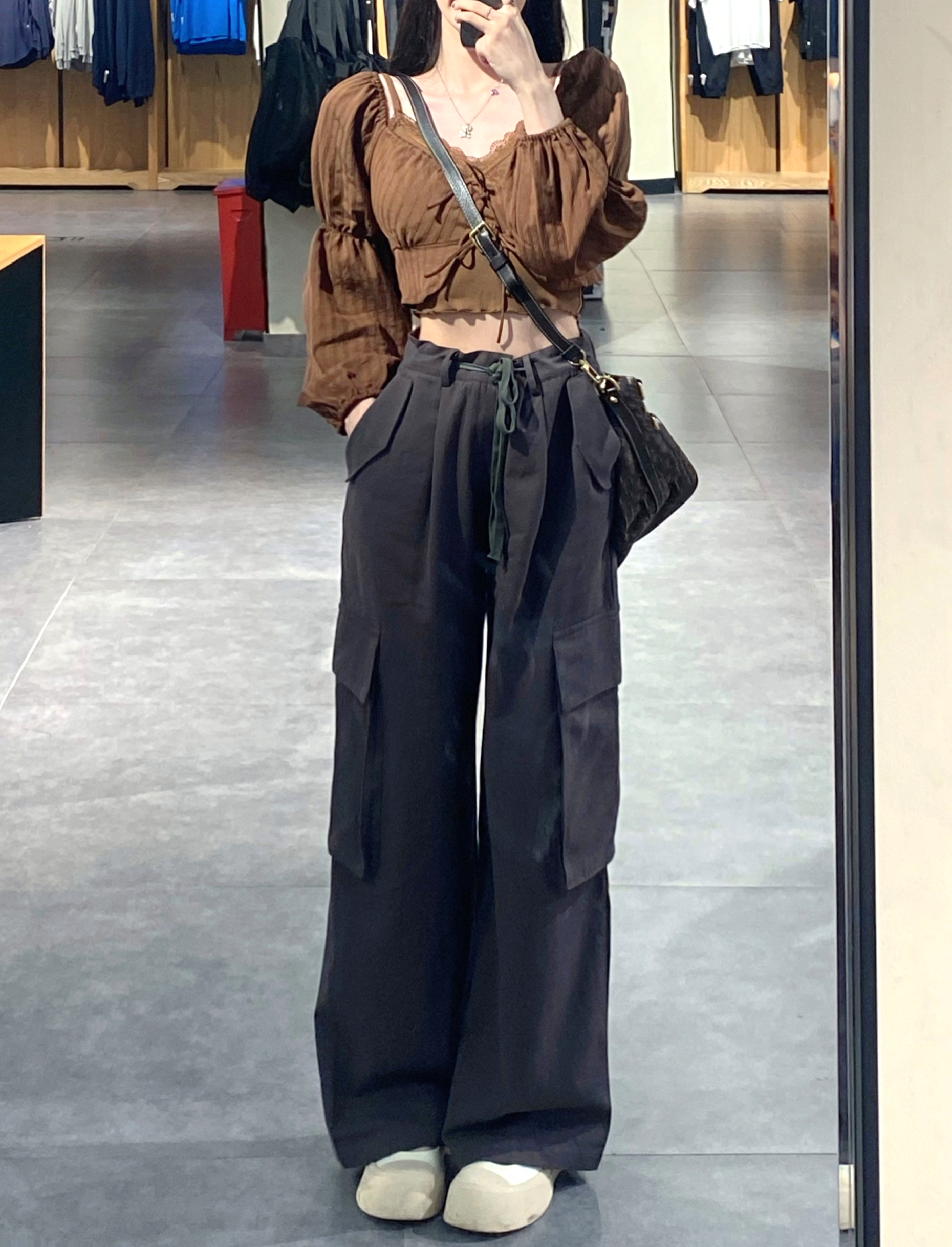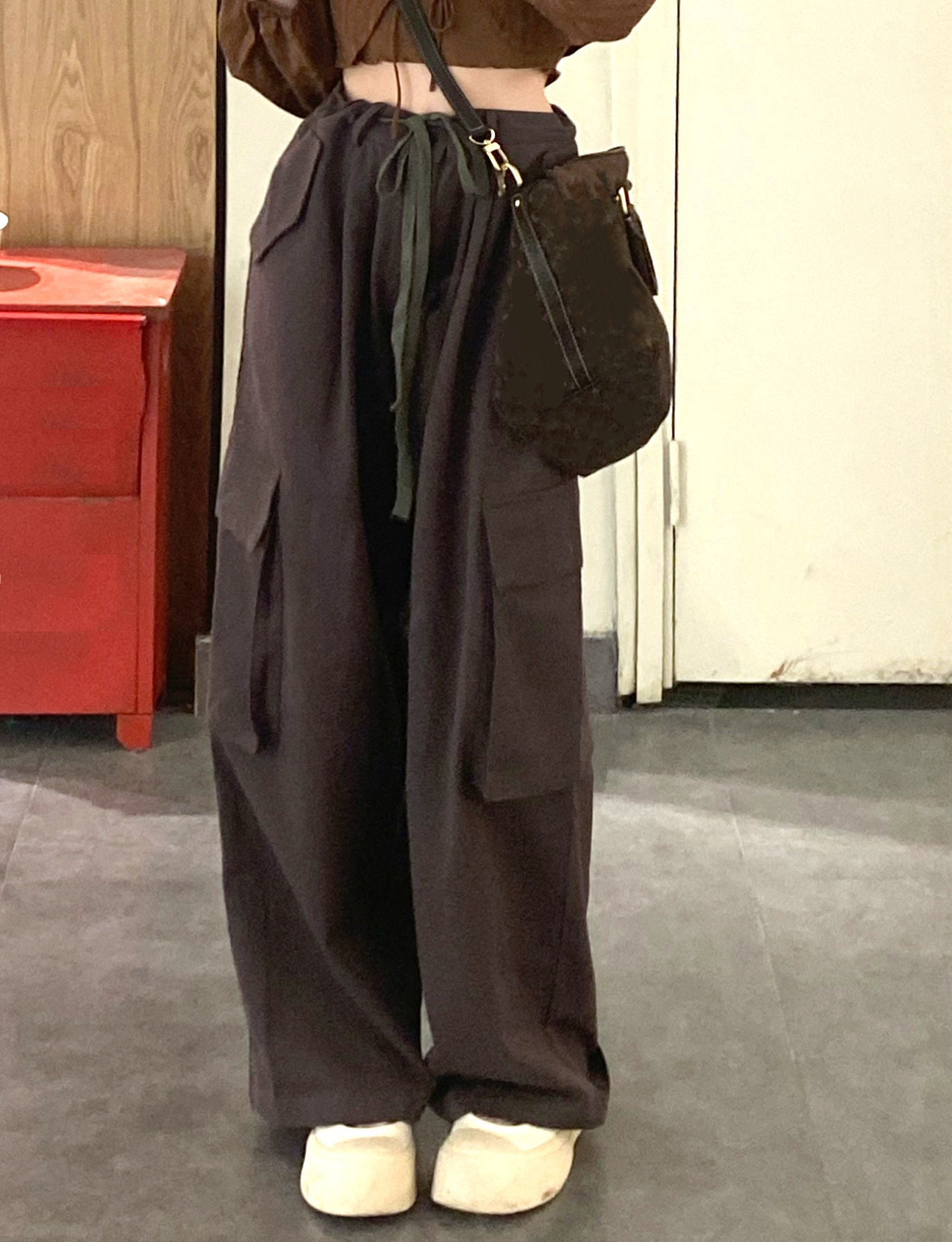 Stunning Punk Cargo Oversize Pockets Drawstring Flattering Pants With Ruffle Crinkle Puffy Tops Streetwear Ootdstyle Amazing