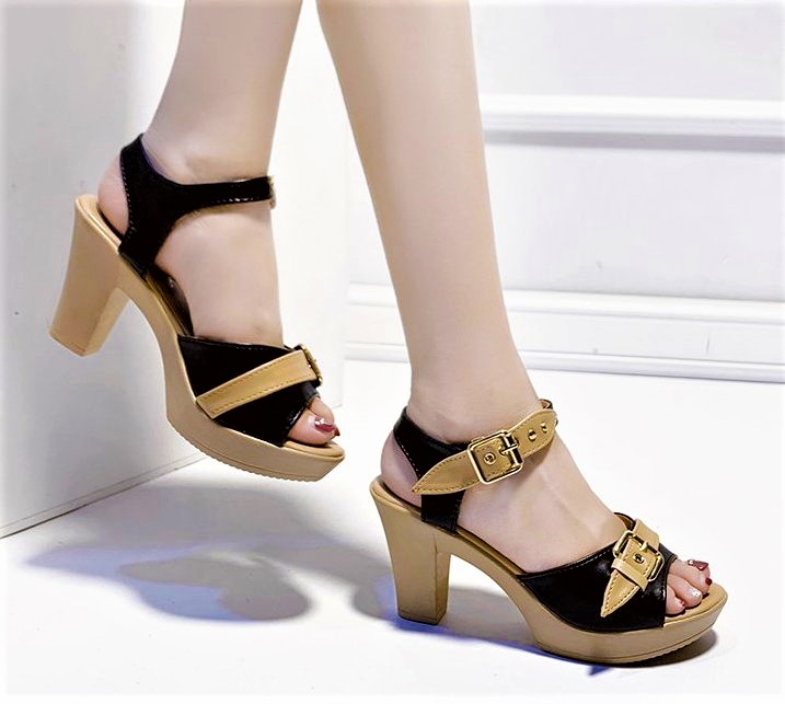 Stunning Chunky Heel Open Toe Patchwork Ankle Buckle Strap Sandals Hottest Style Amazing!