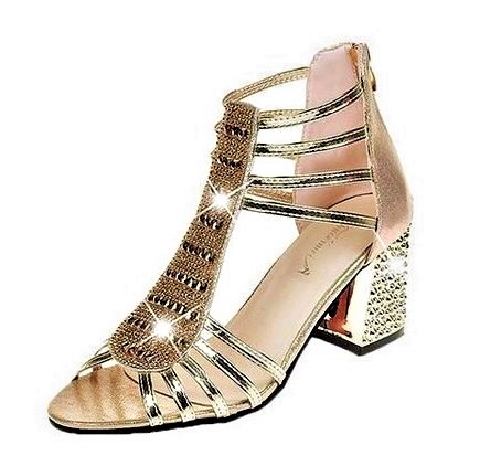 Sexy Glitter Ankle Zip Back Open Toe Chunky Block Heels Sandals Hottest Style Amazing!