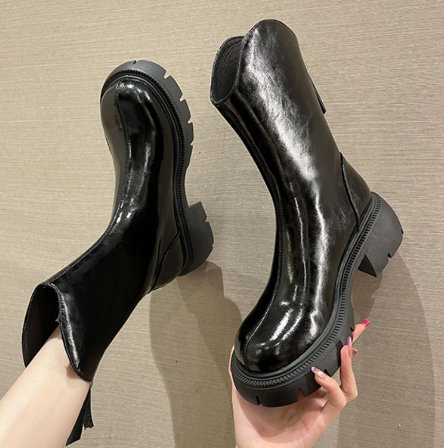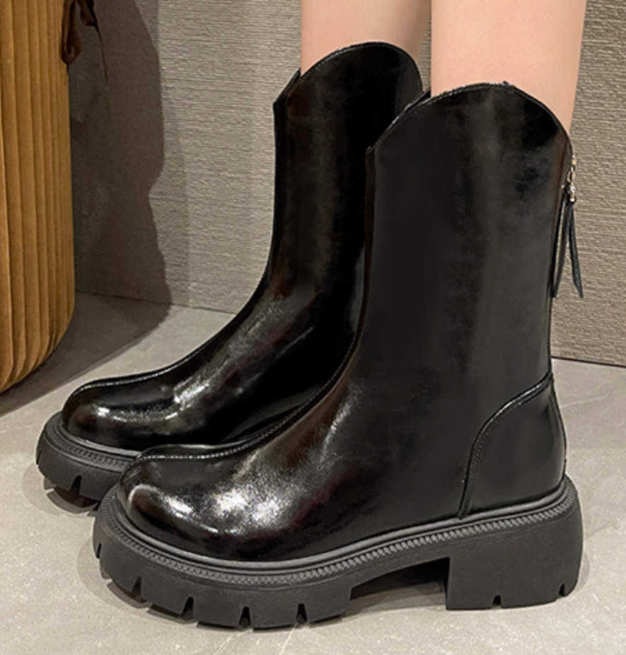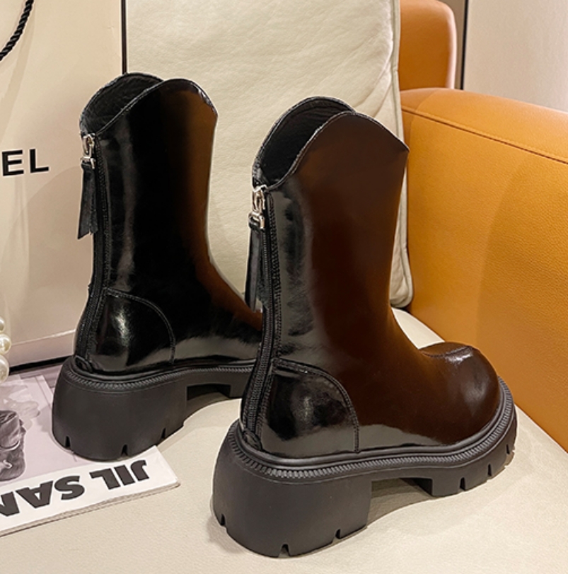 Stunning England Patent Leather Zipper Back Motorcycle Brogue Toe Boots Party Dance Great Event Gothic Ootdstyle Amazing
