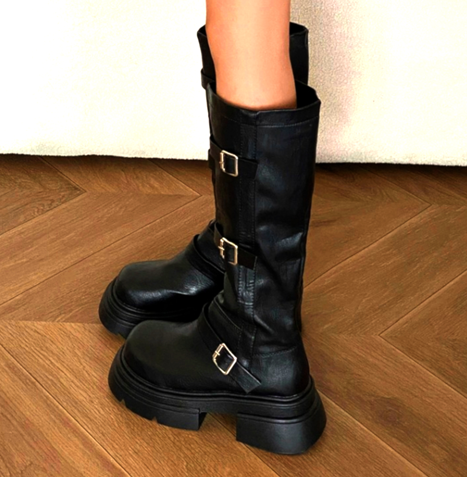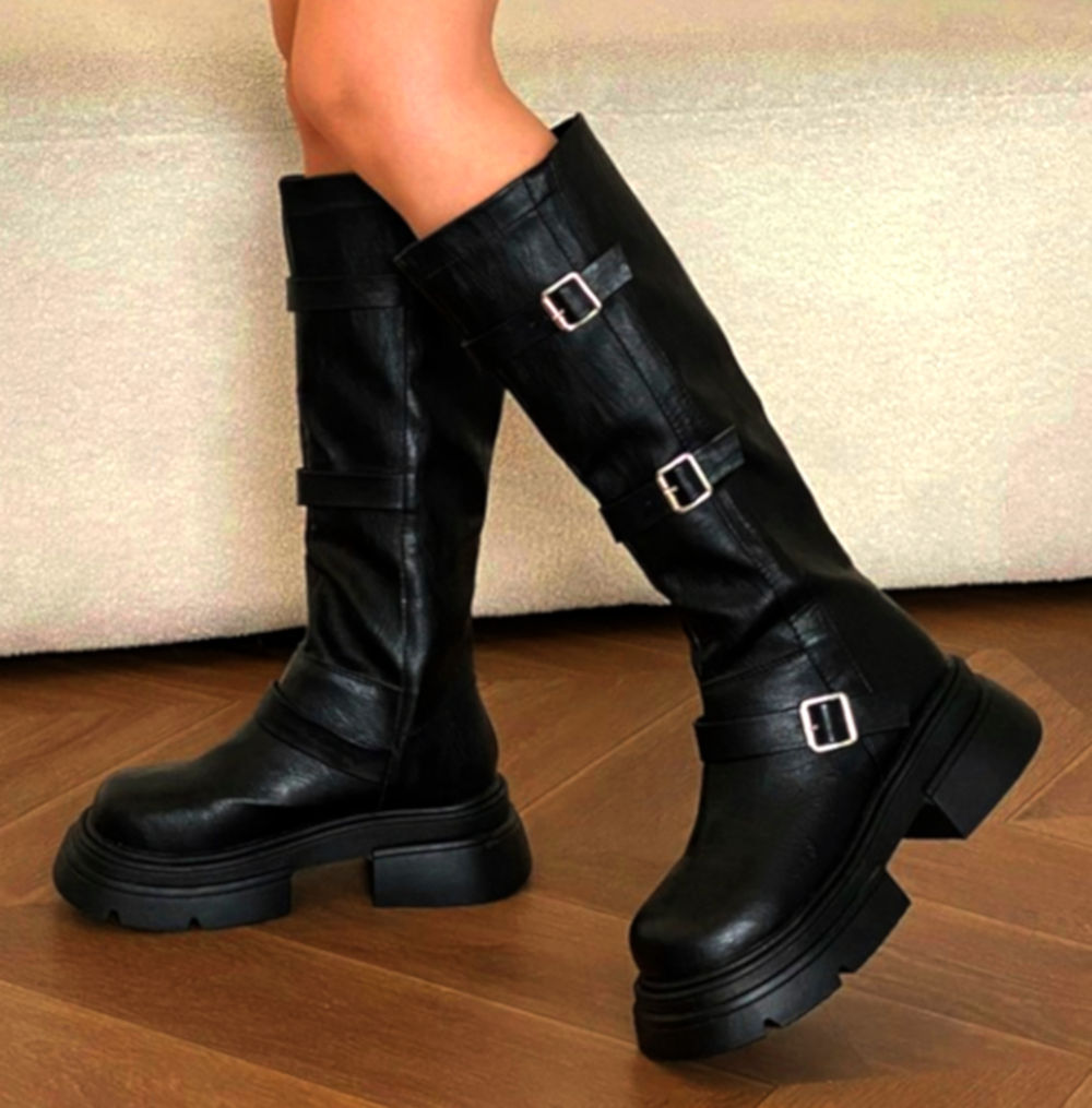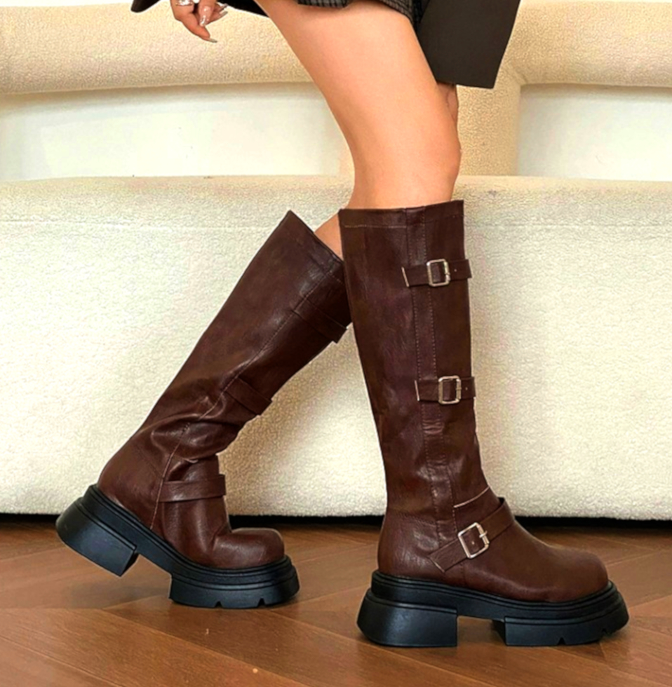 Stunning Retro Bike Leather Buckle Straps Block Heels Boots Unique Ootdstyle Amazing