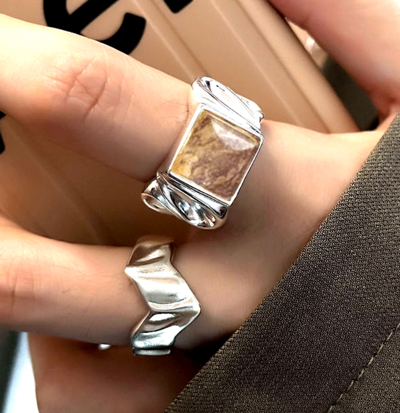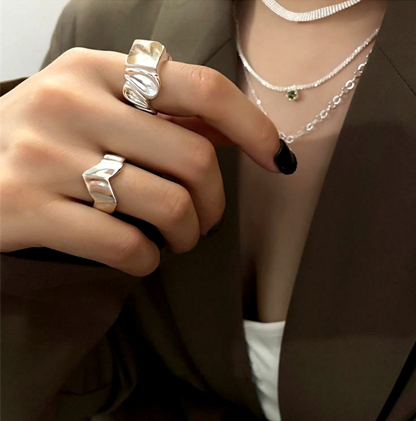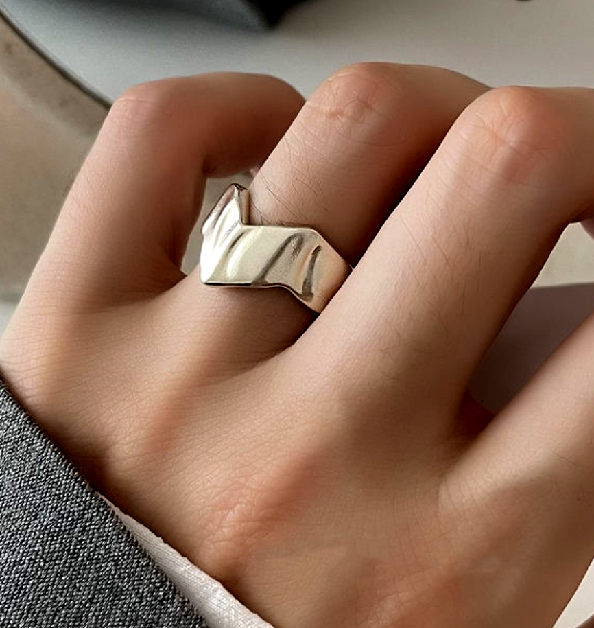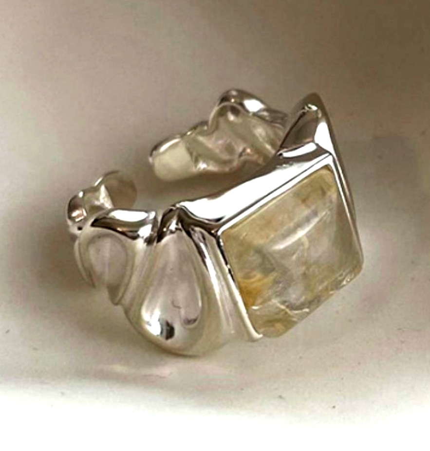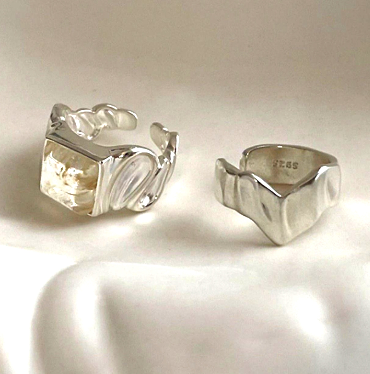 Stunning Gorgeous Dainty Asymmetric Square 925 Silver Ring Party Dance Great Event Rare Ootdstyle Amazing