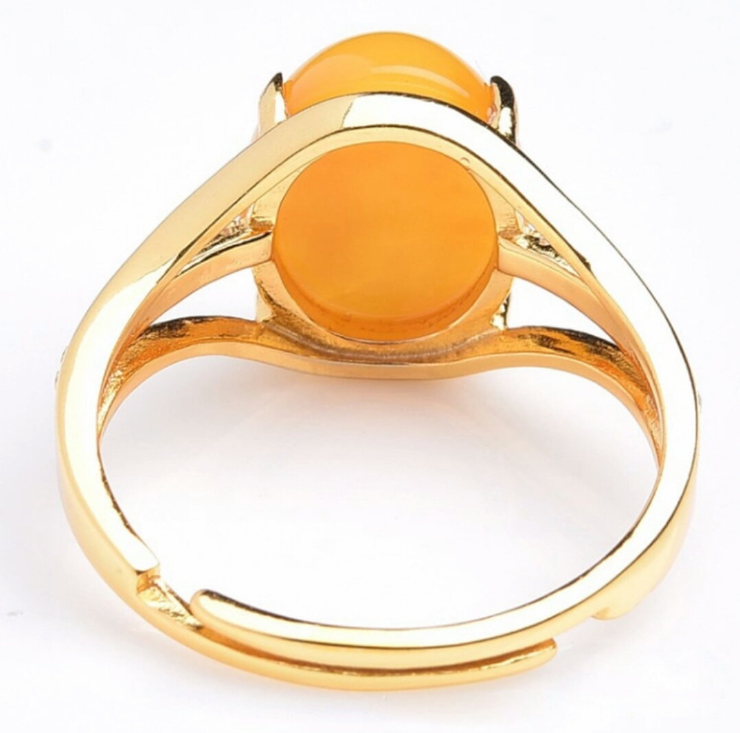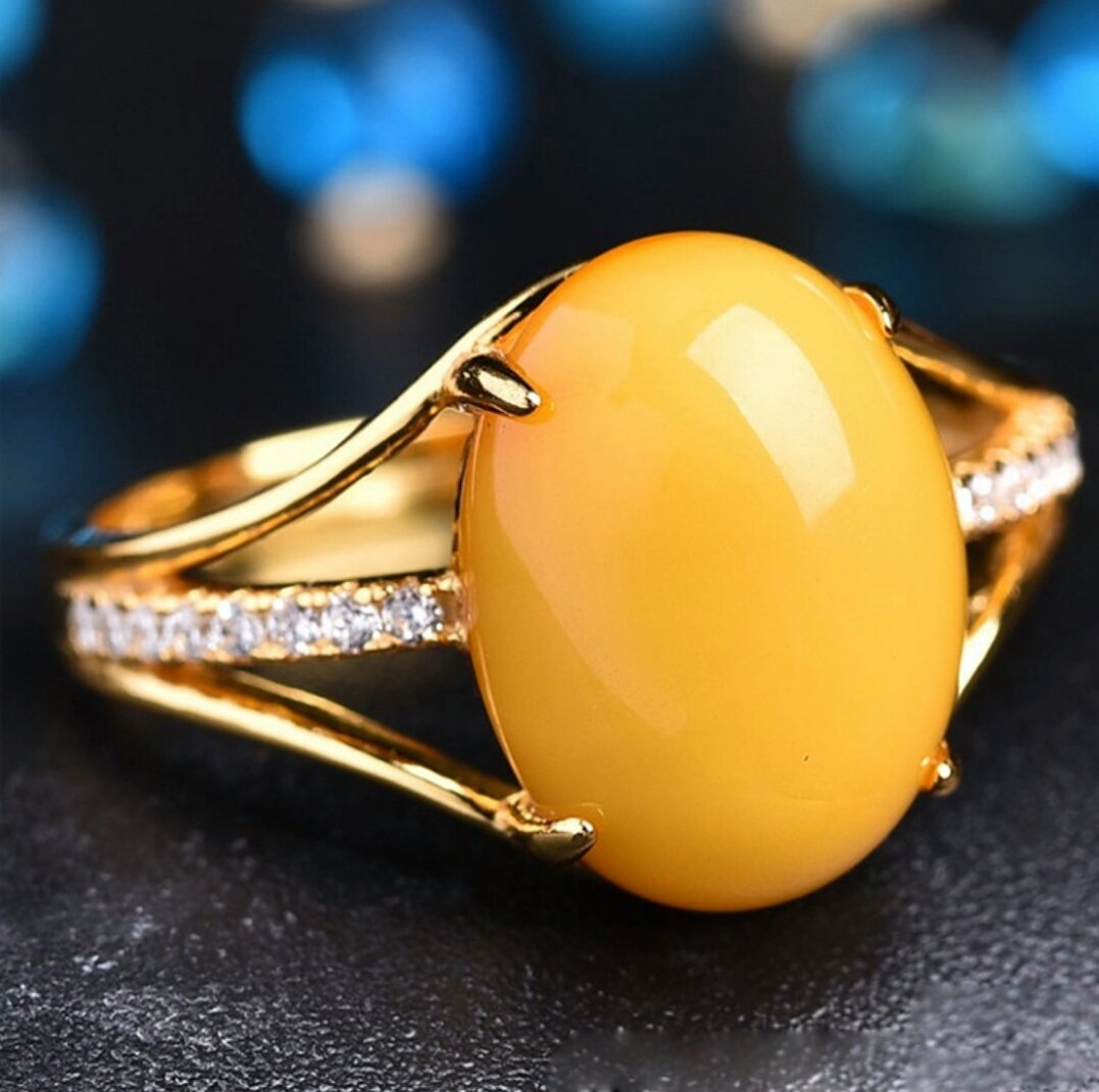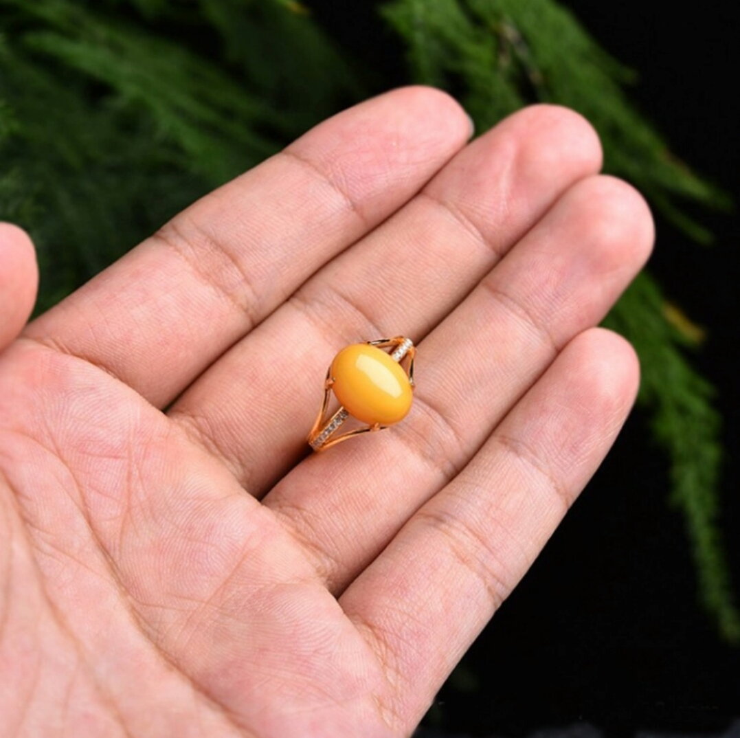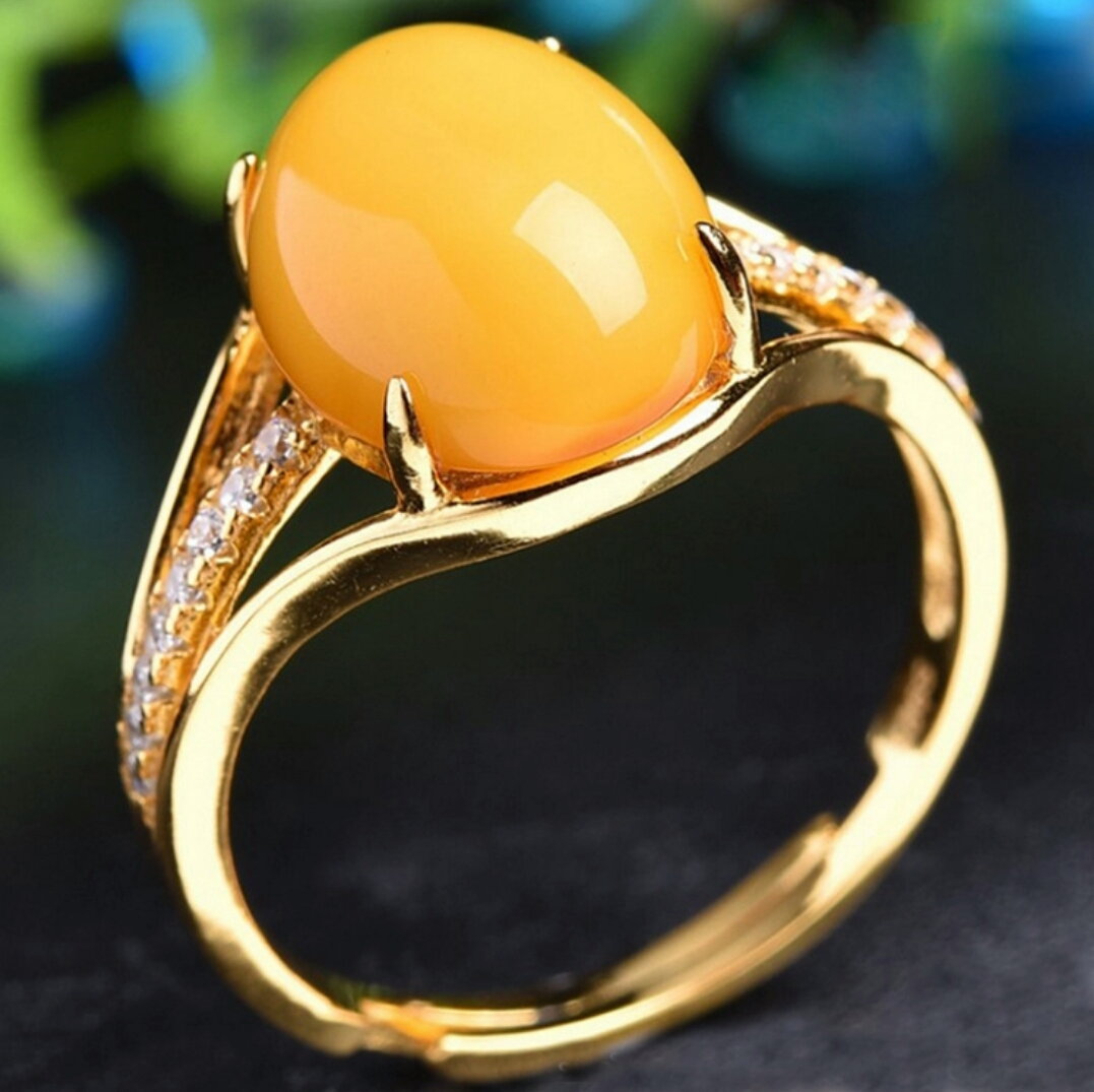 Luxury Natural Beewax Amber Mix Studded Crystals Plated S925 Silver Oval Ring Size Adjustable For Wedding and Engagement Ring, Happy Enjoy!