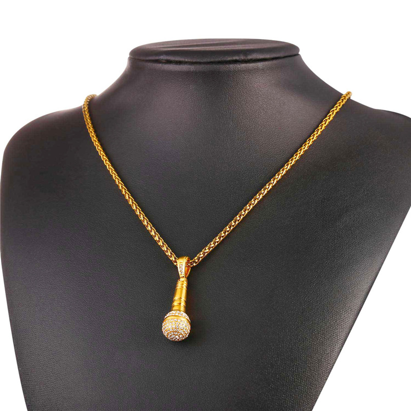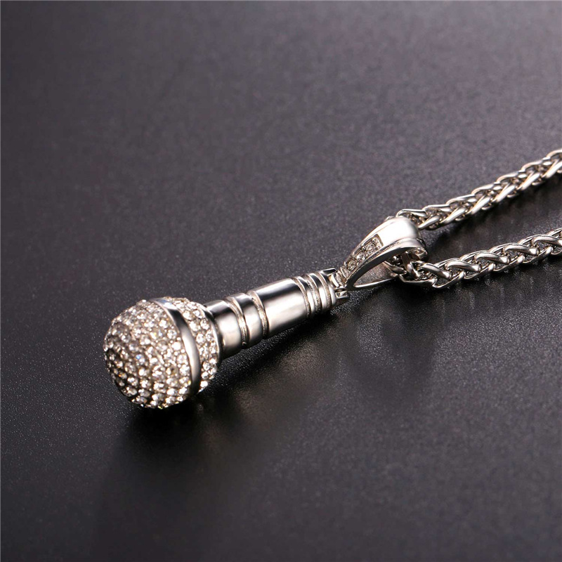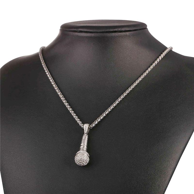 Glittery Microphone Pendant Studded Rhinestone Stainless Steel Plated With Gold, Silver Color For Men/Women Best Hip Hop Jewelry
