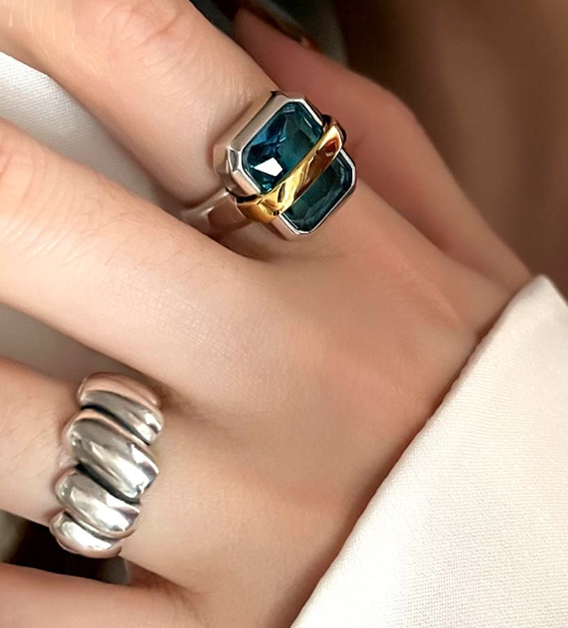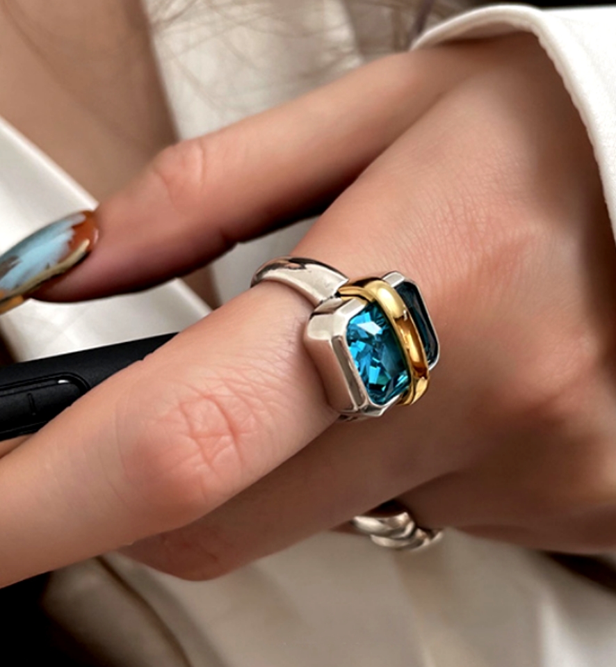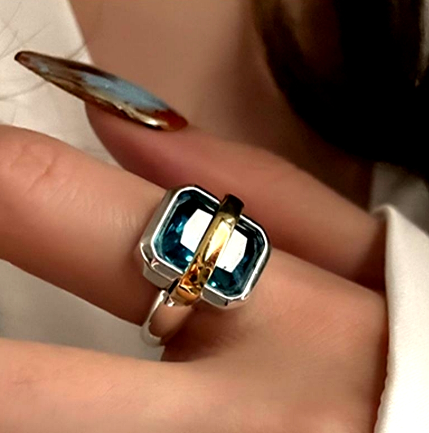 Stunning Gorgeous Geometry Square CZ Rhinestone Sapphire 925 Silver Ring Party Dance Great Event Rare Ootdstyle Amazing