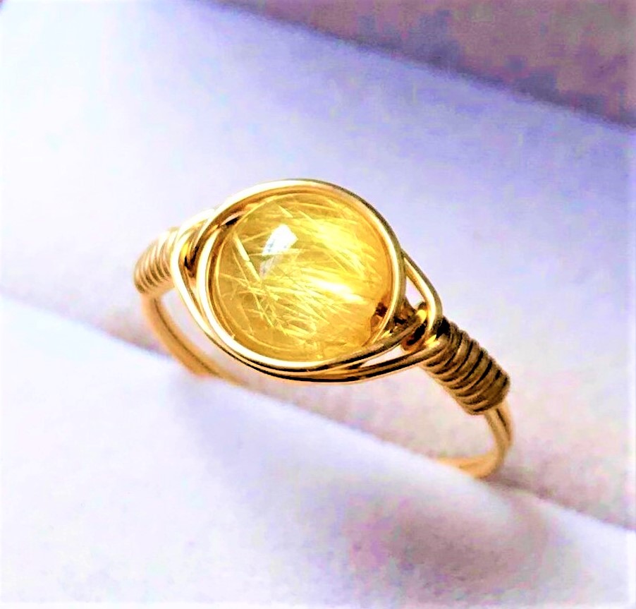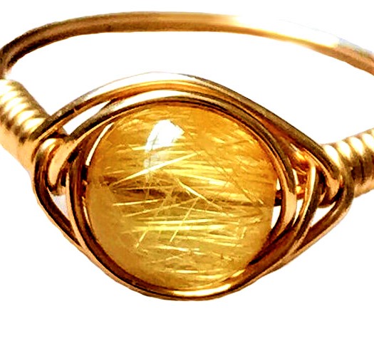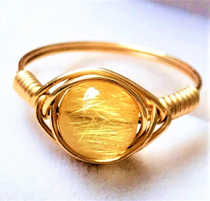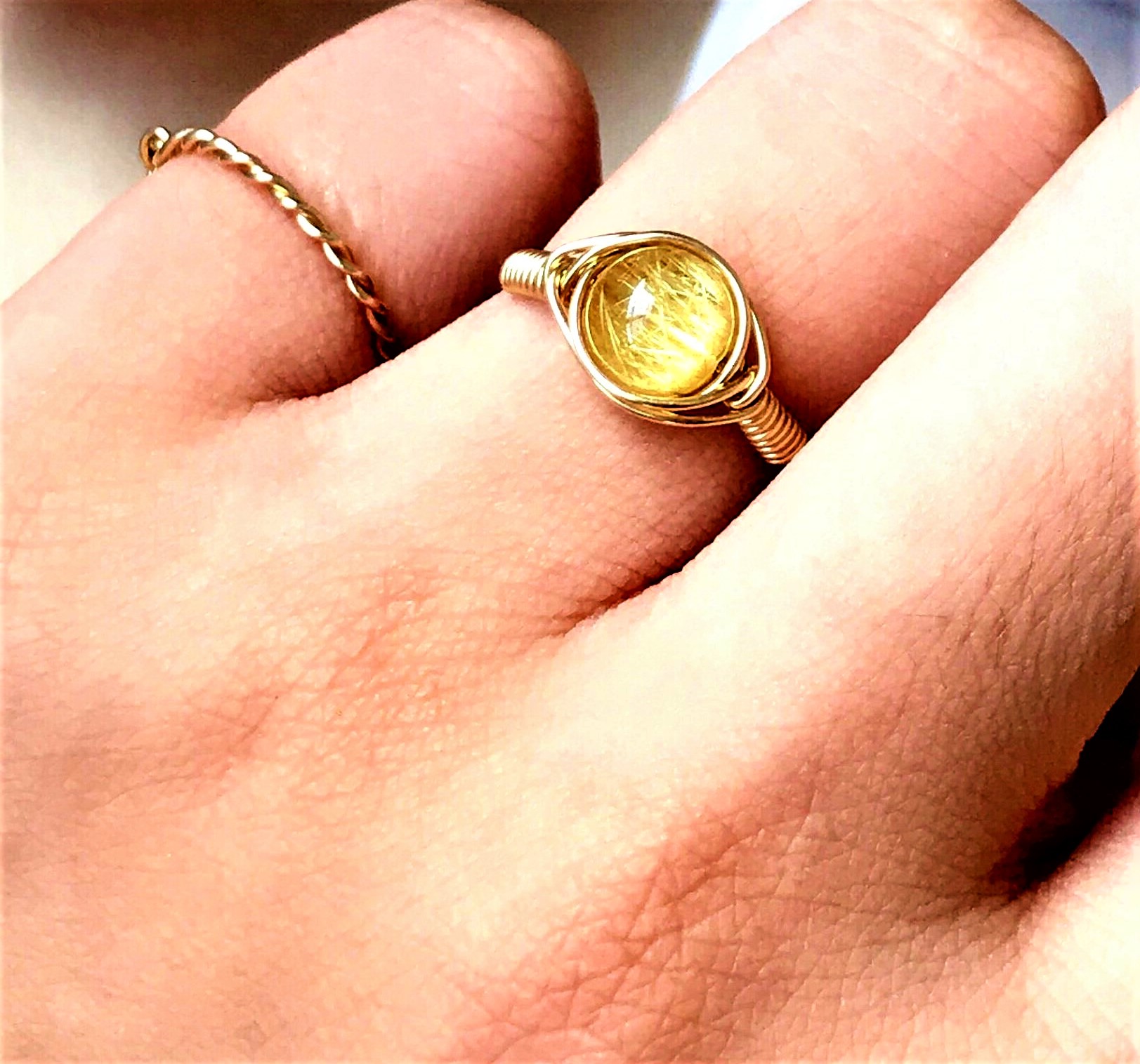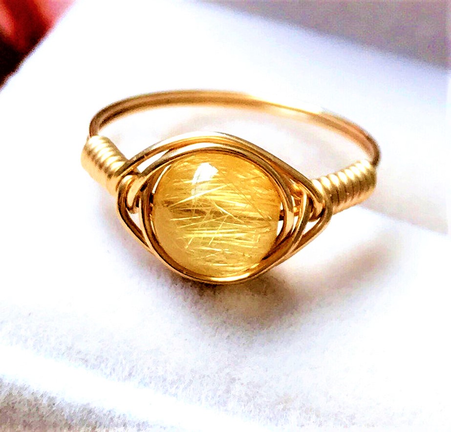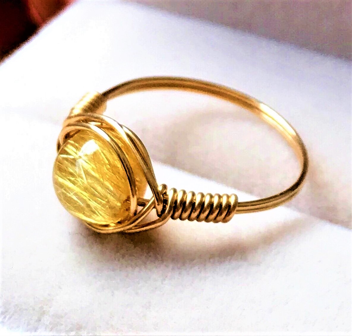 Stunning Natural Gold Rutilated Quartz 14K Gold Plated Fine Jewelry Gemstone Ring 90s Y2K Party Nightclub Dating Occasion Amazing
