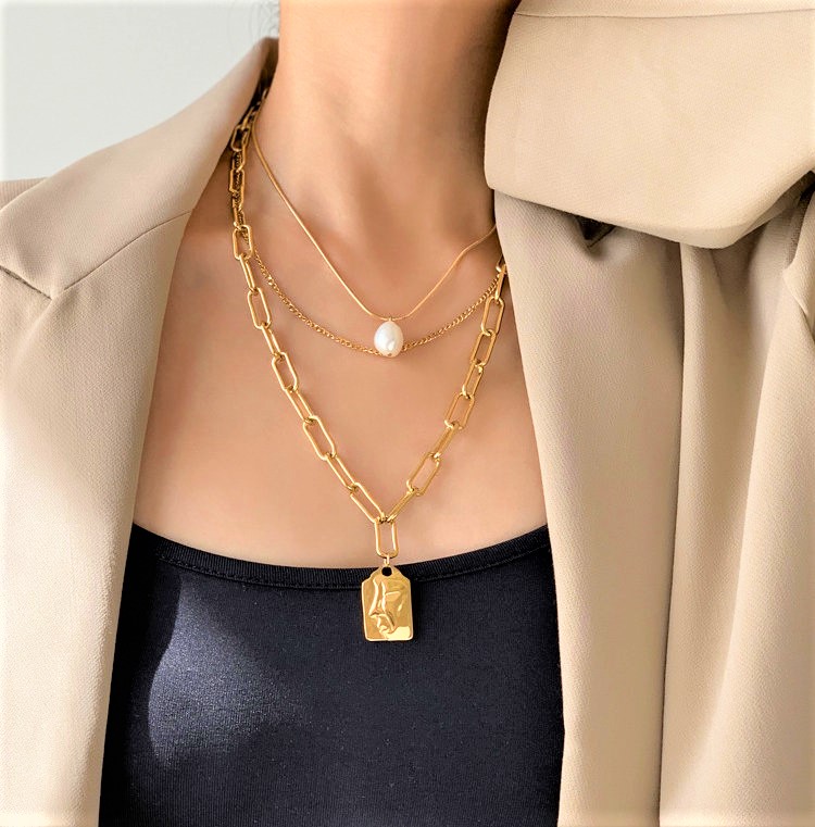 Gorgeous Layered Boho Square Face Mask 18K Gold Necklace y2k 80s 90s 00s Streetwear Party Celebrity Hottest Style!