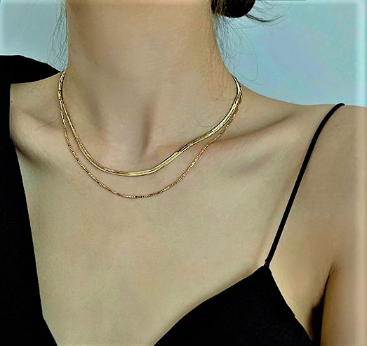 Lustrous Minimalist Stainless Steel Gold Layered Choker Necklace 90s Y2K Streetwear Party Occasion Nightclub Dating Amazing!