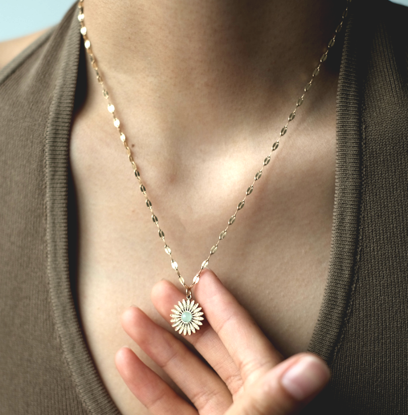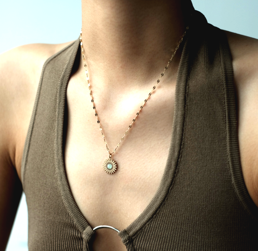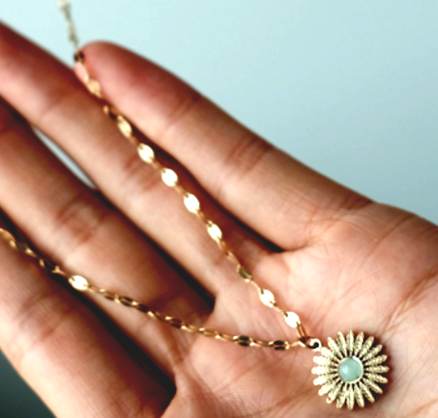Stunning Unique Sun Flower Studded Moon Stone Pendant Y2K 90s Party Birthstone Celebrity Hottest Style Amazing