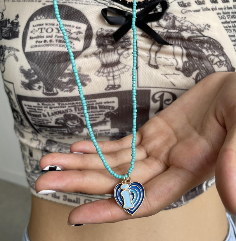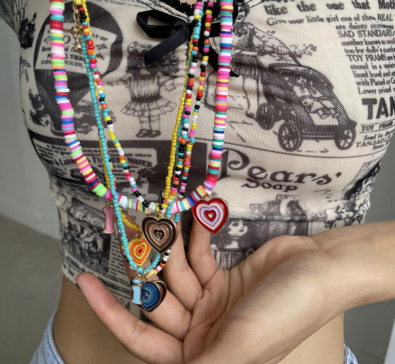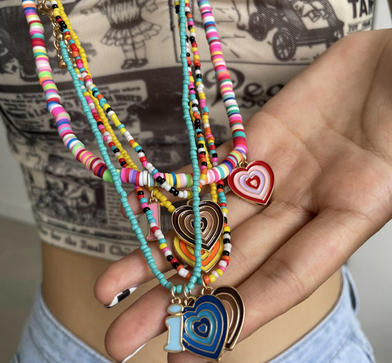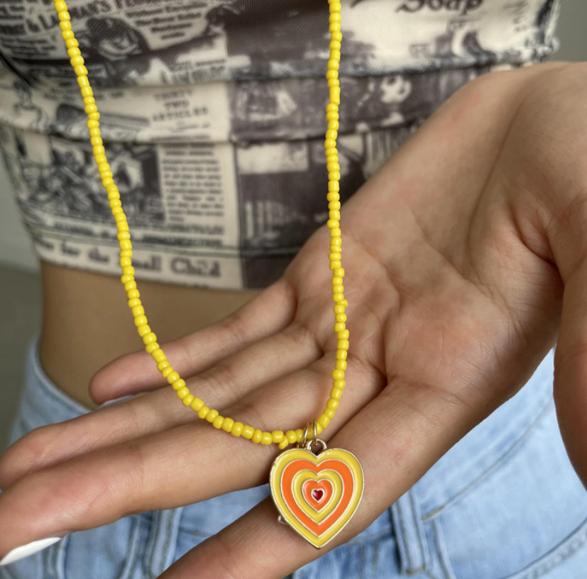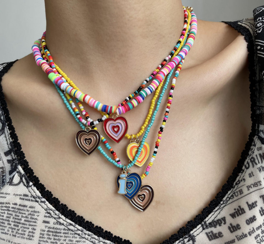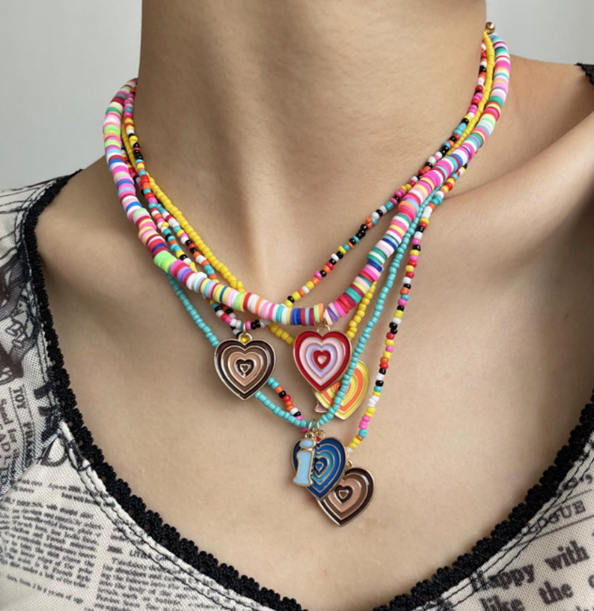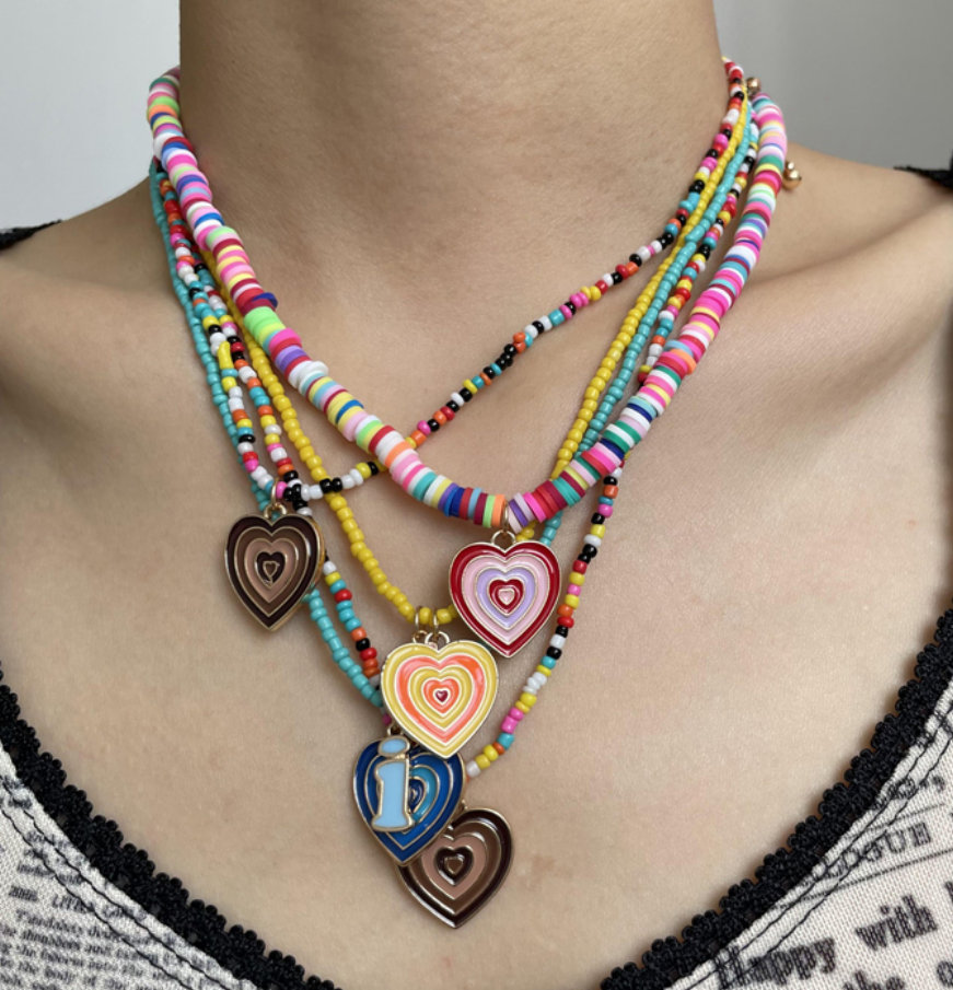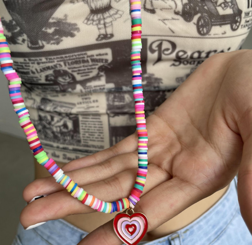 Stunning Unique Handmade Rainbow Beads Necklace Heart Pendant Y2K 90s Party Birthstone Celebrity Hottest Style Amazing
