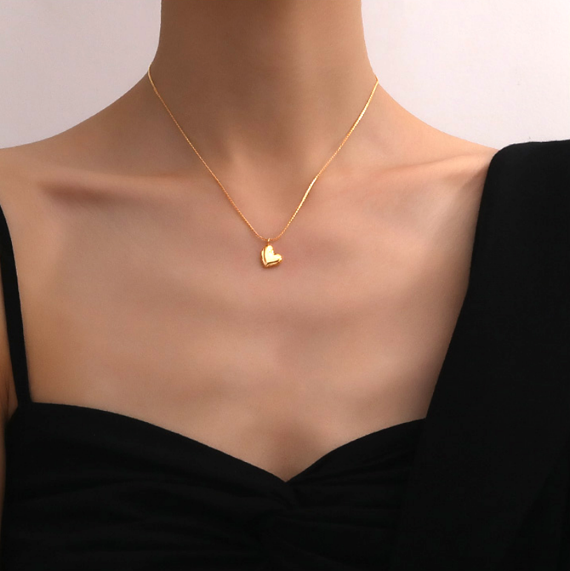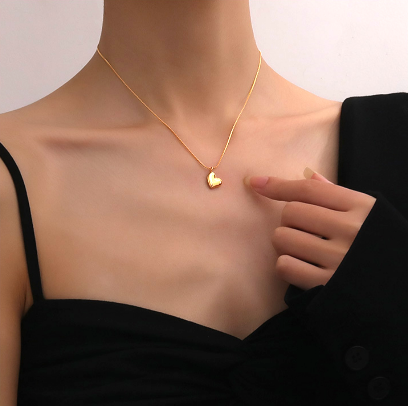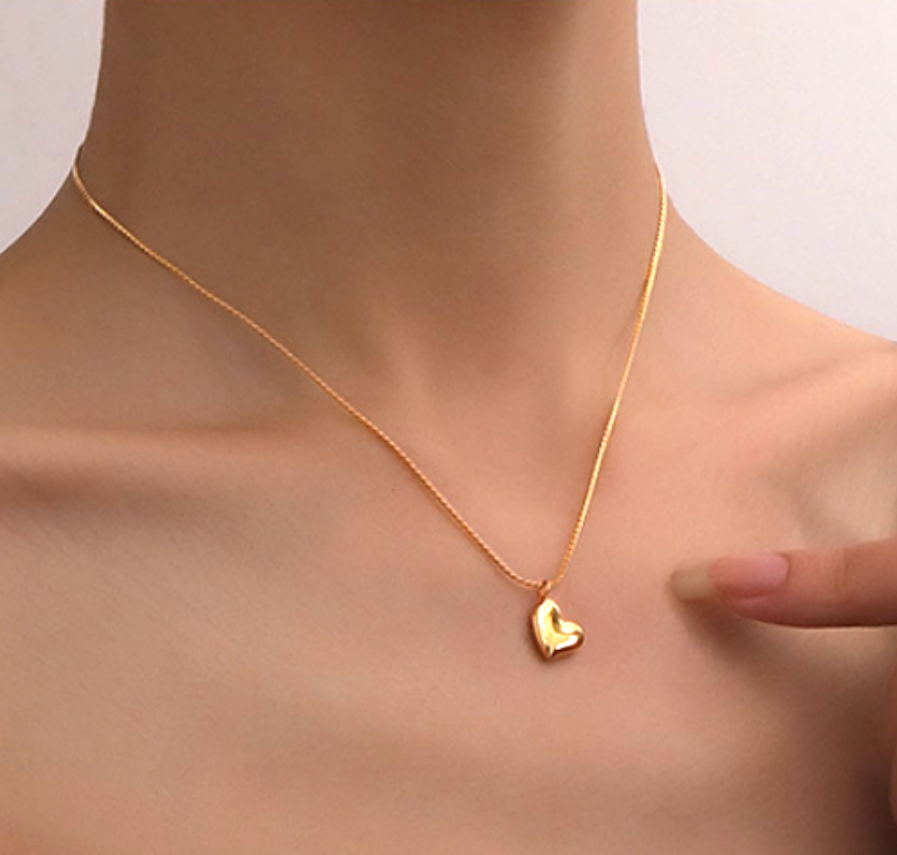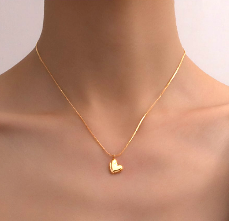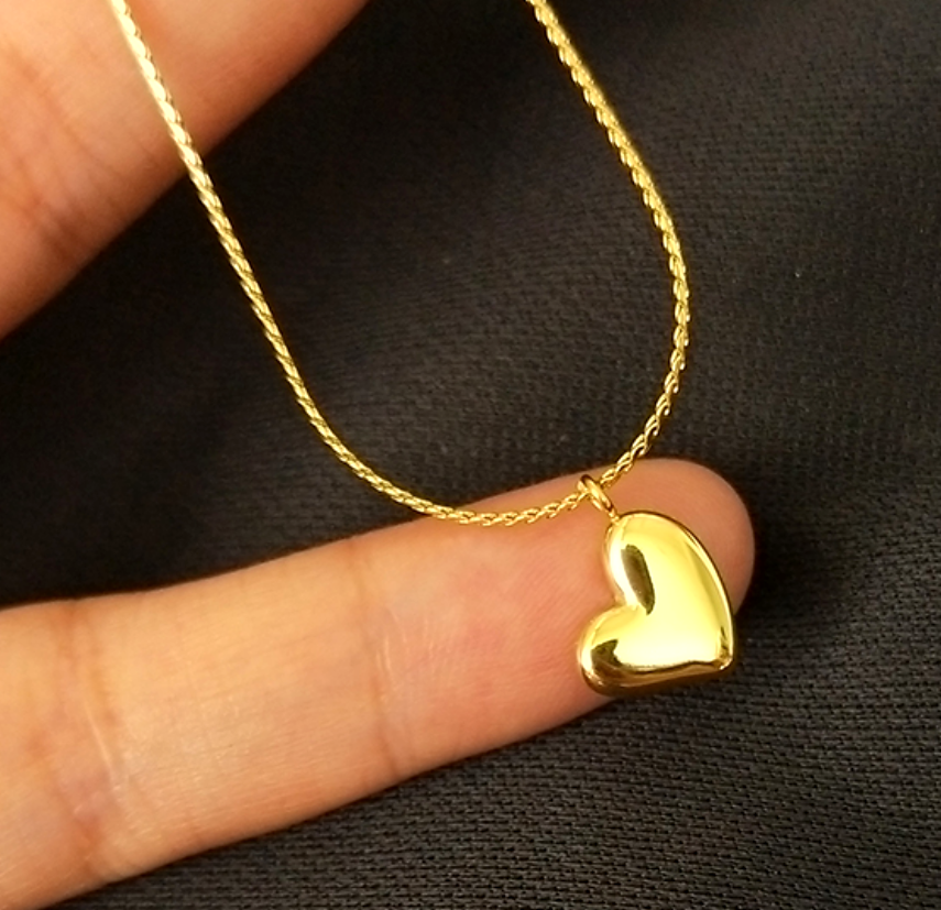 Stunning Unique Highly Polished 18K Gold Necklace Tiny Heart Pendant Y2K 90s Party Birthstone Celebrity Hottest Style Amazing