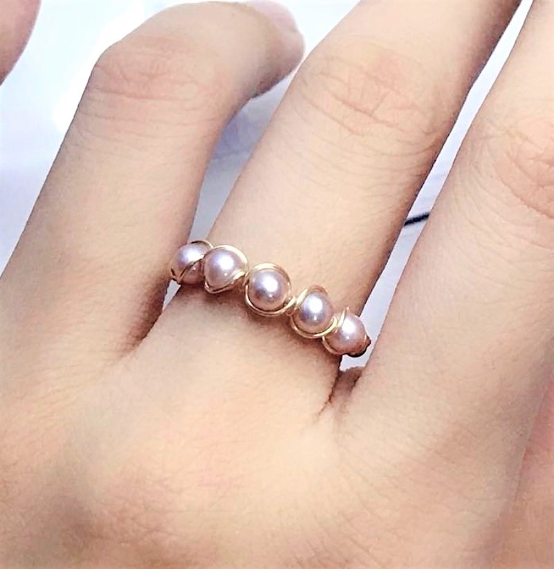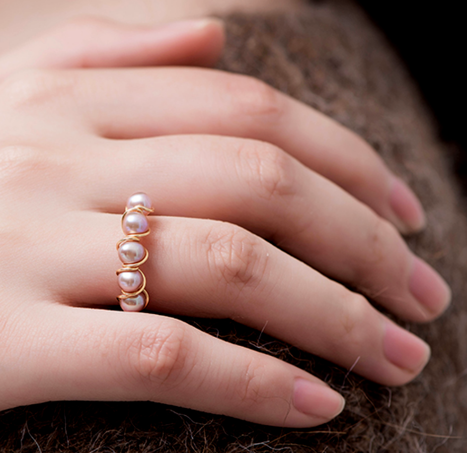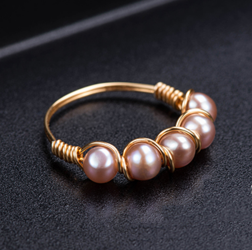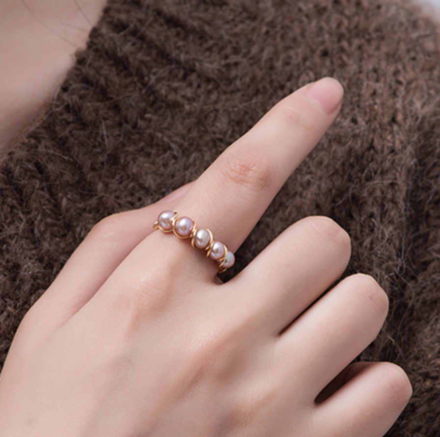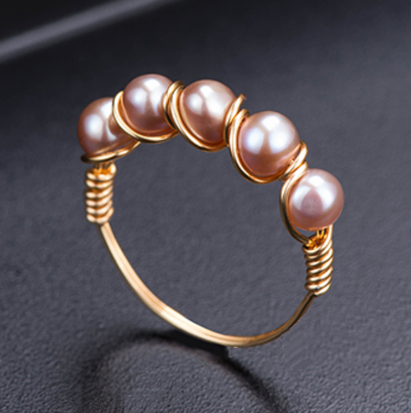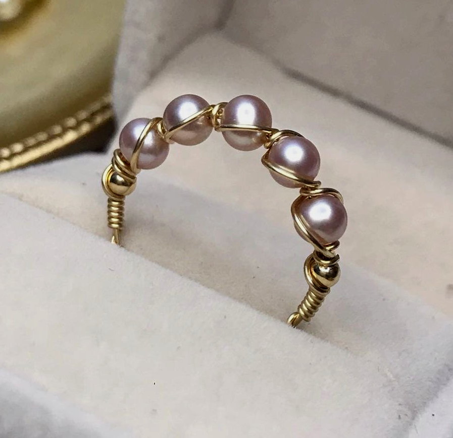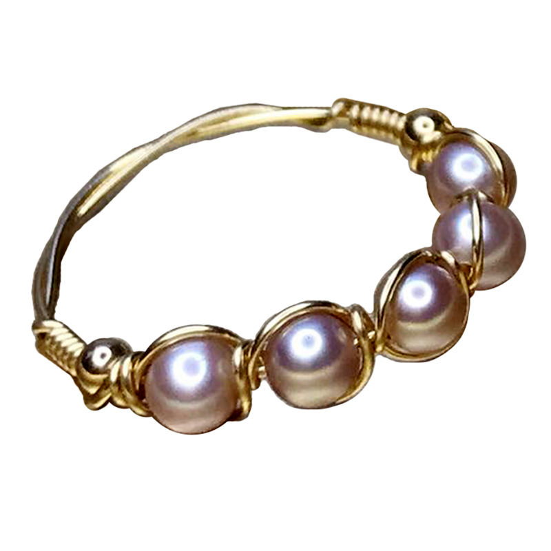 Stunning Handcrafted 14K Gold Tiny Natural Fresh Water Pearls Ring Fine Jewelry Party Event Birthday Super Gift Amazing