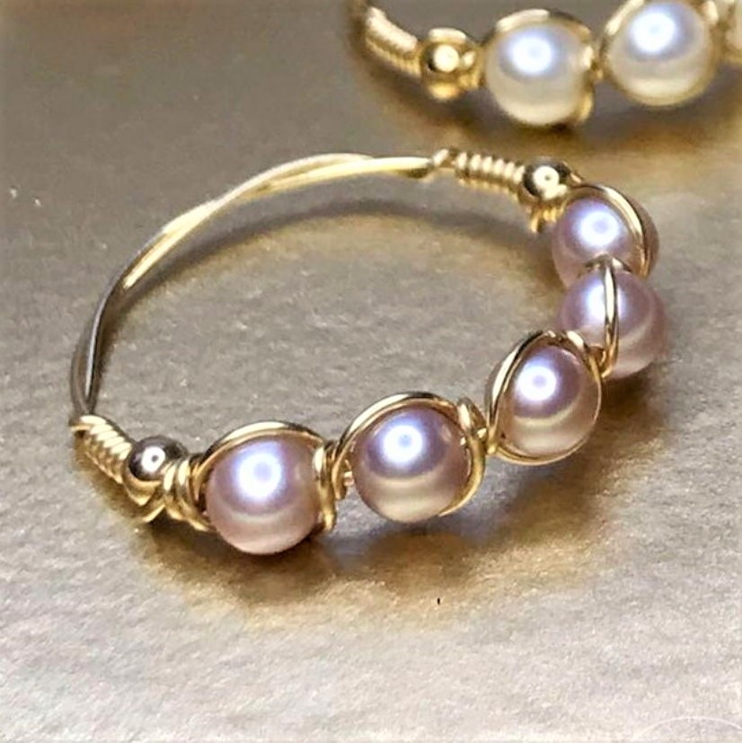 Vintage Handcrafted Natural Pearls 14K Gold Tiny Wired Ring Fine Jewelry Y2K 90s Party Birthday Super Gift Amazing