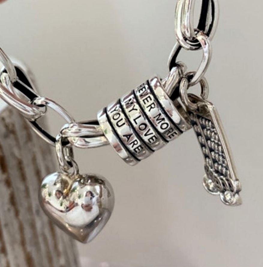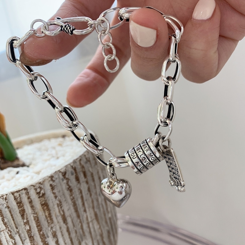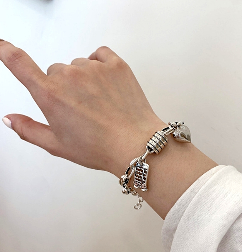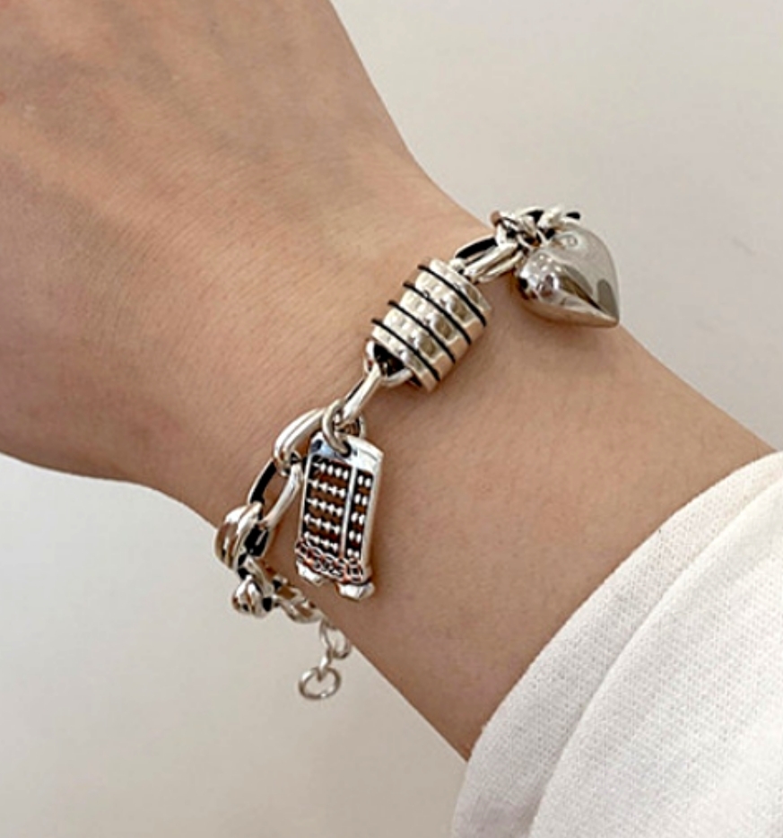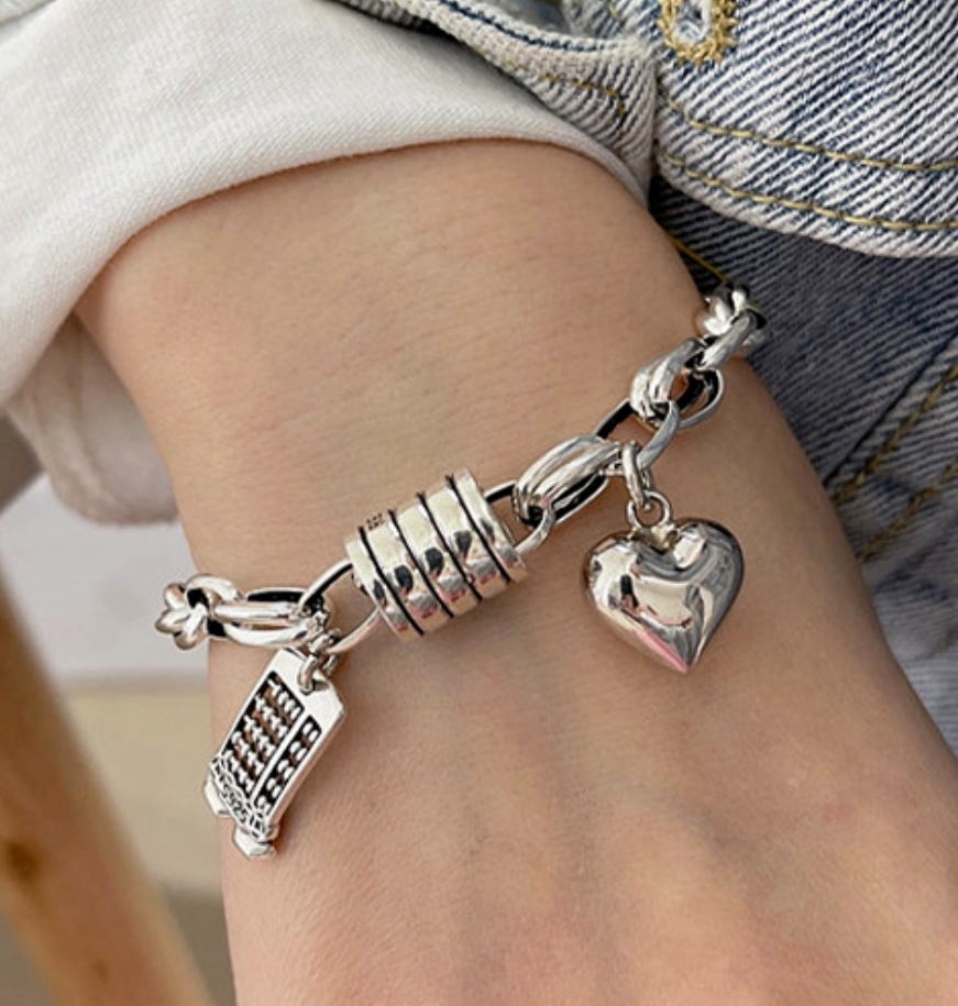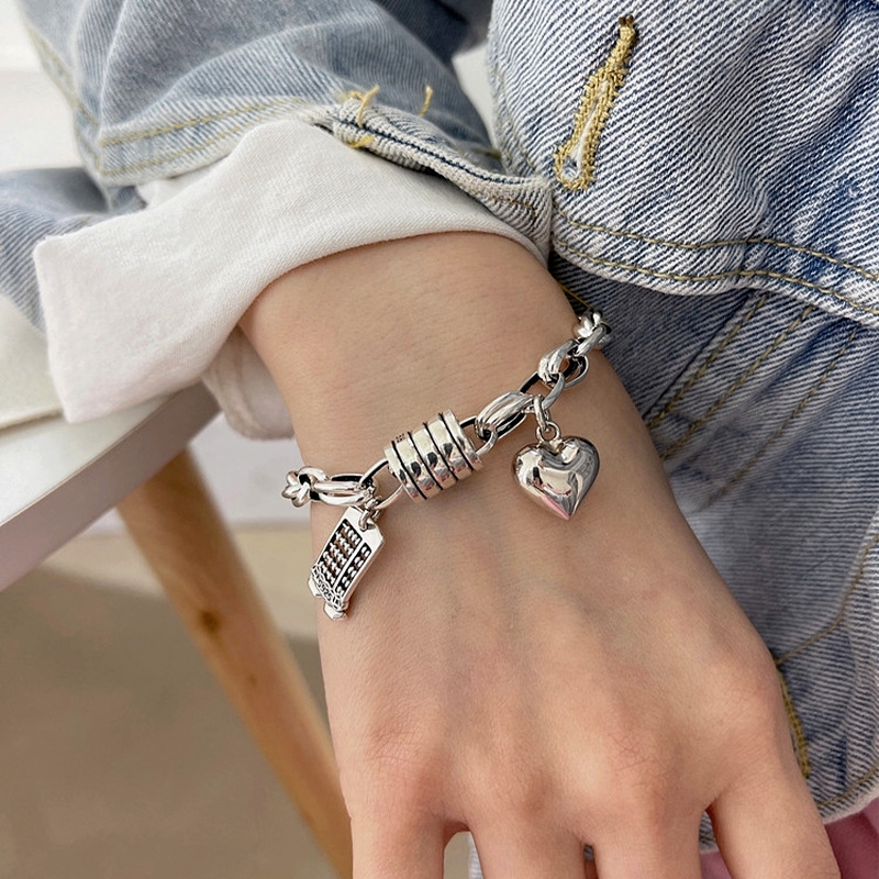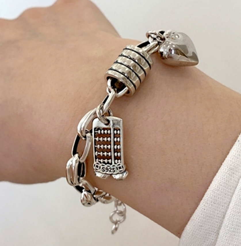 Stunning Retro Abacus Calculator Heart Charming Ornaments 925 Silver Bracelet 90s Y2K Party Dancing Occasion Streetwear Amazing