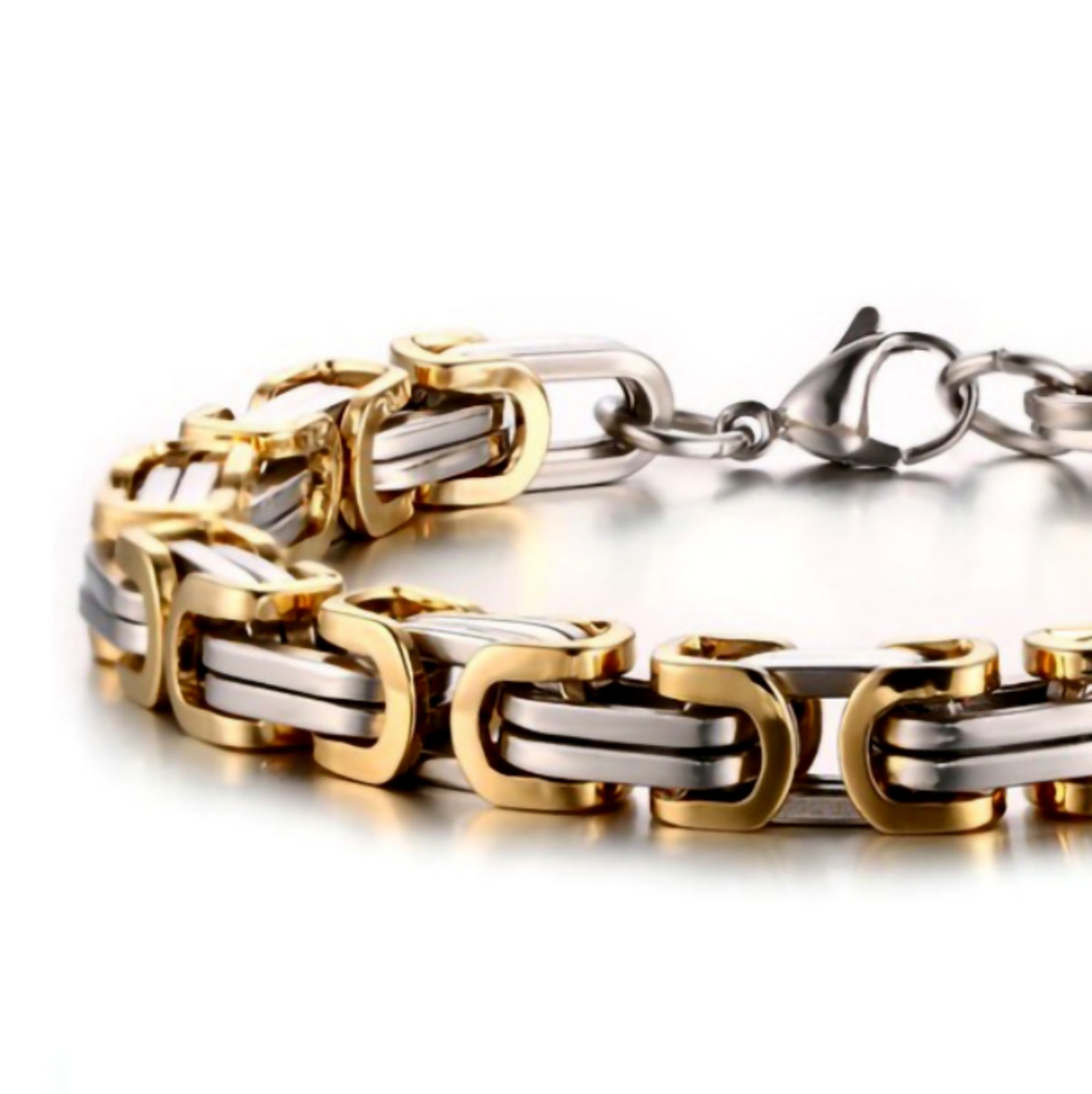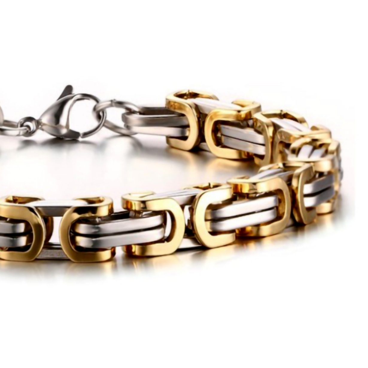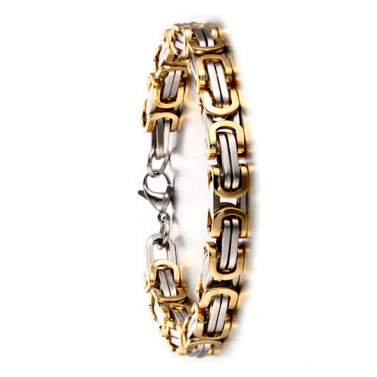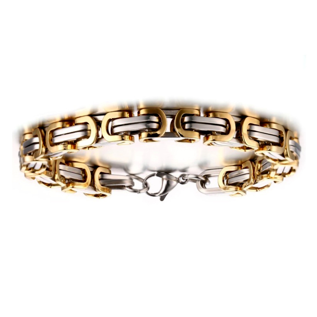Punk Silver Skeleton Links Contrast Gold Silver Stainless Steel Bracelet~RARE