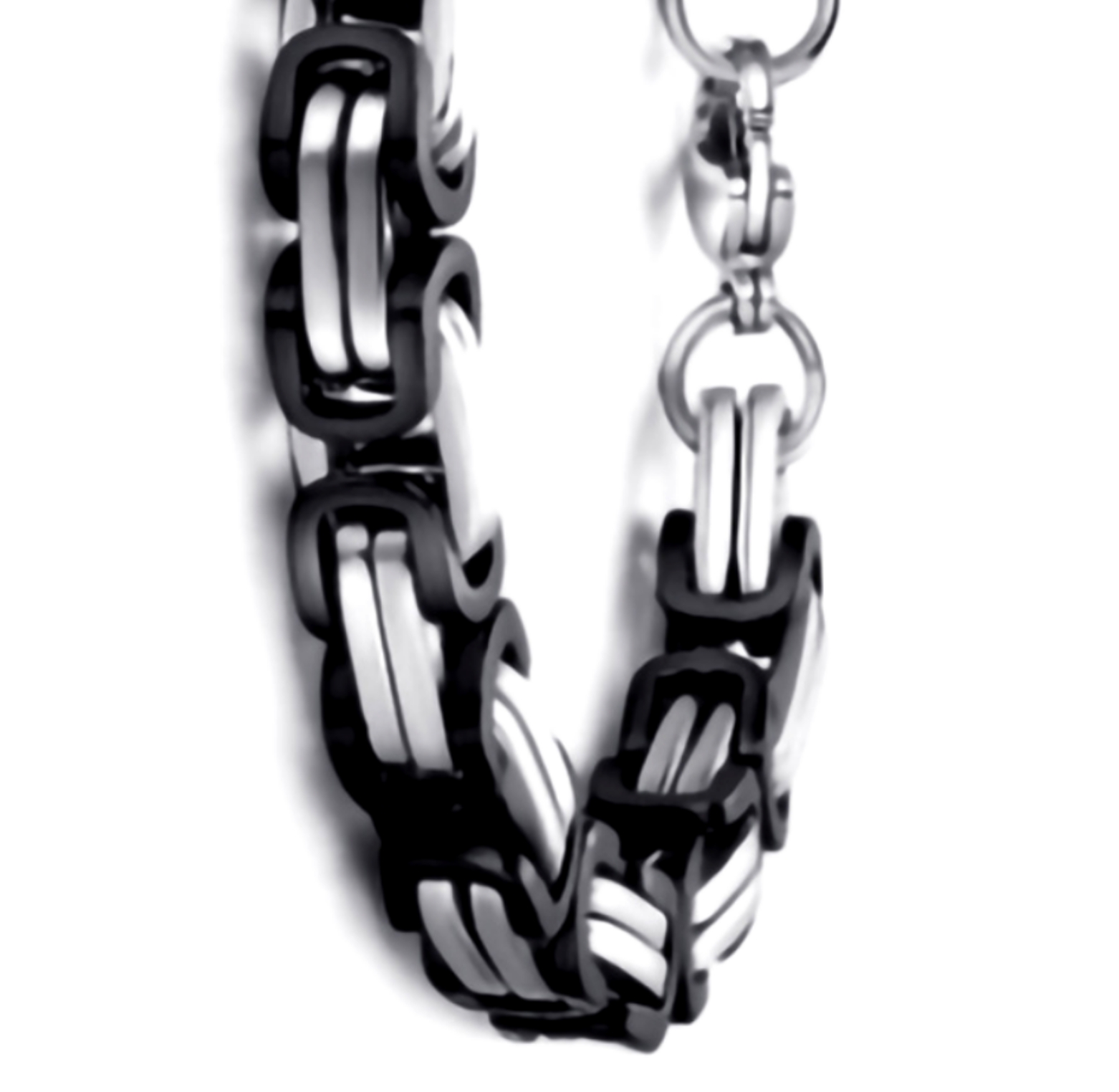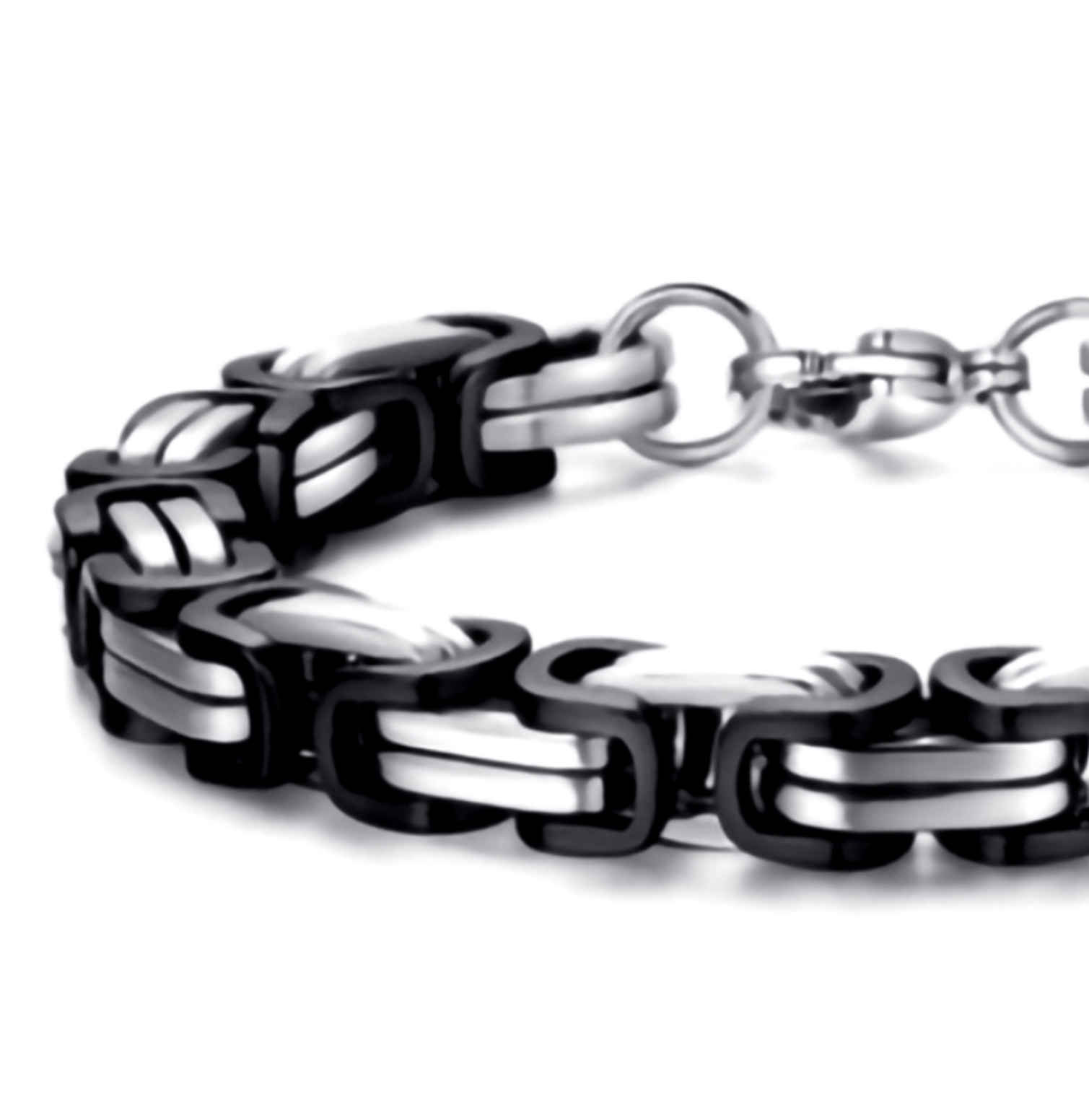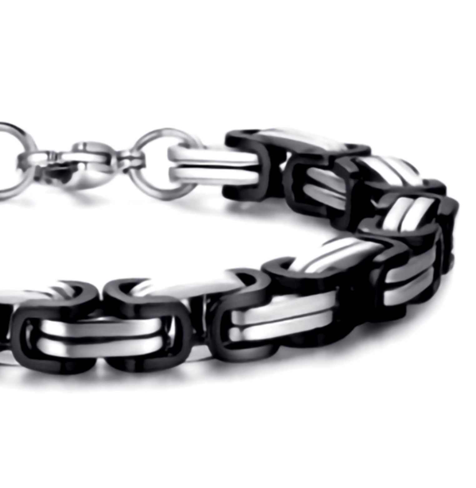 Punk Silver Skeleton Links Contrast Black Silver Stainless Steel Bracelet~RARE