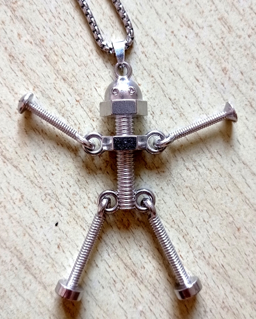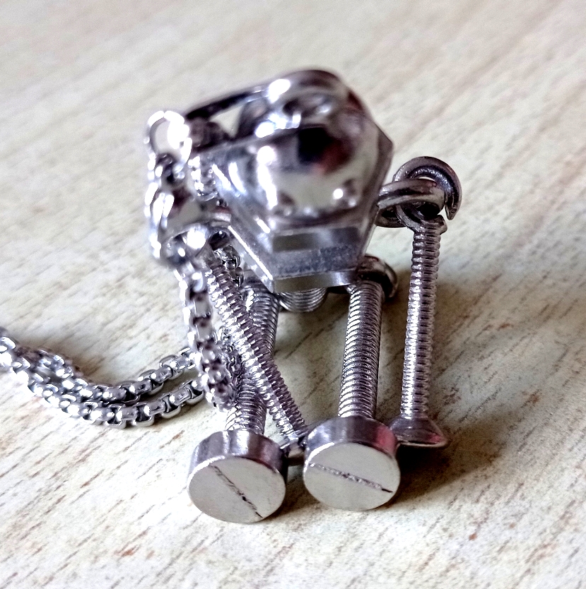 Punk Gothic Screw Robot Stainless Steel Silver Necklace Unique Rare For Men And Women Amazing