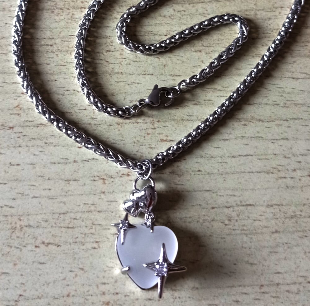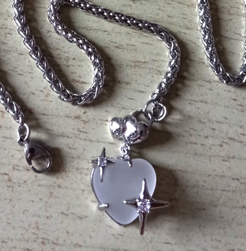 Punk Cute Tiny Heart Galaxy Studded Zircon Gems Silver Necklace Y2K Streetwear Handmade For Women And Men Unique Amazing