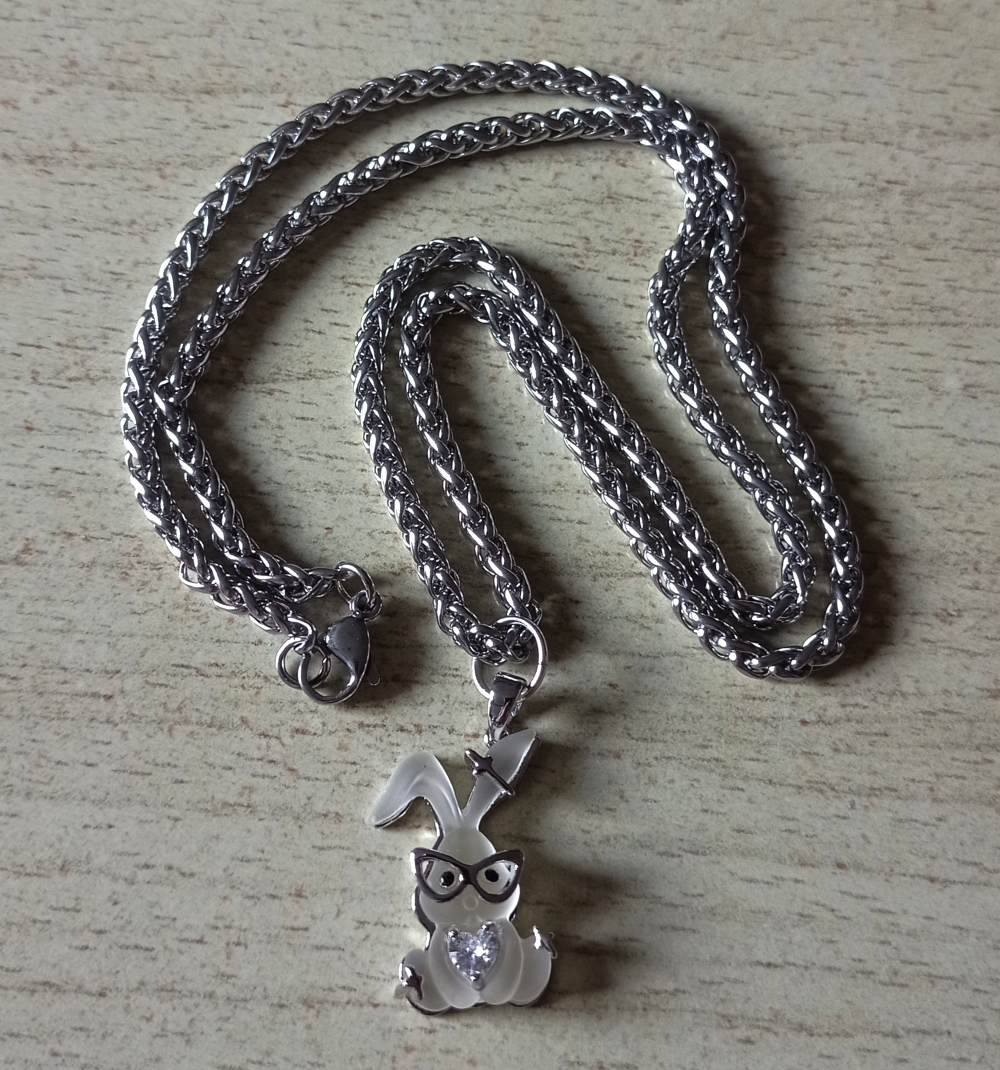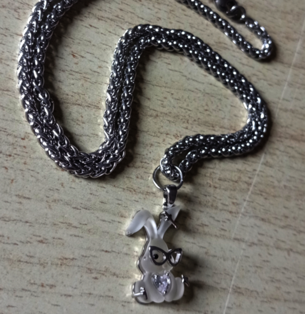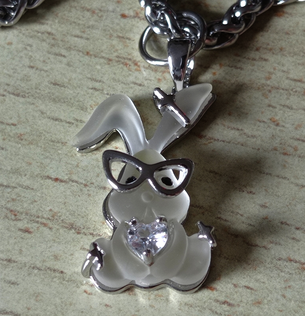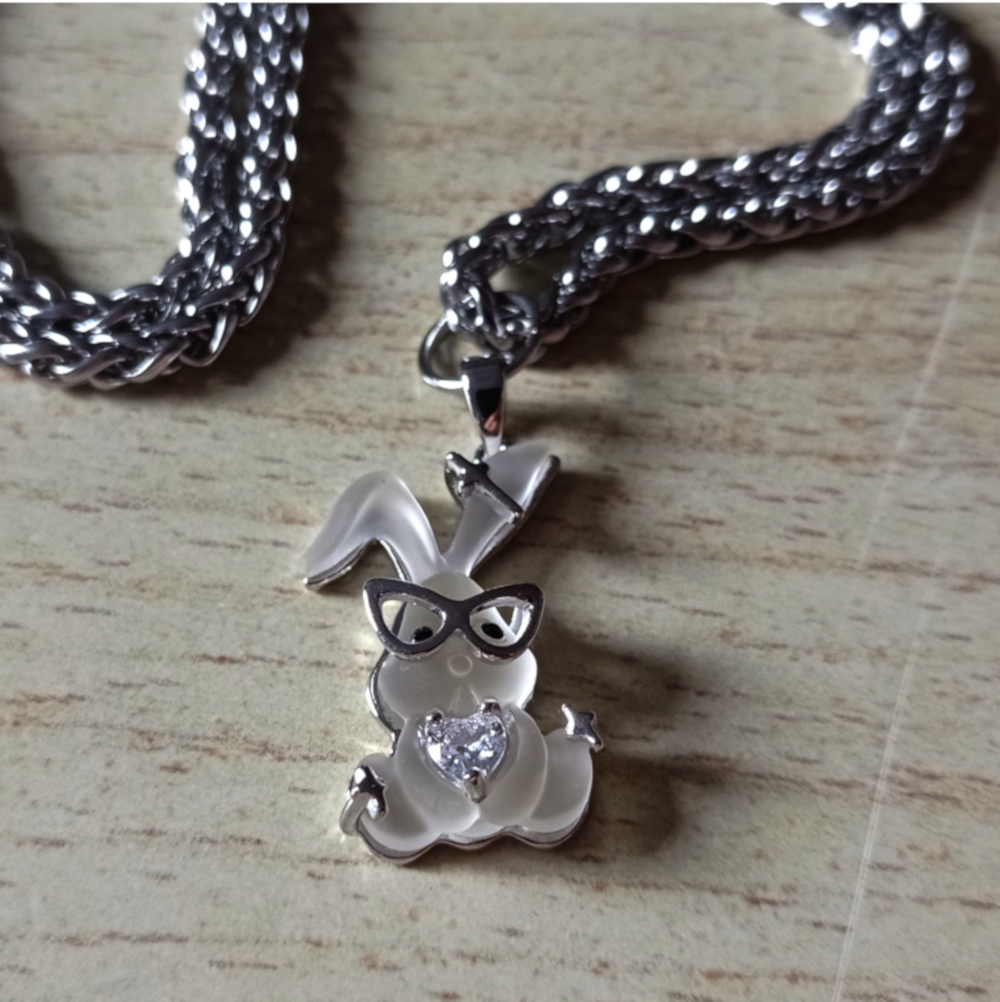 Punk Cute Tiny Bunny Studded Zircon Heart Gems With Glasses Silver Necklace Y2K Streetwear Handmade For Women And Men Unique Amazing