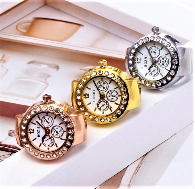 Glitter Imitation Diamonds 3-Eye Sparkle Wheel Finger Ring Watch Perfect Cute Gifts Y2K Party Occasion Popular Trend Amazing