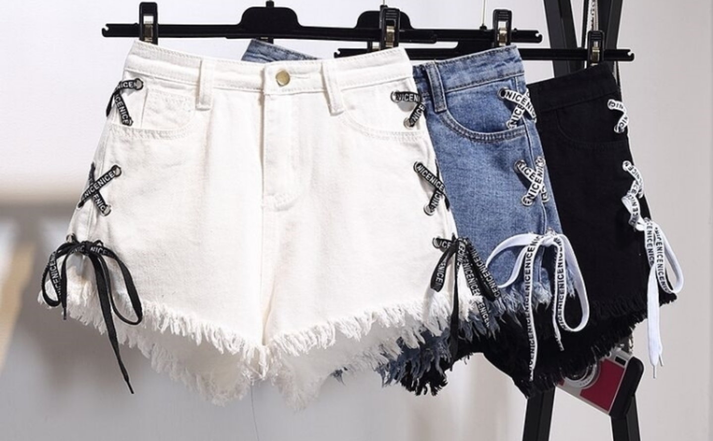Hot Pants, Women Strap Bowtie Frayed Tassels Shorts