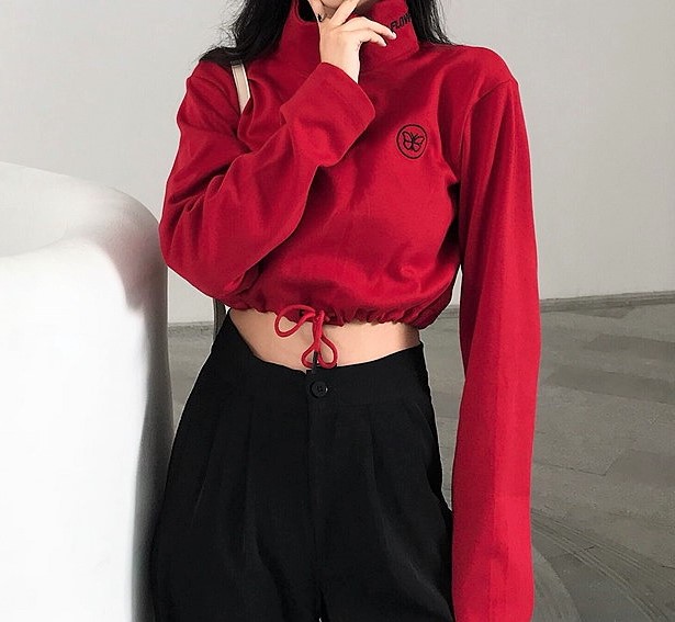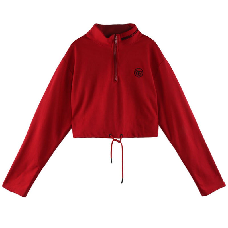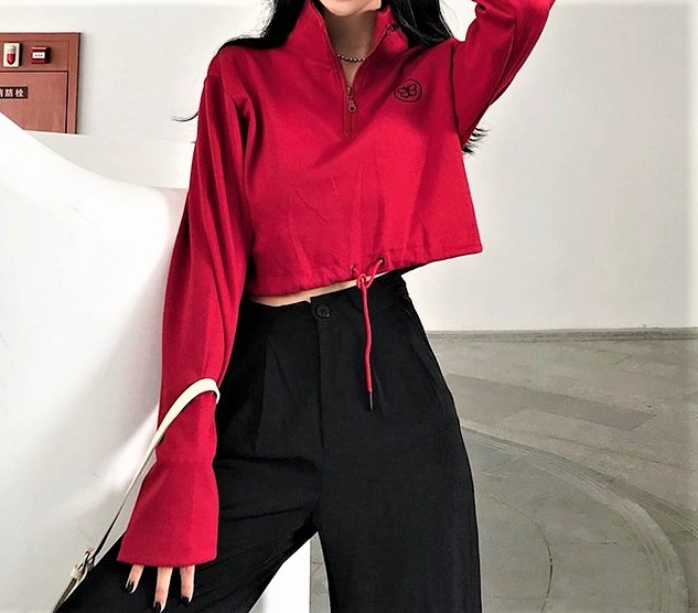 Streetwear Harajuku Zipper Loose Drawstring Hem Long Sleeve Crop Top Pullovers 90s Y2K Party Nightclub Dating Occasion Amazing