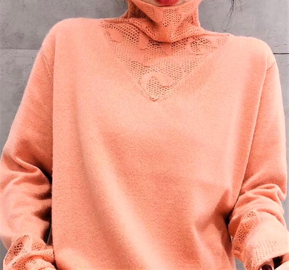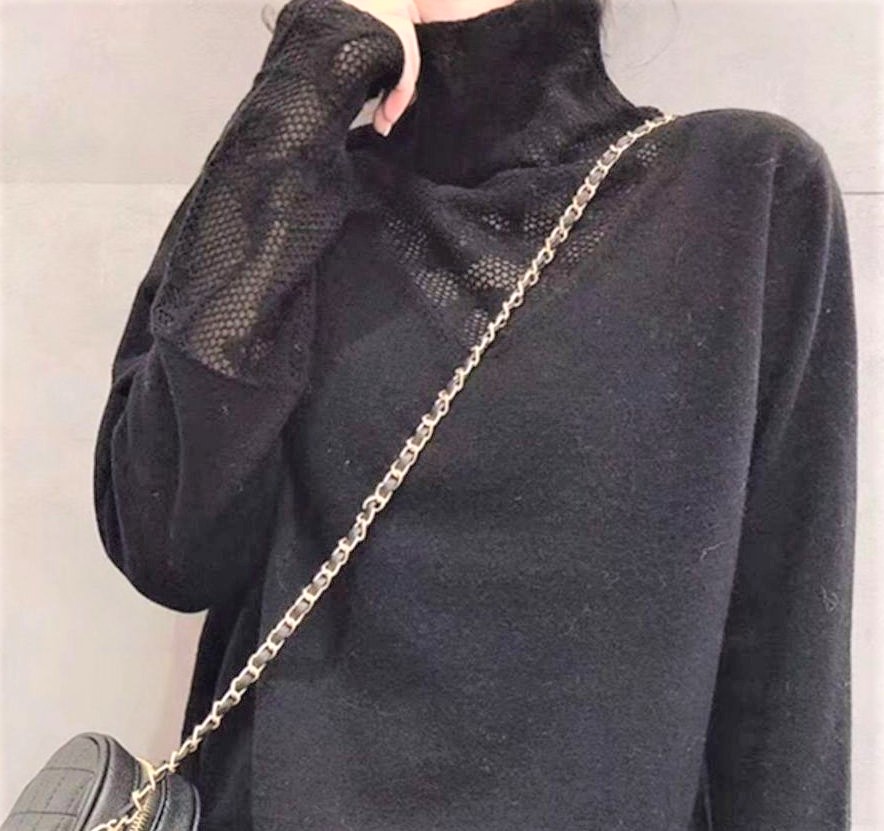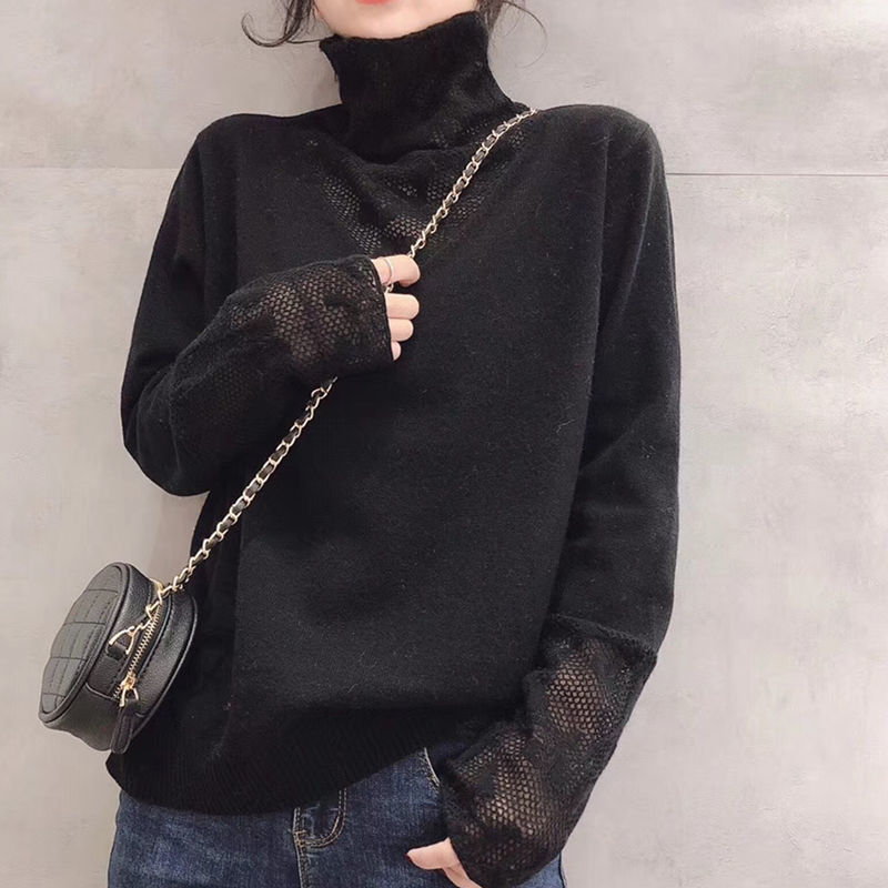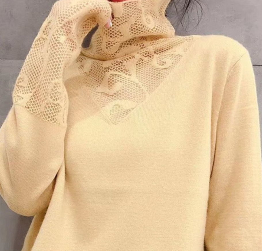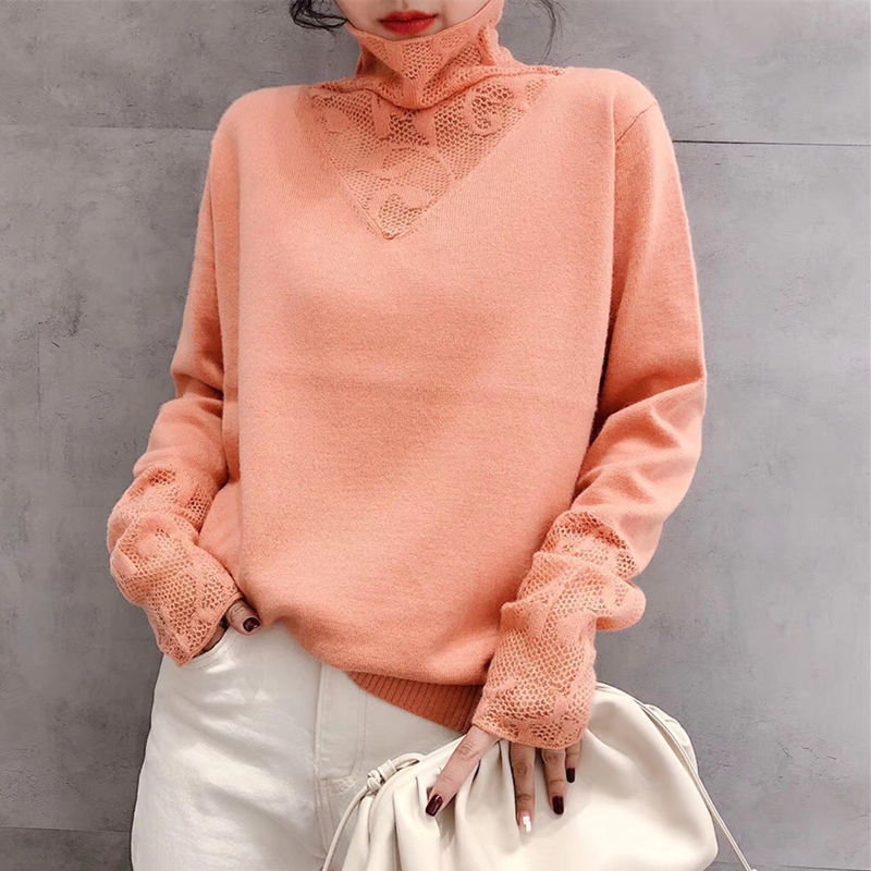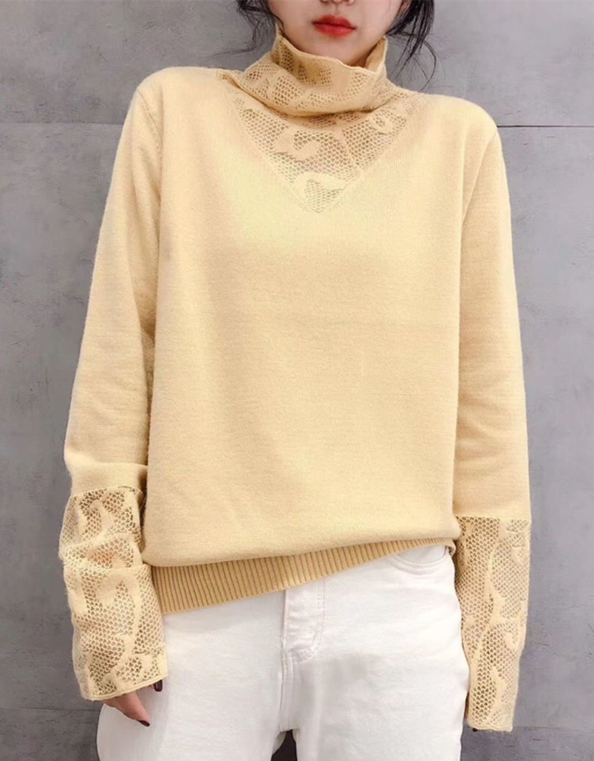 Vintage Crocheted Floral Hollow Knitted Blouse Embroidery Turtle Neck Cuff Loose Pullover