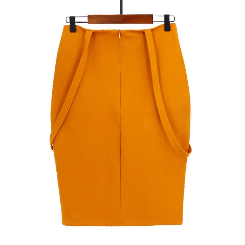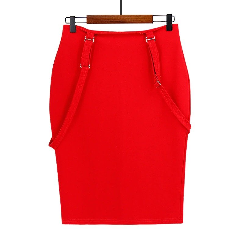 Vintage Pencil High Waist Shoulder Straps Suspender Bodycon Skirt