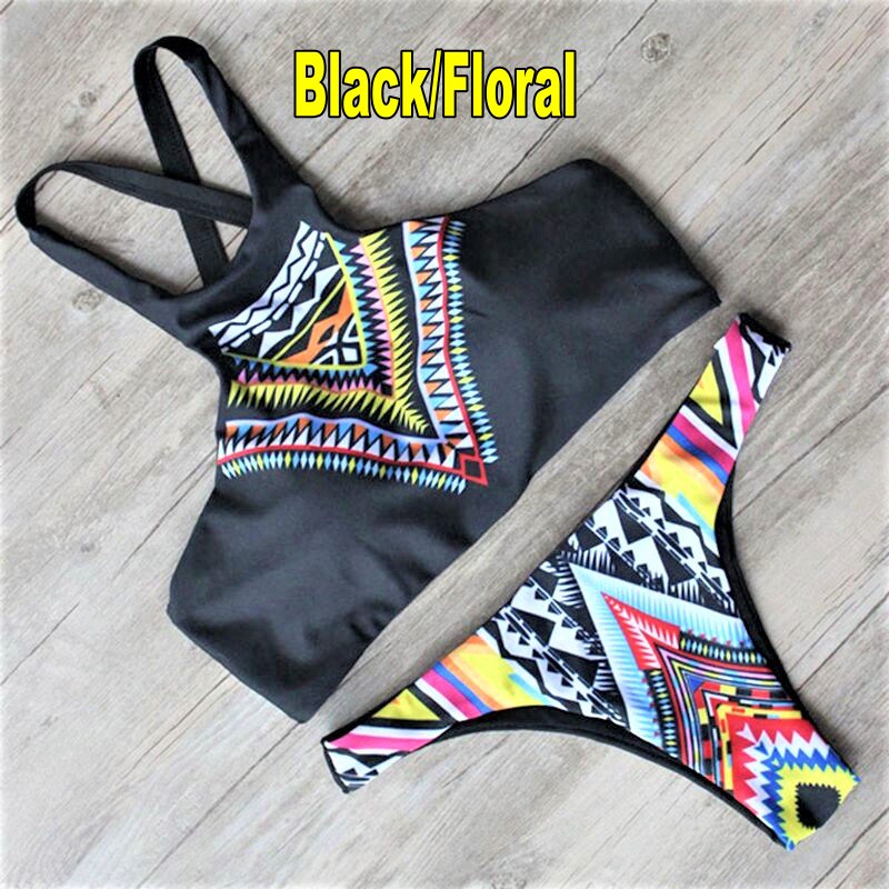 Sexy Black Floral Monokini Brazilian Print Padded Push Up Bikini Swimsuit 90s Y2K Popular Bikini Style Amazing