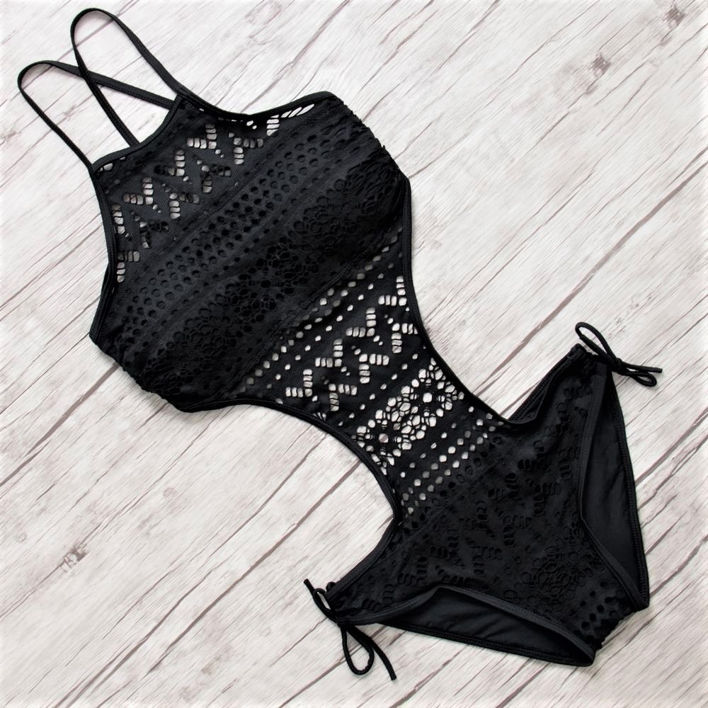 Sexy One-piece Blackless Floral Hollow Beachwear Brazilian Padded Push Up Bikini Swimsuit 90s Y2K Popular Bikini Style Amazing .