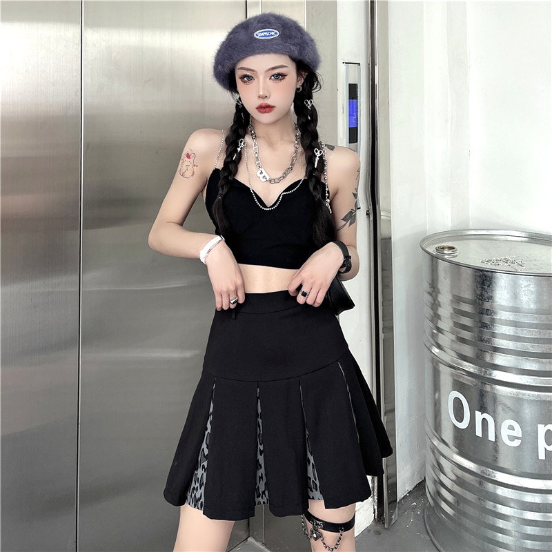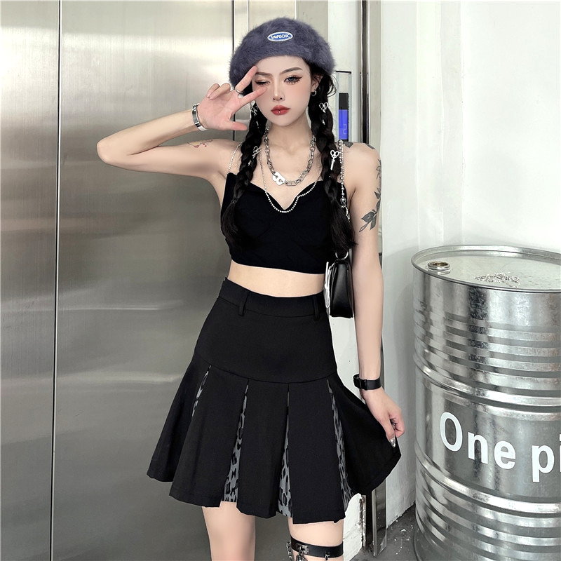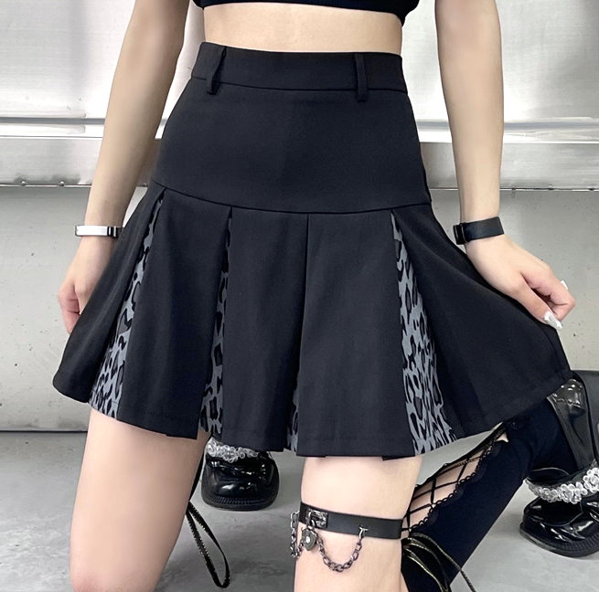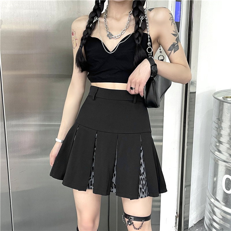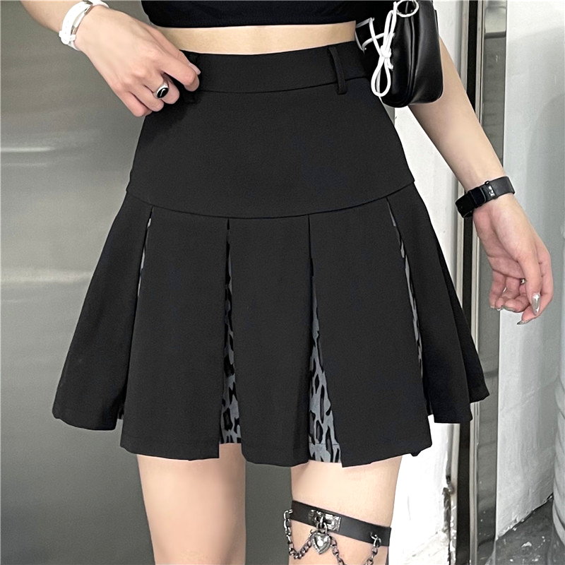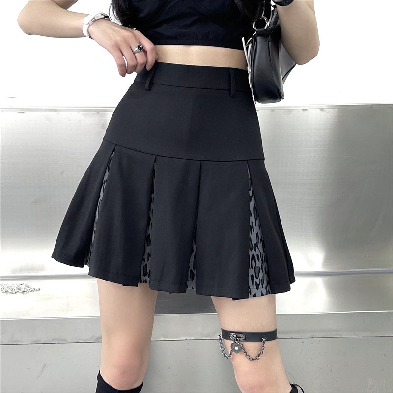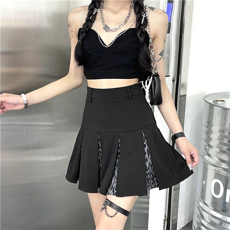 Black Gothic Harajuku Sexy Punk Patchwork Peeped Prints High Waist Women Mini Pleated Skirt 90s Y2K Streetwear Party Occasion Nightclub Amazing