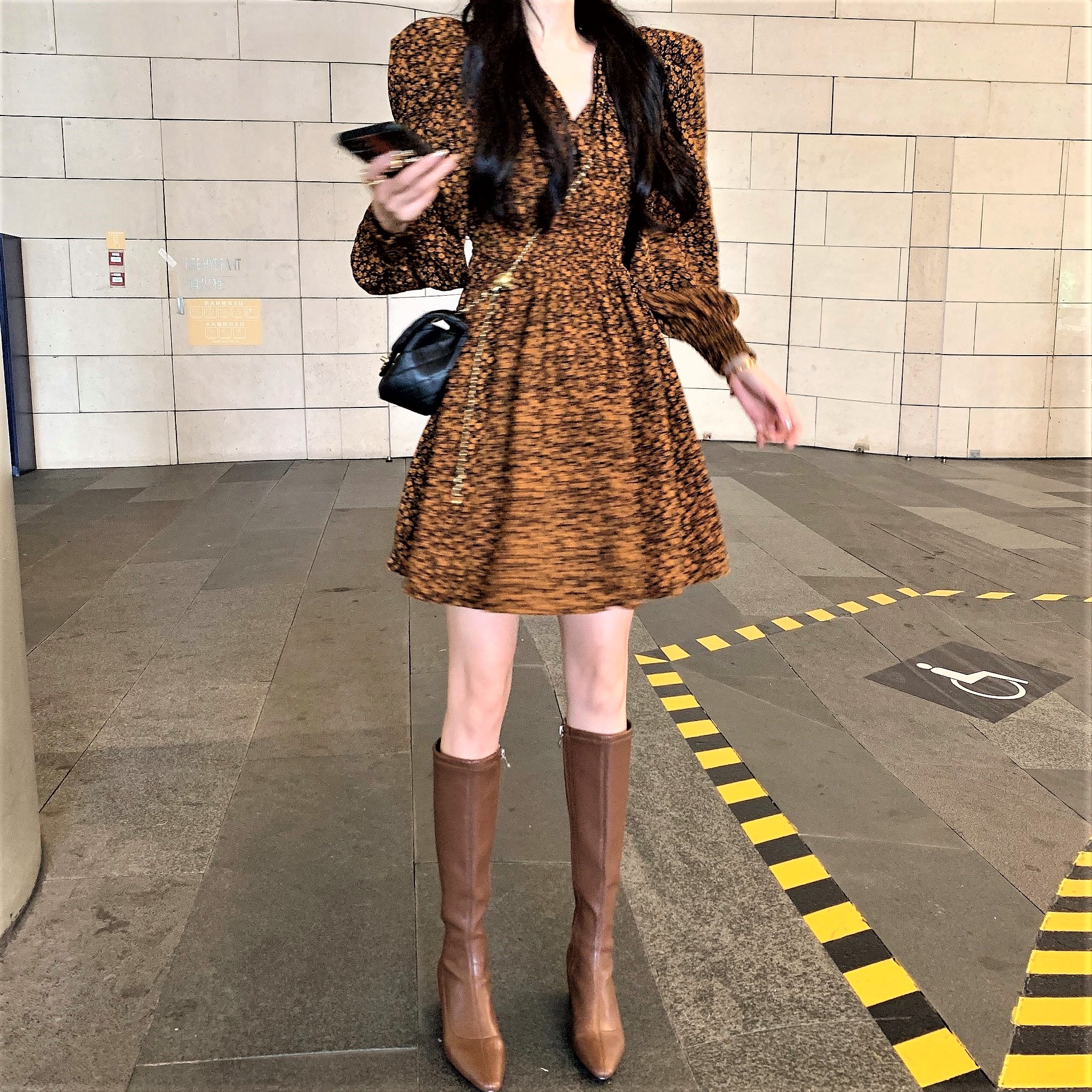 Unique Vintage French Chiffon Ruffle Floral Puffy Sleeve Ruched Dress 90s Y2K Party Nightclub Dating Occasion Amazing
