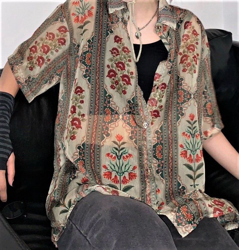 Vintage Retro French Paisley Floral Mesh Short Sleeves Collar Buttoning Closure Flattering Loose Blouse