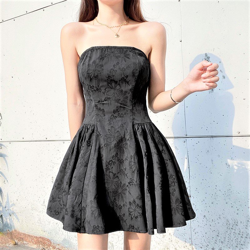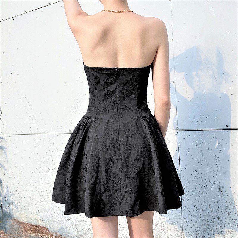 Vintage Italian Stylish Ruffle Paisley Floral Embroidery Bustier Neckline Evening Ruched Dress