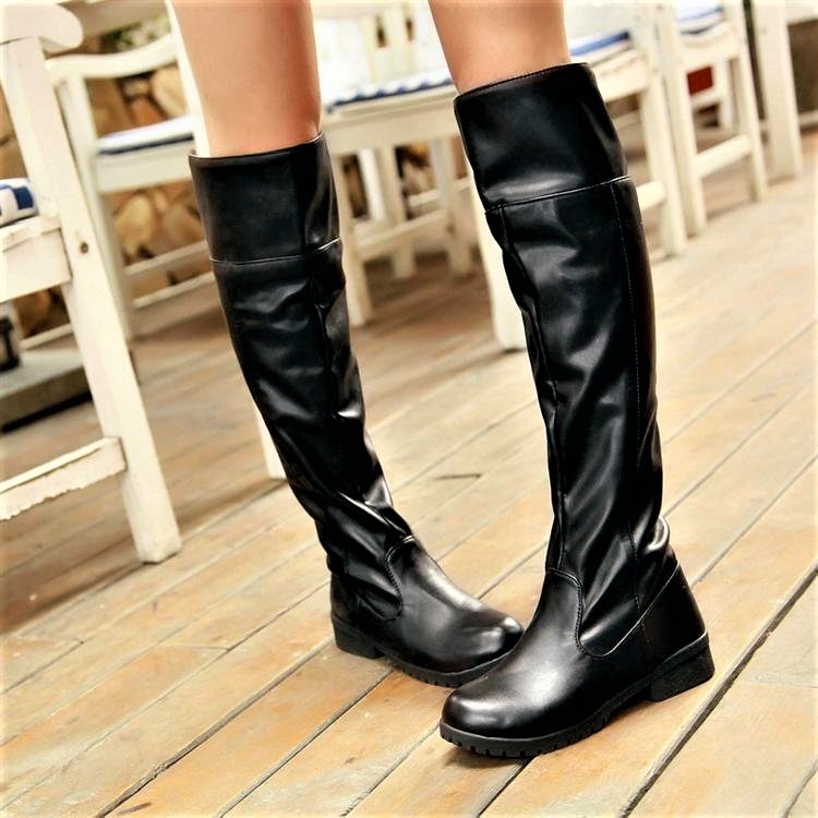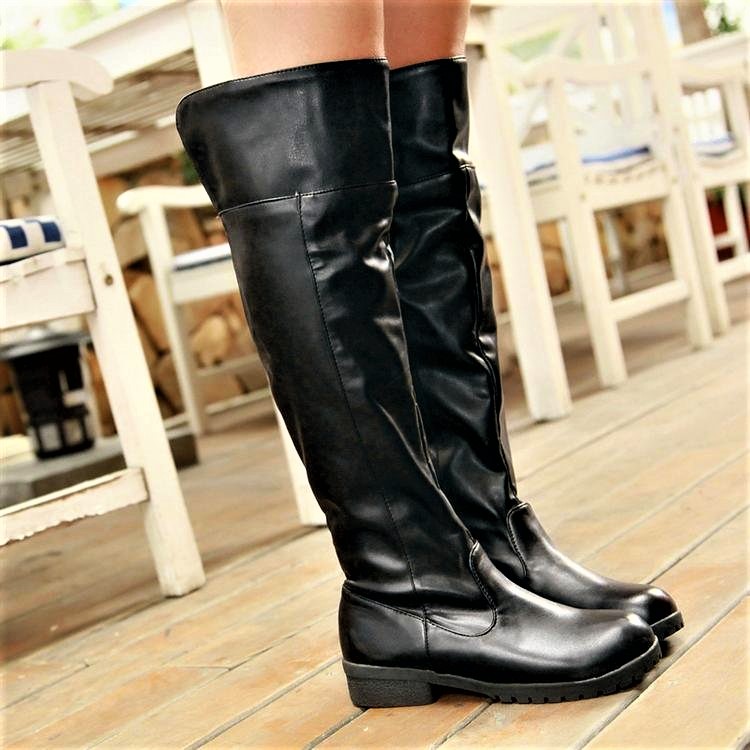 Vintage Motorcycle Leather Block Heels Anti Slip Knee Top Long Boot Party Occasion Nightclub Event Awesome