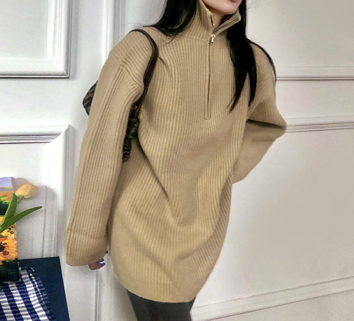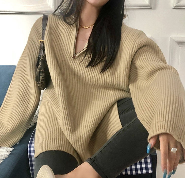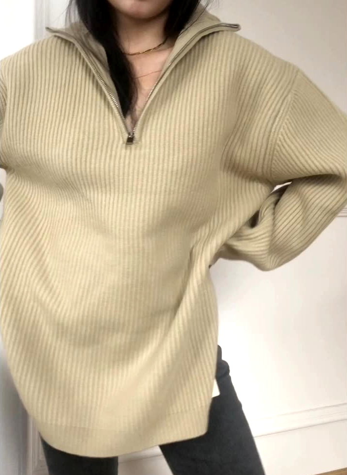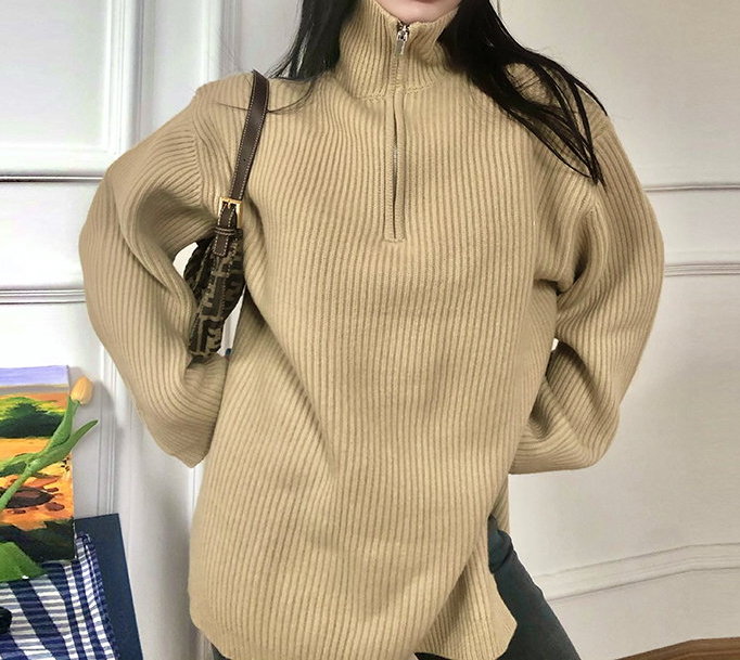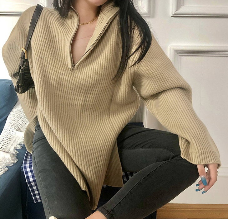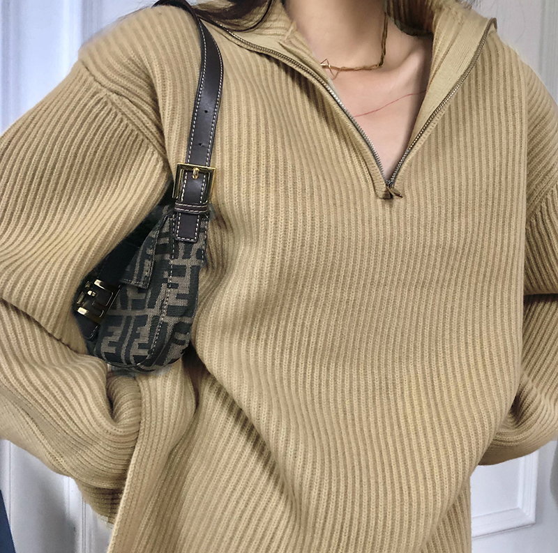 Simple Vintage Stripe Ribbed Knit Zipper Neck Oversized Sweater Jumper Pullover Top 2000s Y2K Amazing