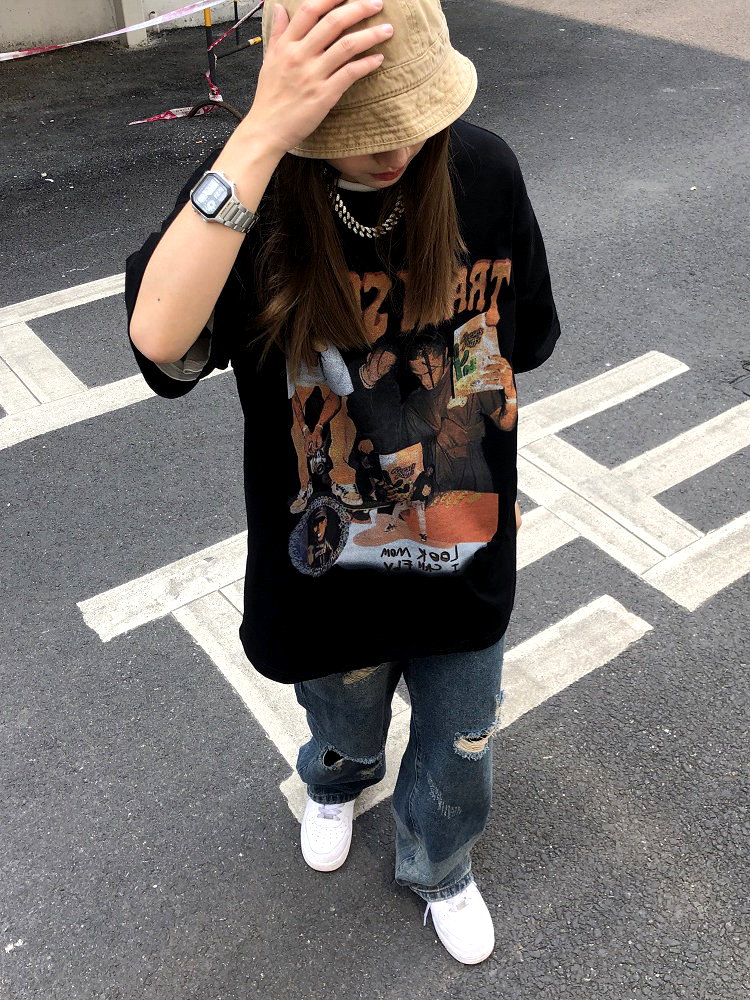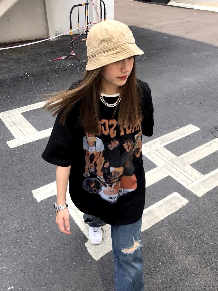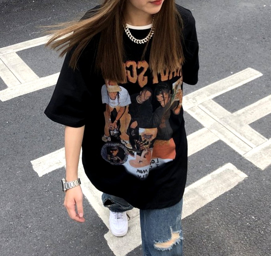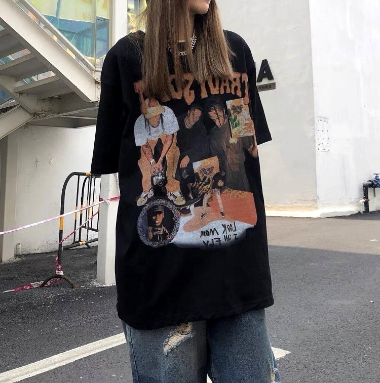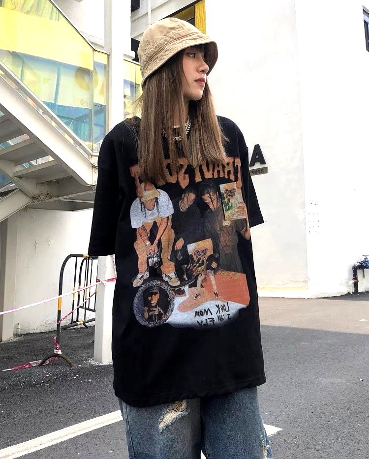 Retro Harajuku Punk Portrait Prints Short Sleeve Oversize Hip Hop Tee Tops
