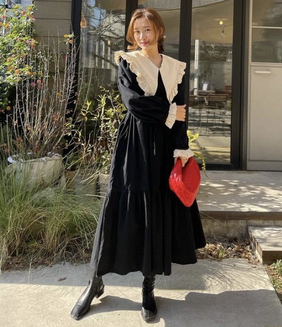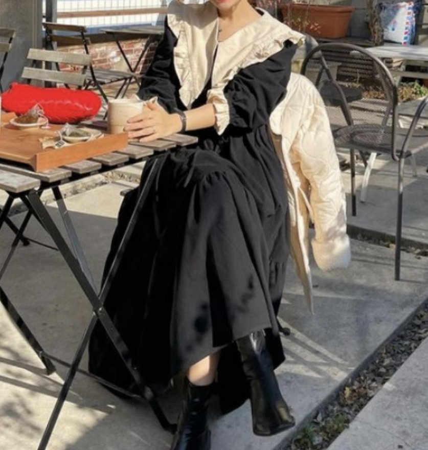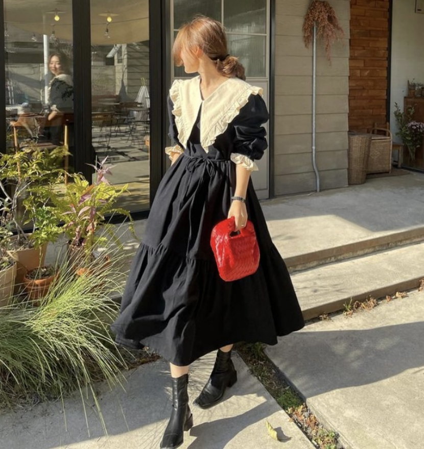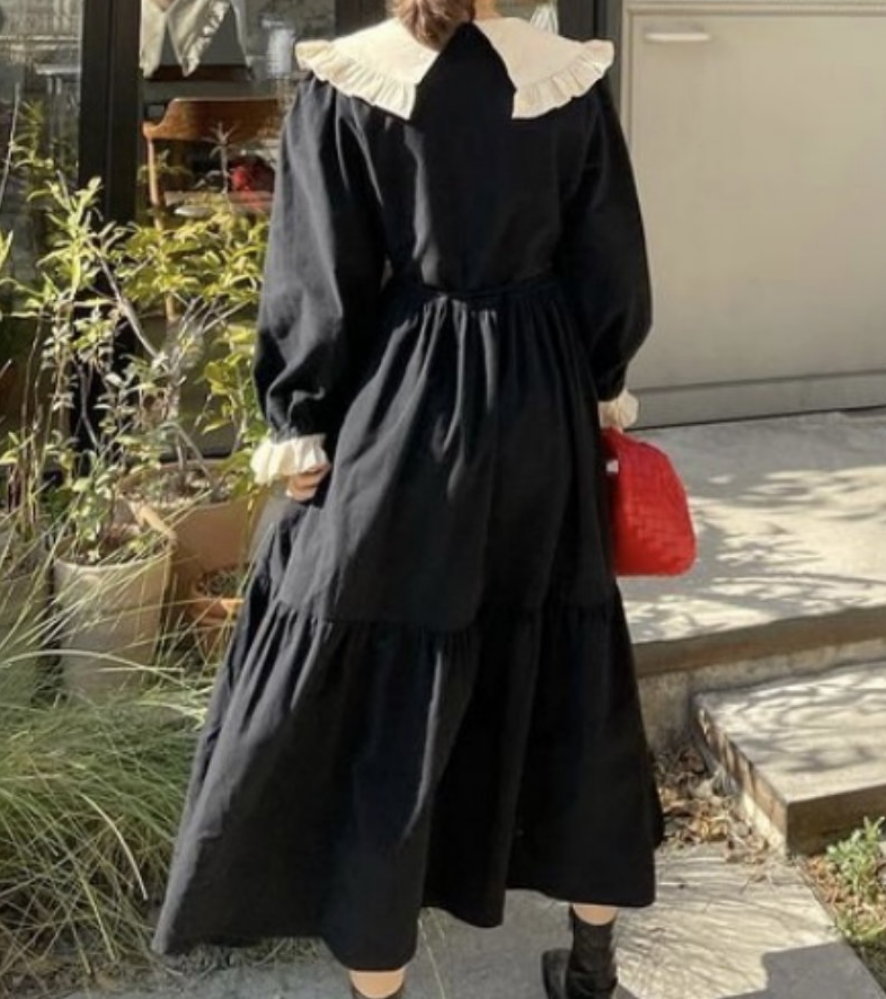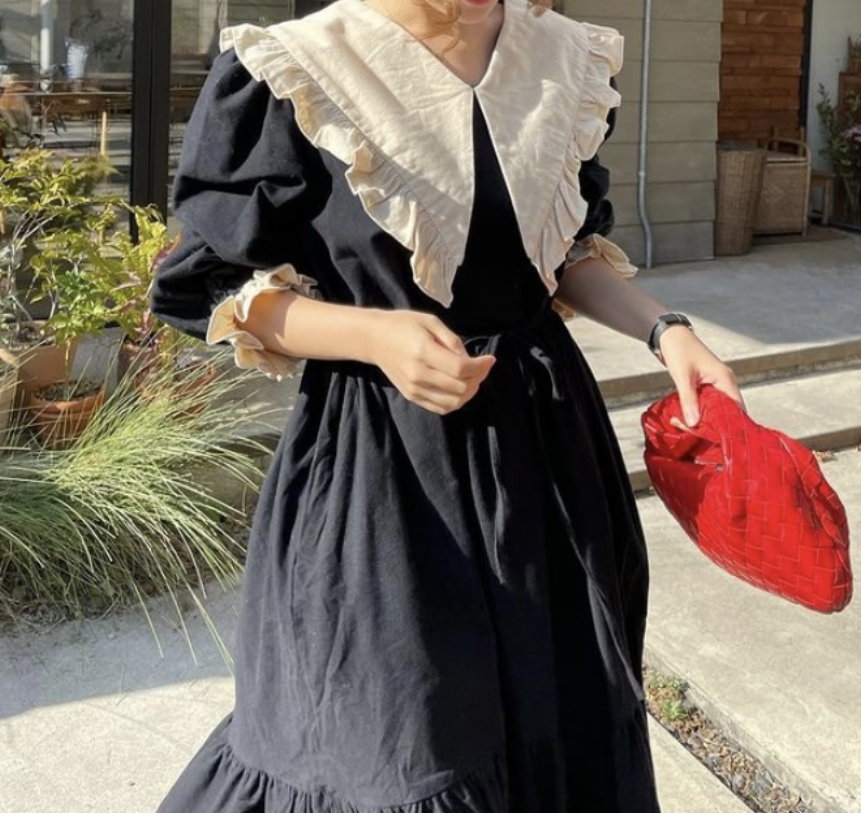 Vintage French Retro Ruffle V Neck Puffy Lantern Sleeves Oversize Elegant Princess Dress