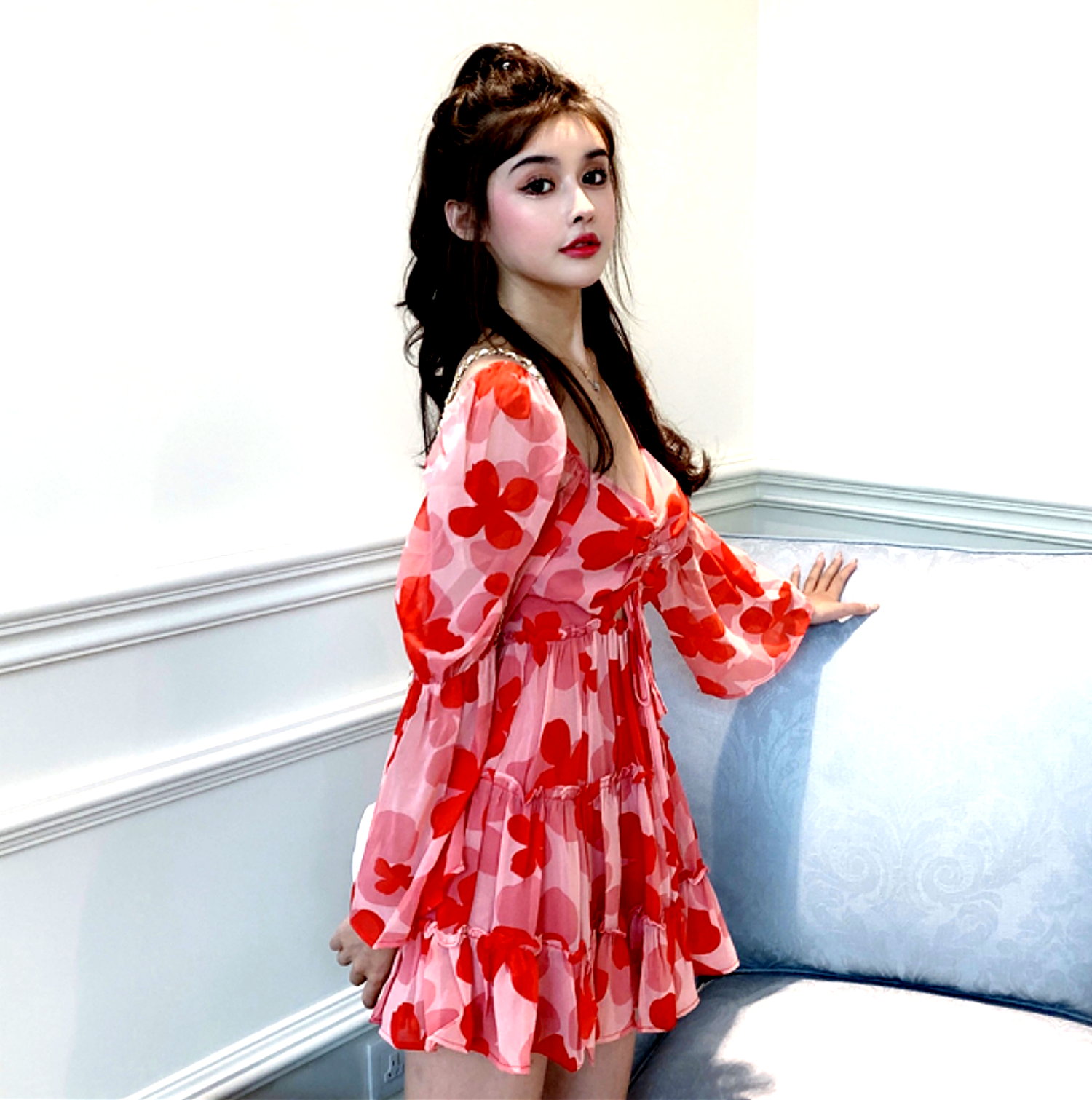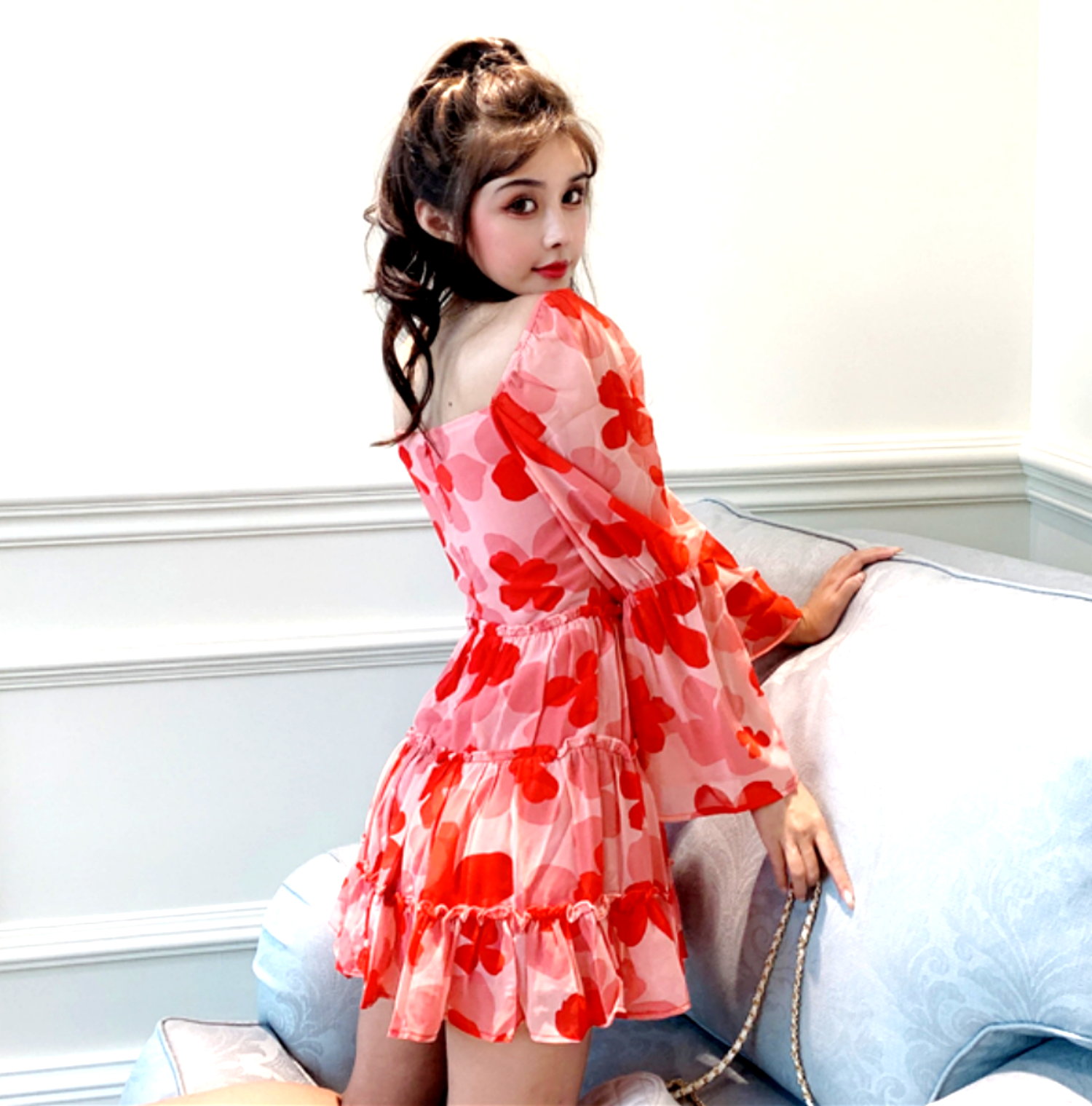 Vintage Adorable Prom Chiffon Lantern Puffy Flare Sleeve Ruched Ruffle Dress Y2K Streetwear Party Prom Event Coolest Style Amazing