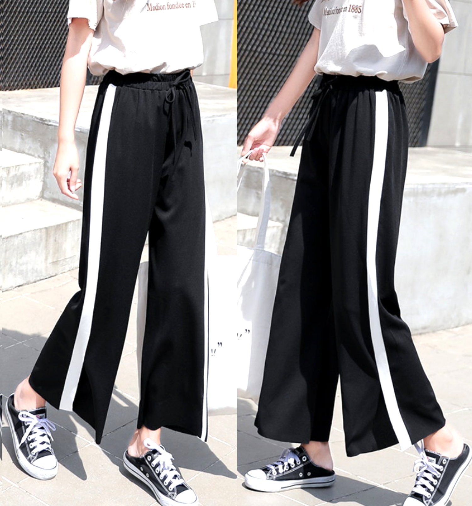 Vintage Punk Baggy Hippie Pants Wide Stripe Patchwork Wide Leg Flattering Loose Fit Trousers
