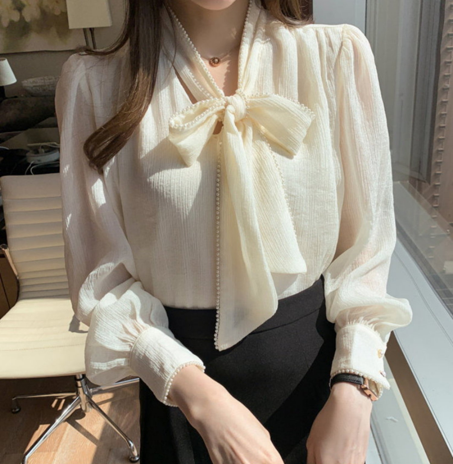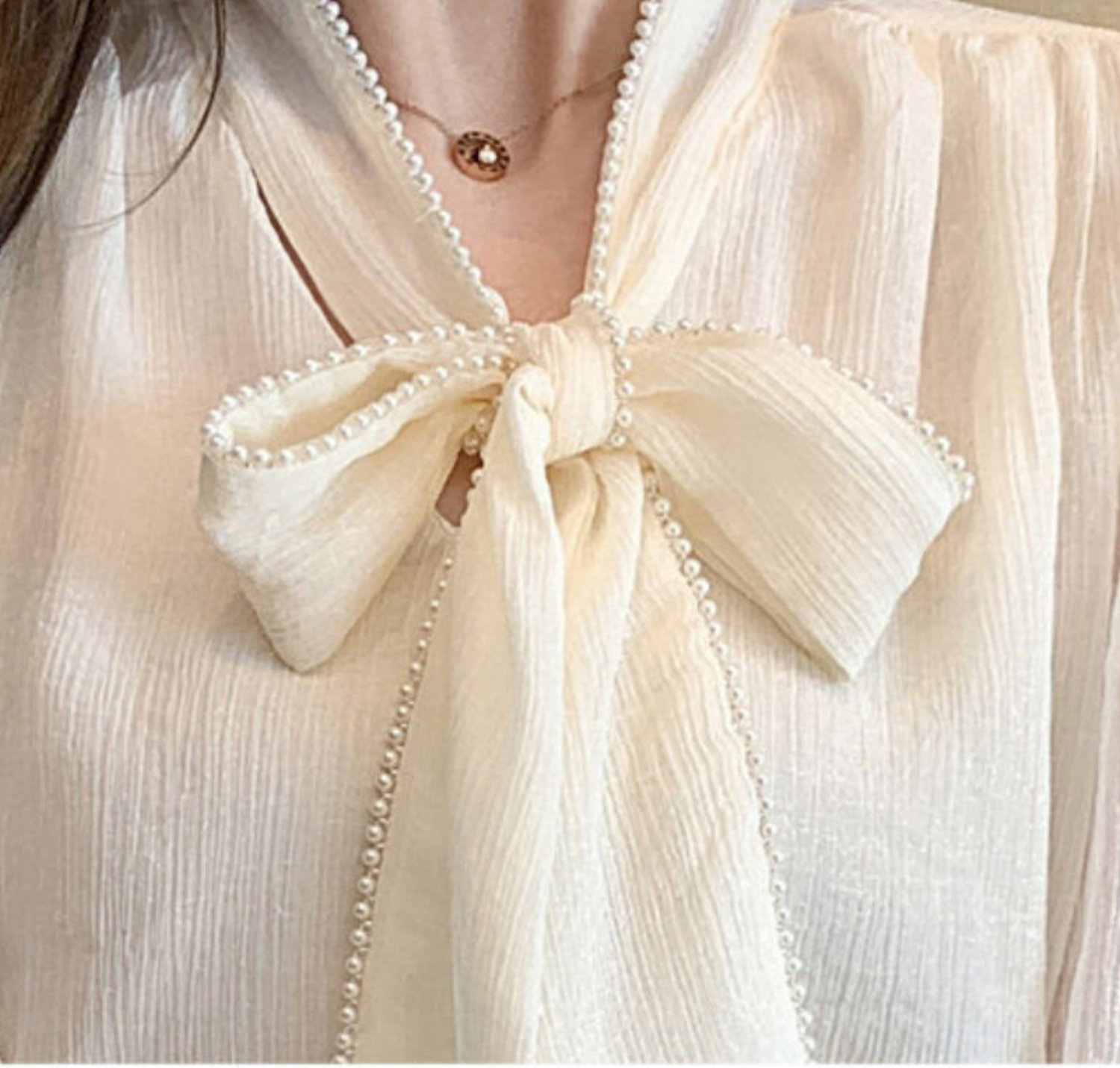Vintage Ruffle Beads Embellished Hemline Strap Tie Big Bow Knot Lantern Puffy Sleeves Ruched Blouse Y2K Engagement Party Office Hot Style Amazing