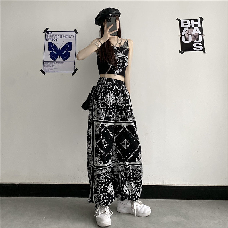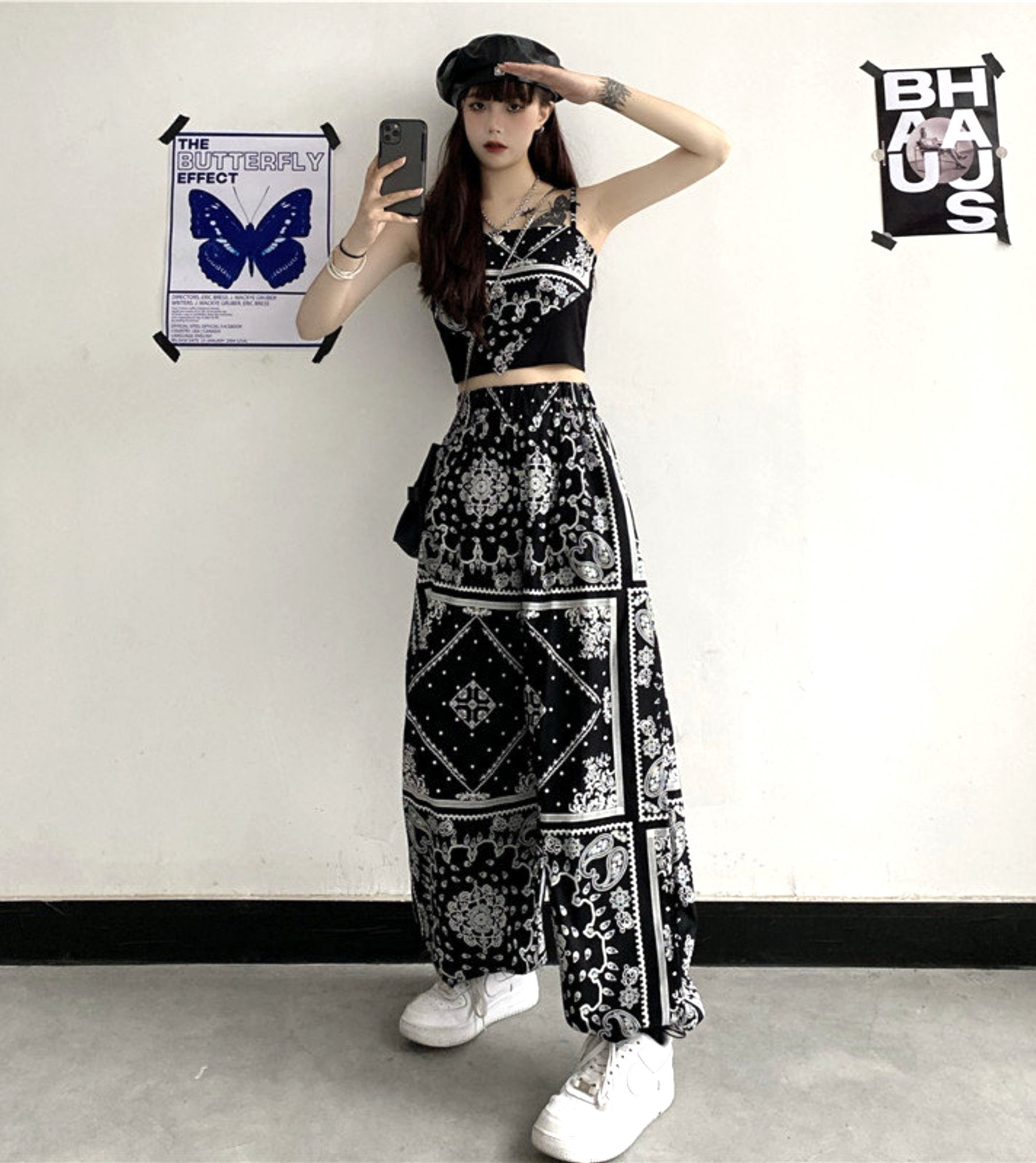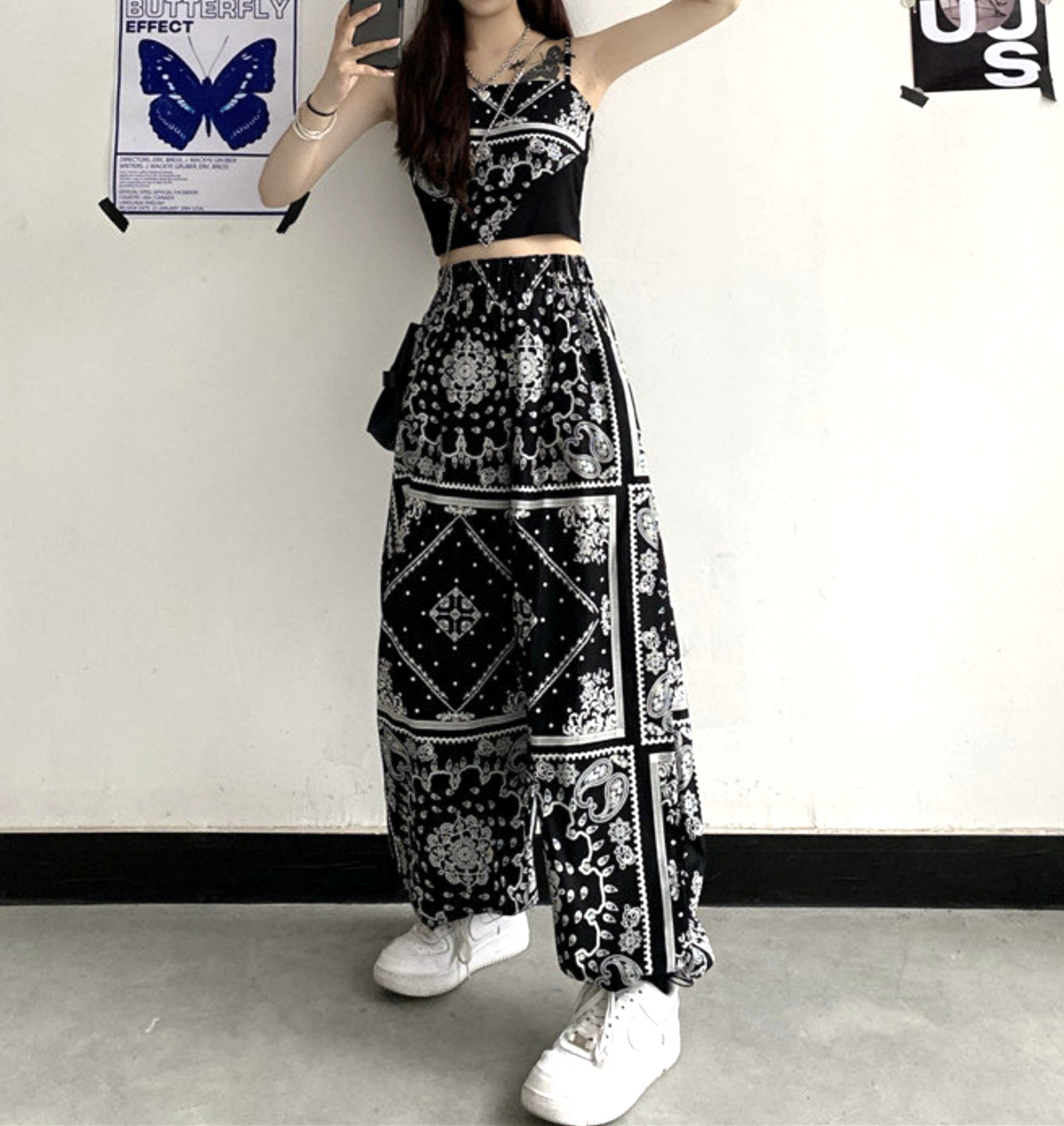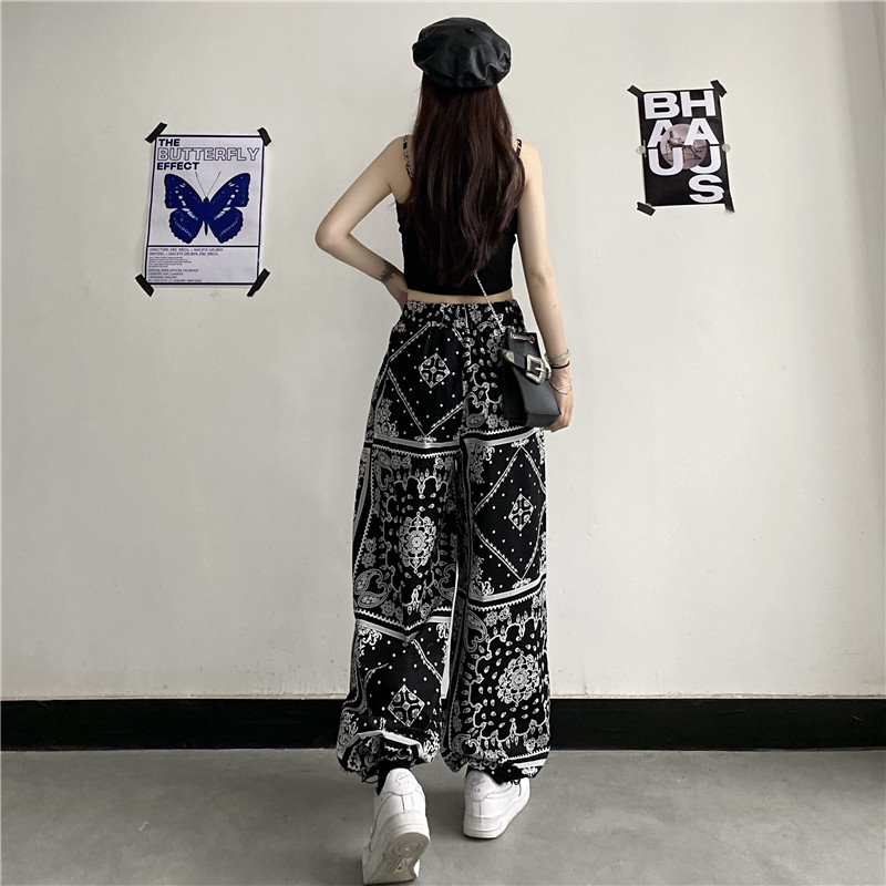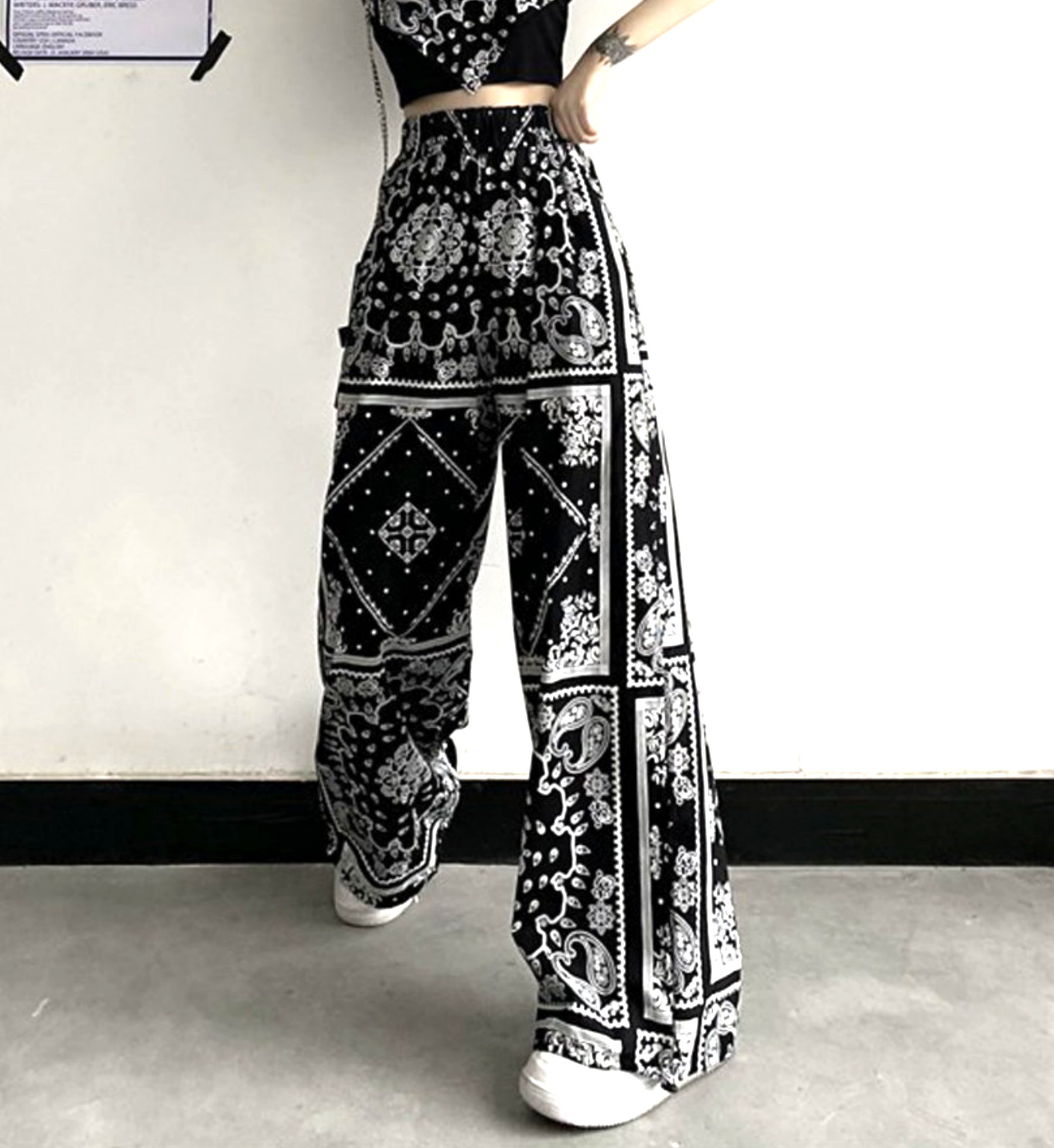 Vintage Punk Goth Boho Print Oversize Baggy Wide Leg Pants Streetwear Hippie Rave Amazing
