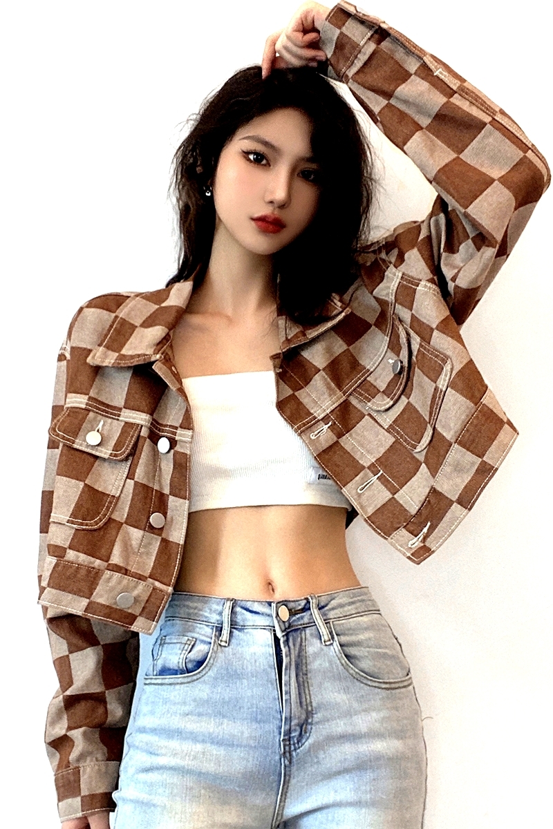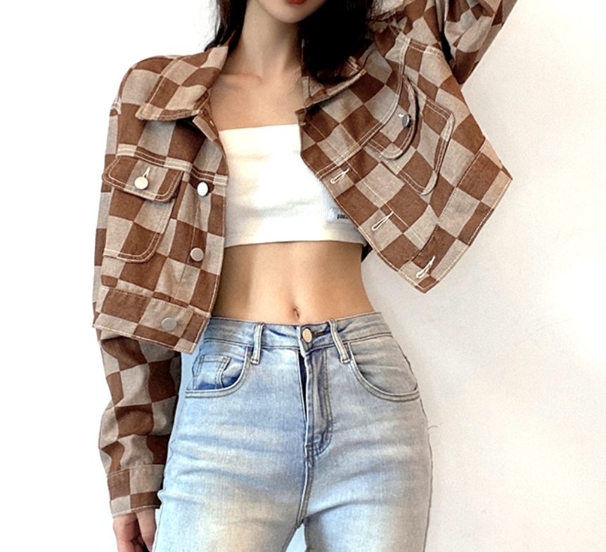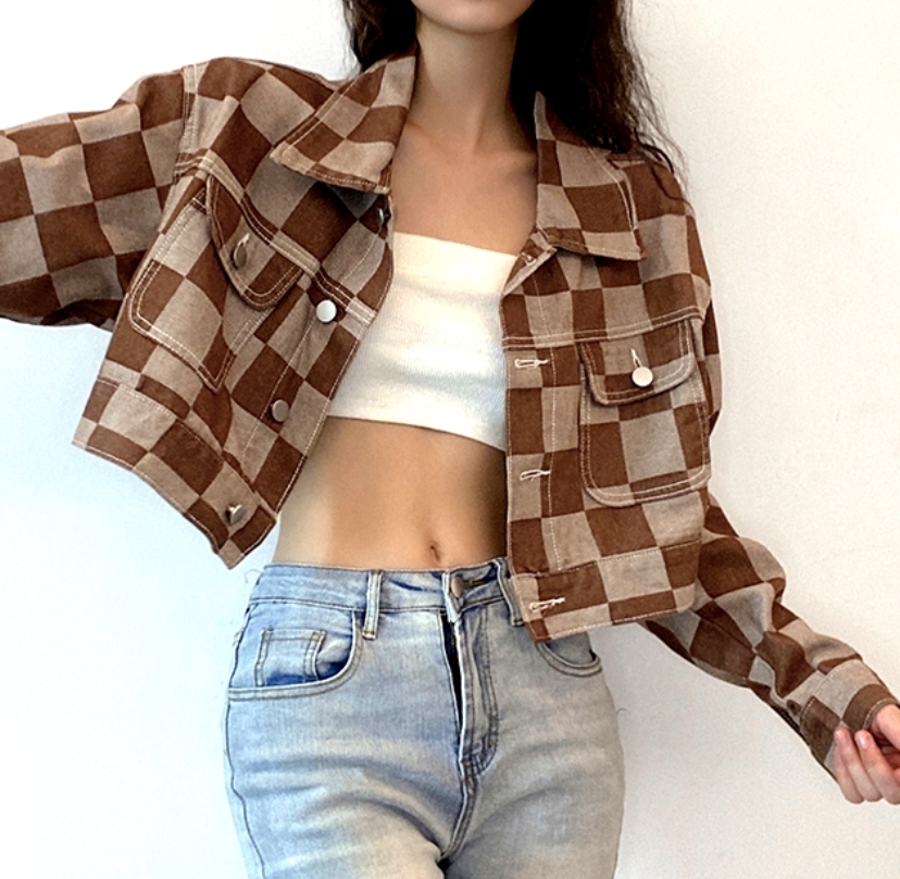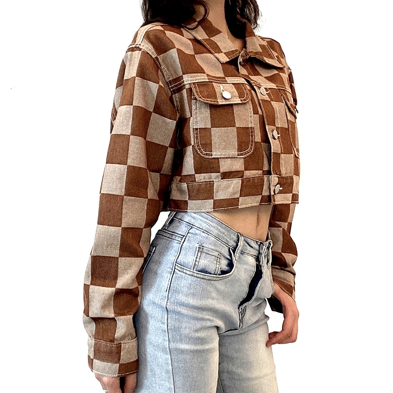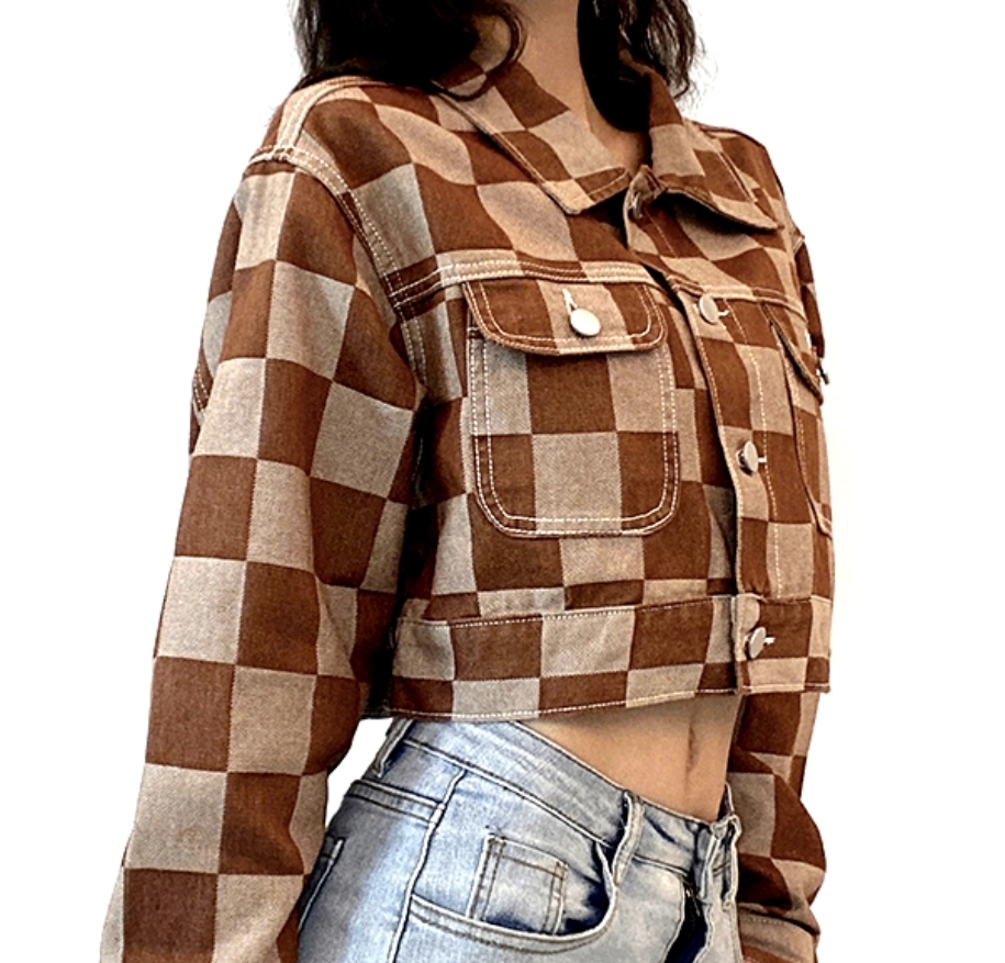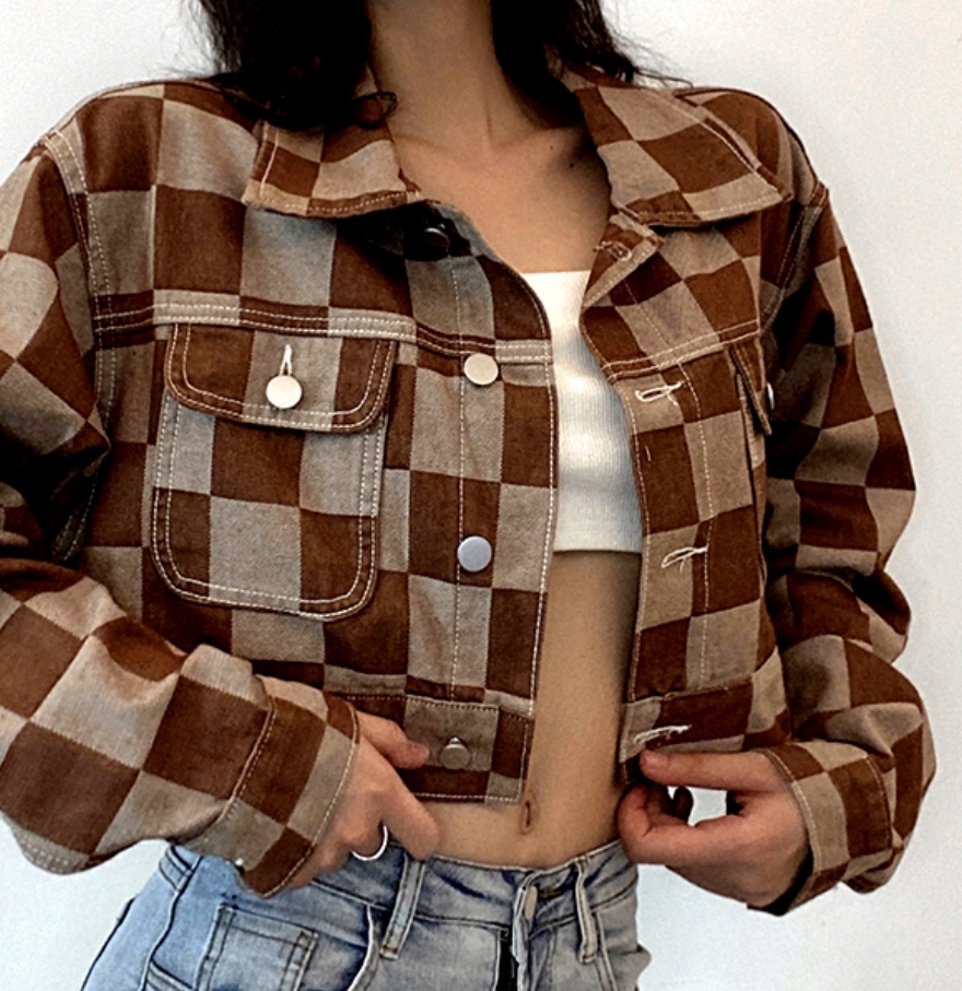 Stunning Italian Vintage Cargo Check Motocycle Punk Short Jacket Y2K 90s Party Nightclub Streetwear Amazing